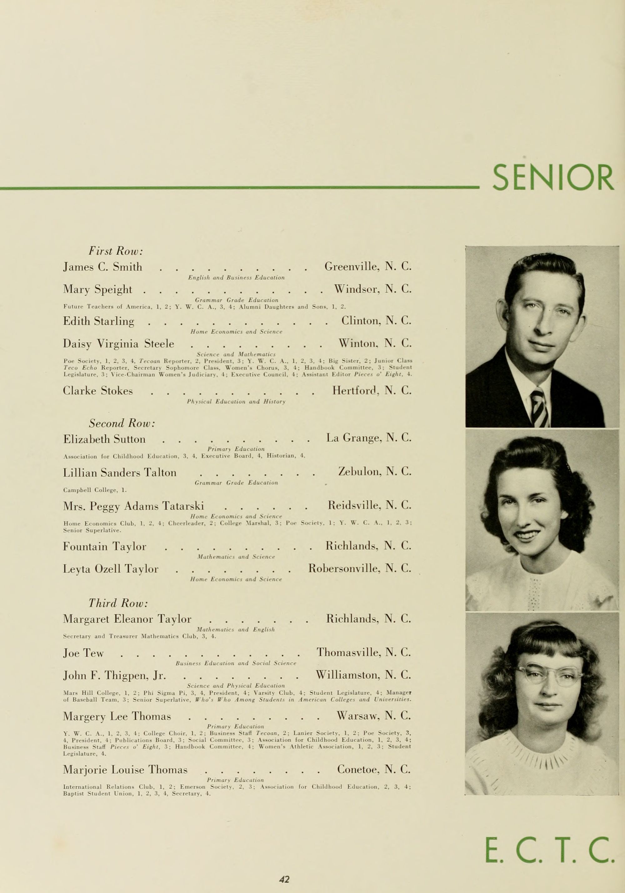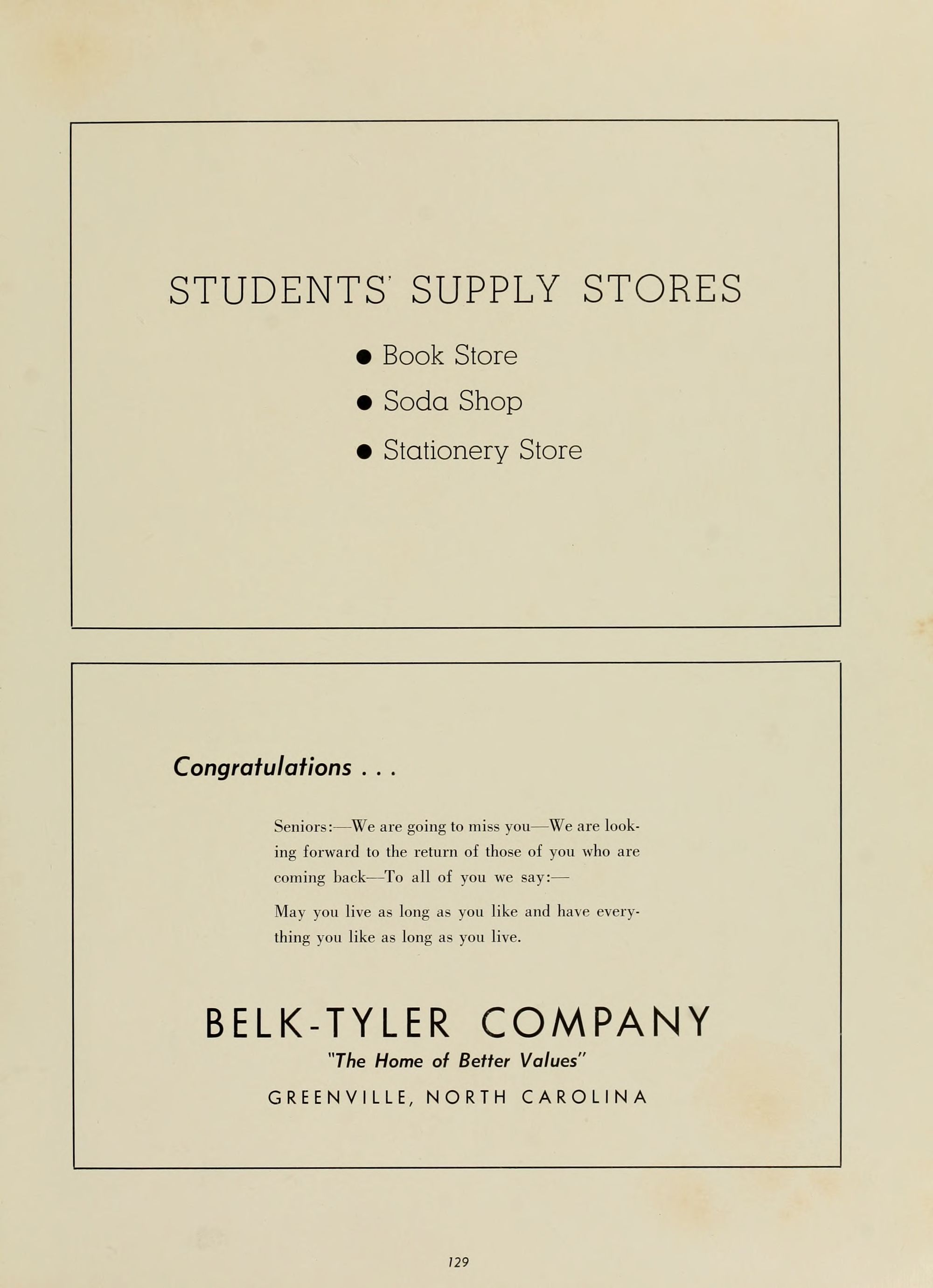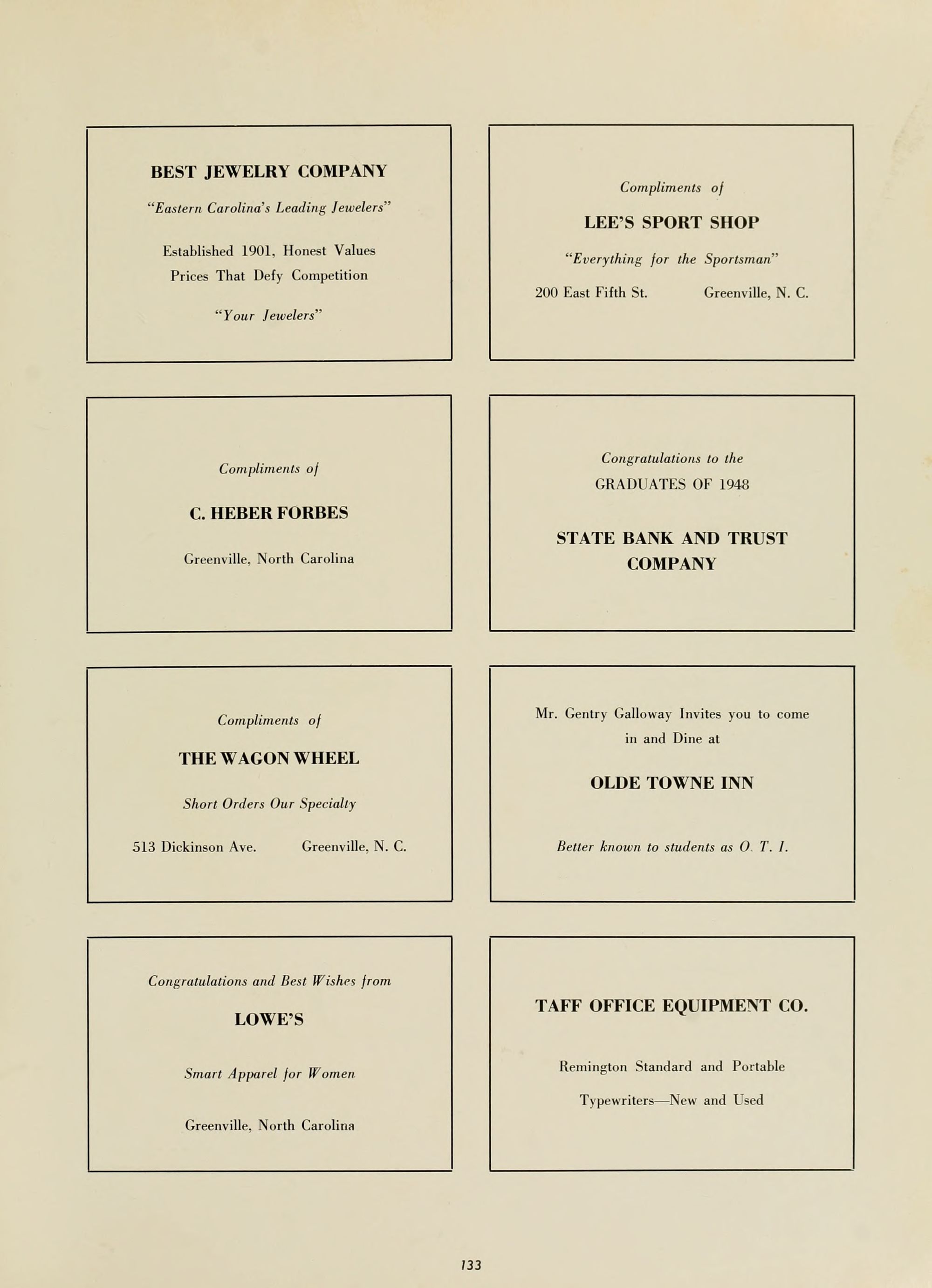 East Carolina Teachers College is proud of you, and will be just as great a friend as you will let it be. We of the faculty wish to be remembered by you, and to share in the honors and prestige which will continuously attend your efforts.