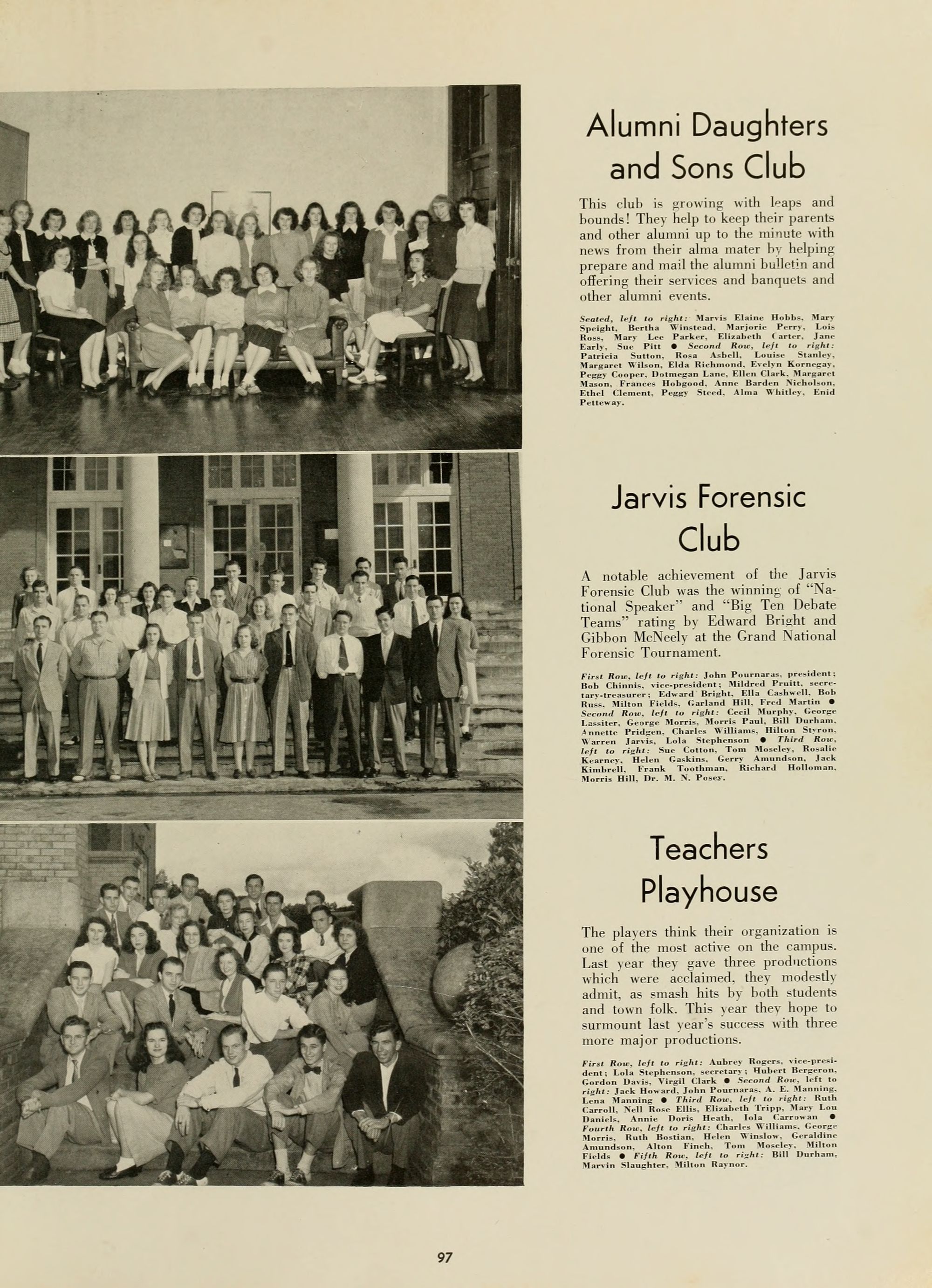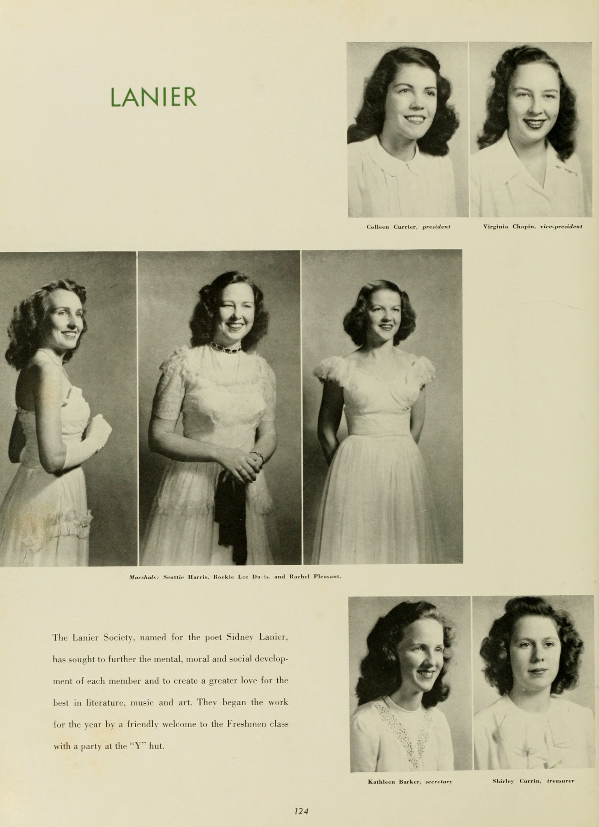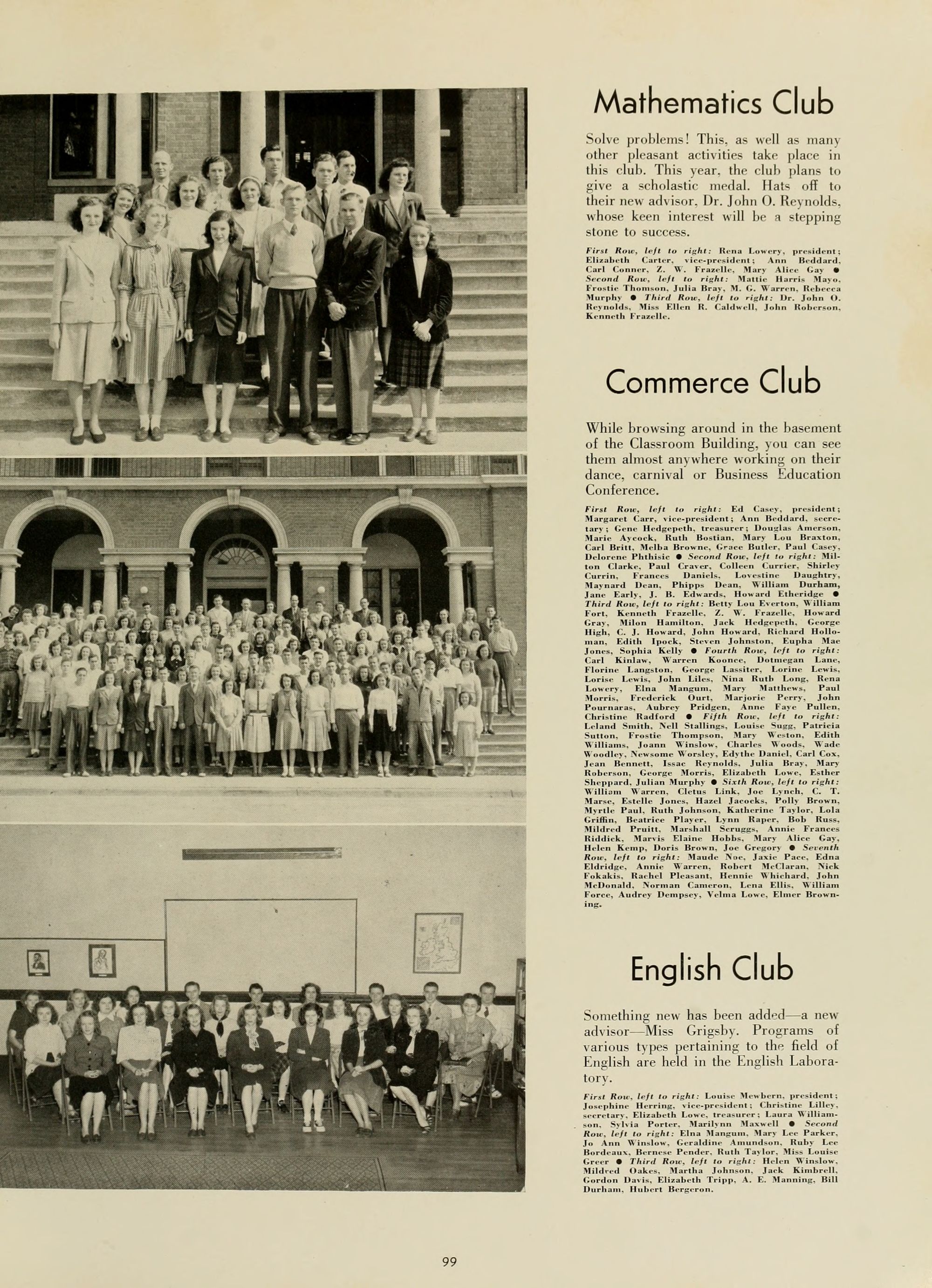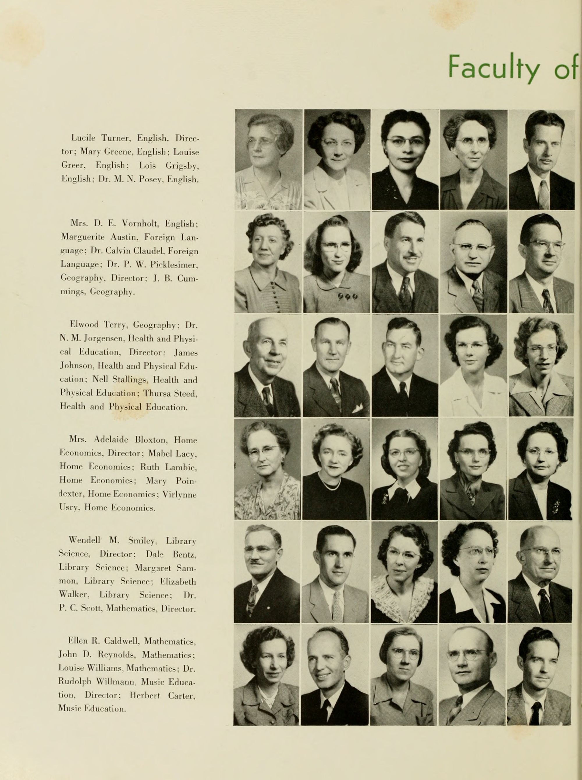 Lucile Turner, English. Director; Mary Greene, English; Louise Greer, English; Lois Grigsby, English; Dr. M. N. Posey, English.