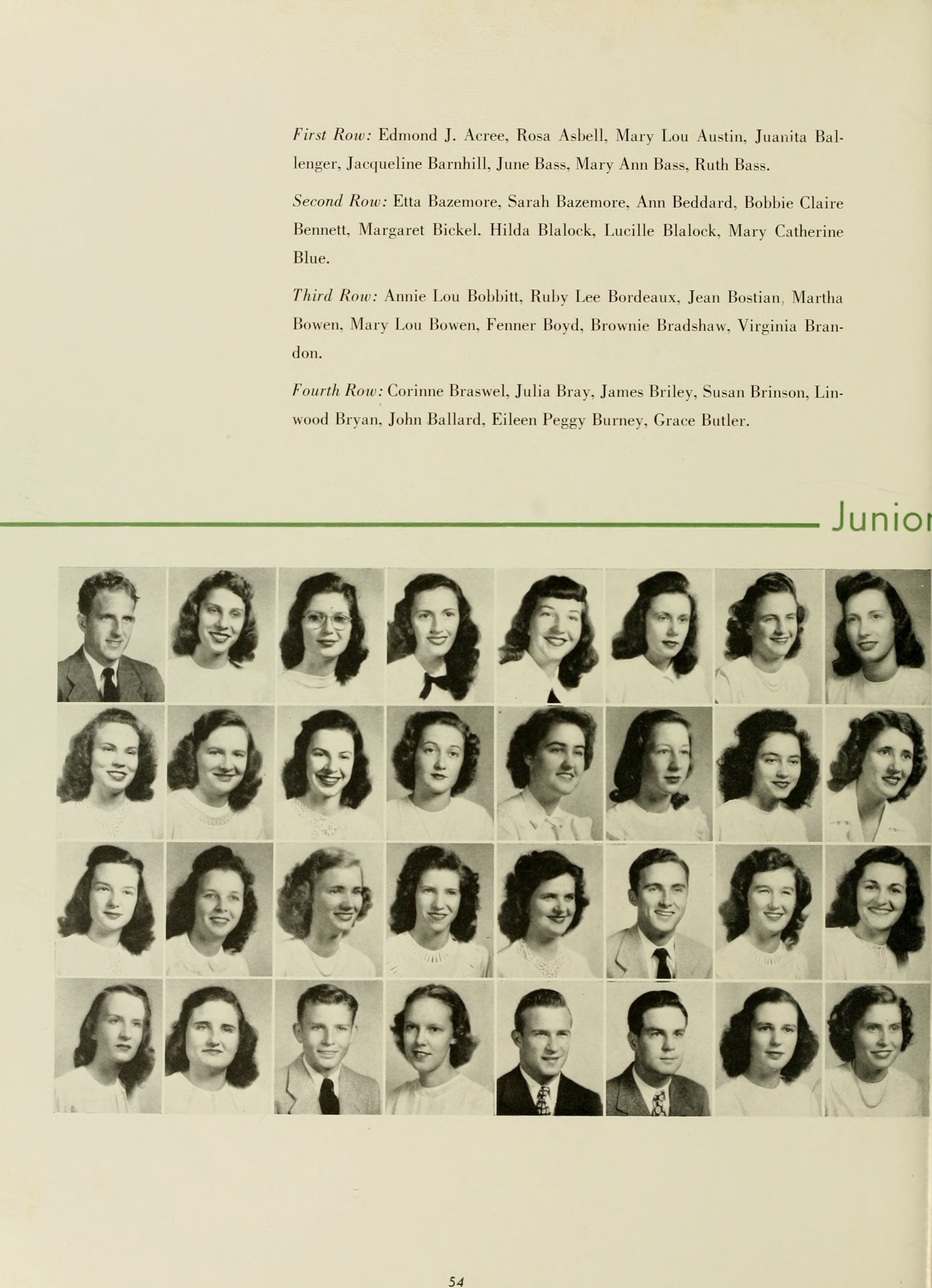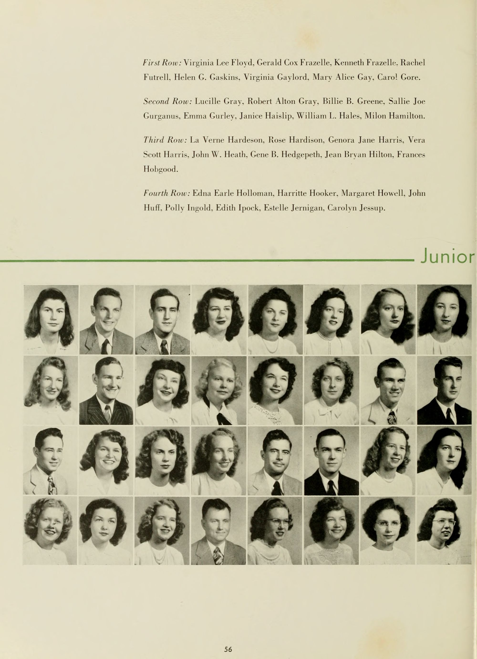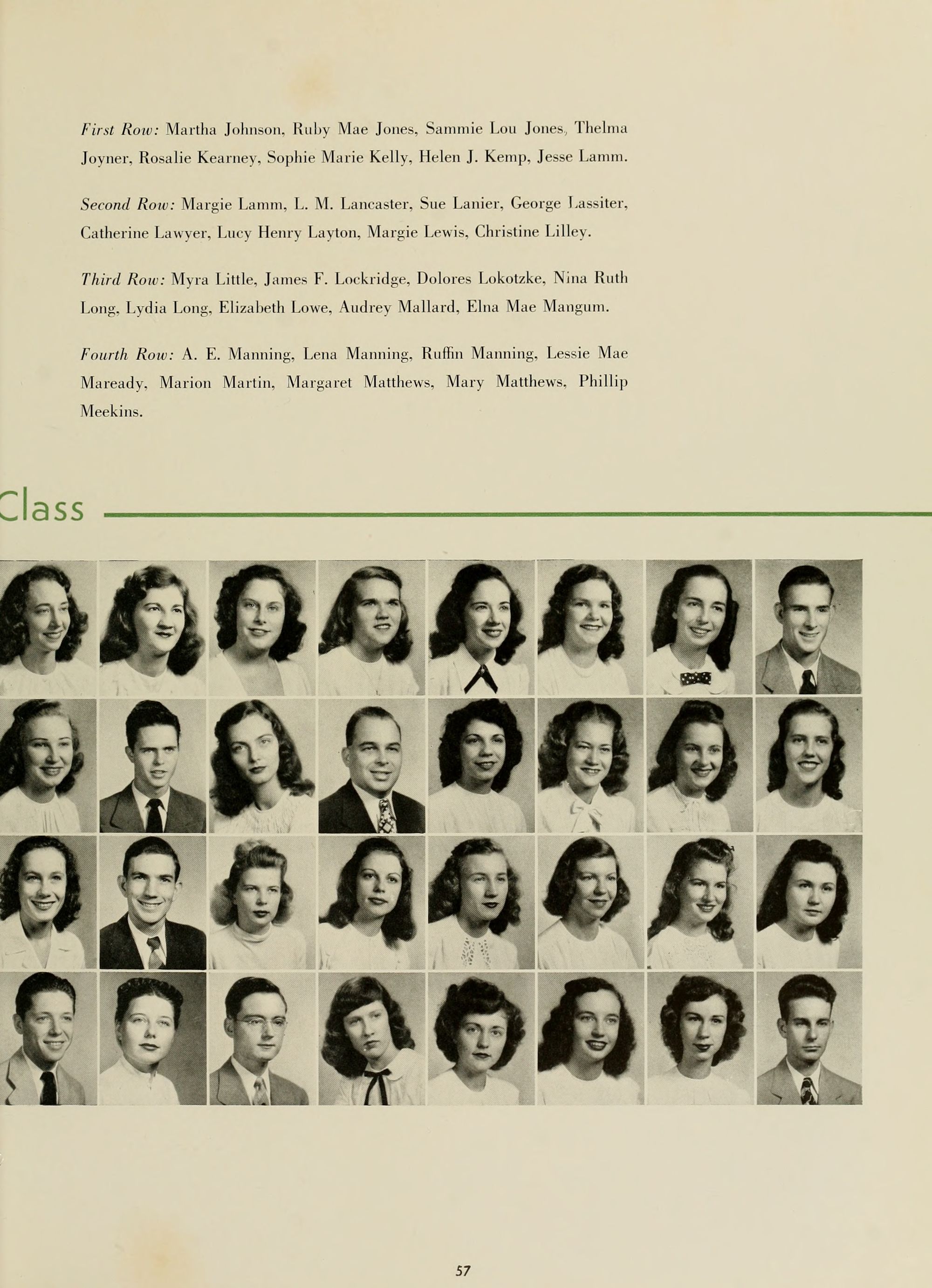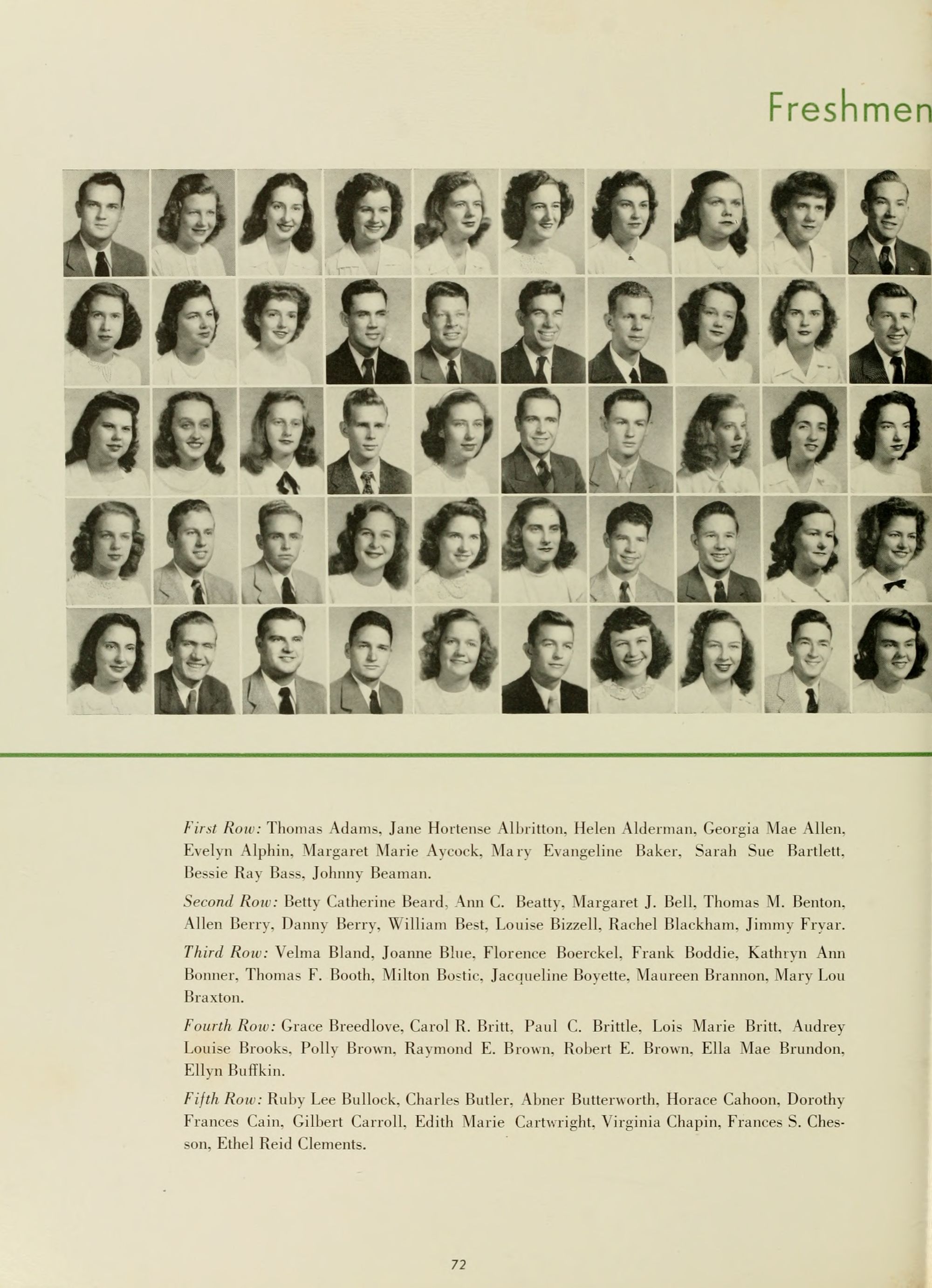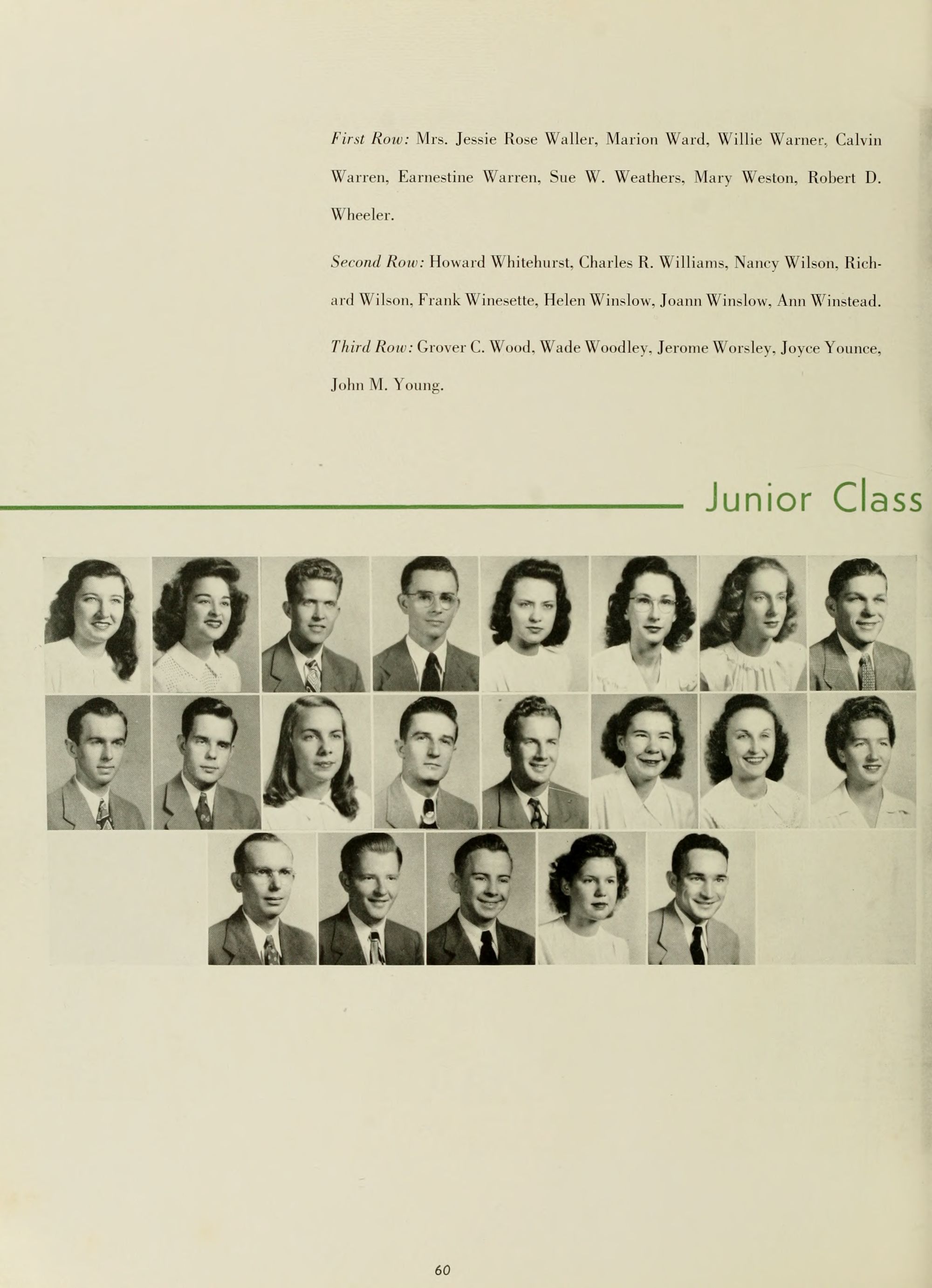 Lucile Turner, English. Director; Mary Greene, English; Louise Greer, English; Lois Grigsby, English; Dr. M. N. Posey, English.
