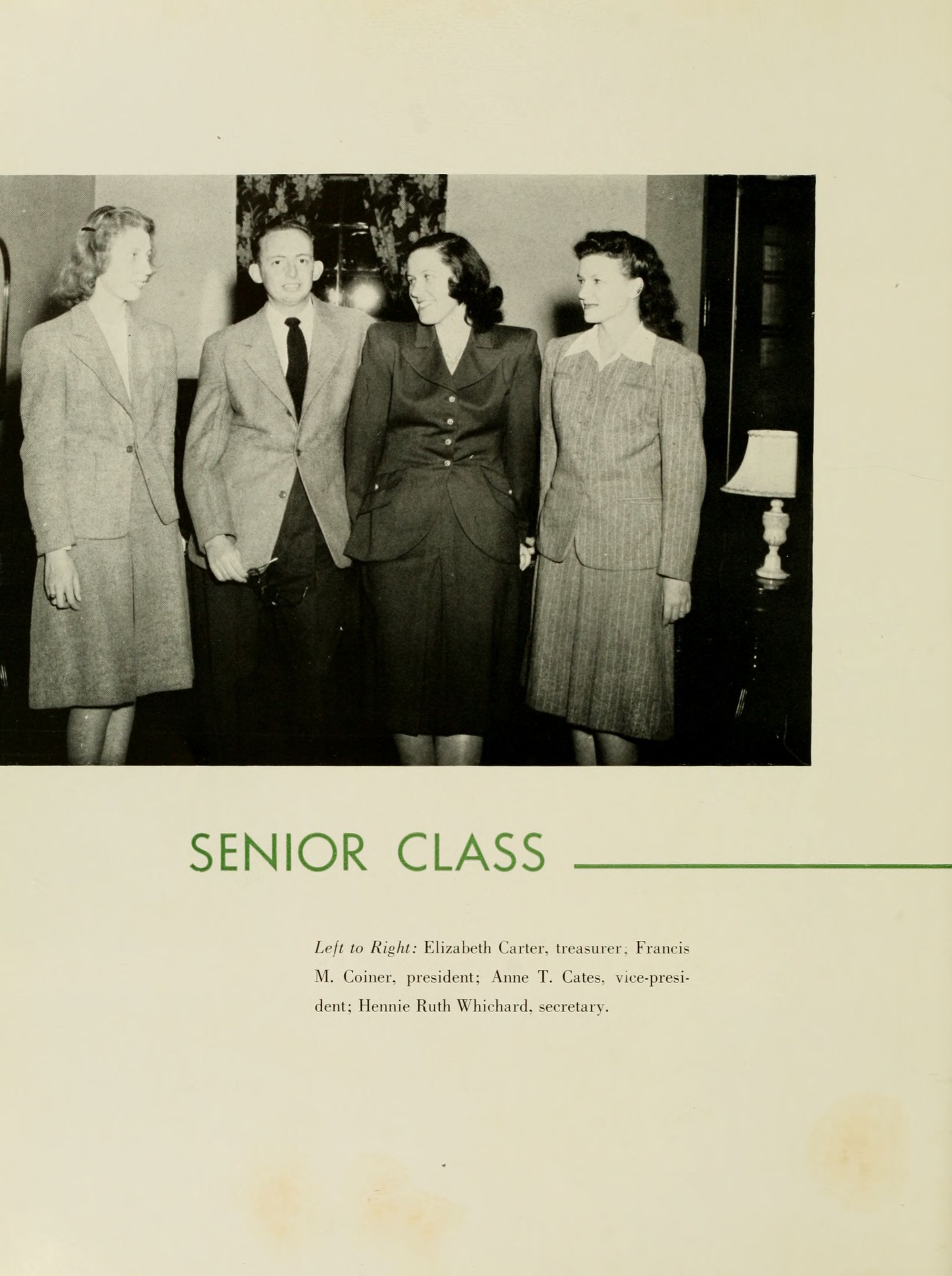 Left to Right: Elizabeth Carter, treasurer; Francis M. Coiner, president; Anne T. Cates, vice-president; Hennie Ruth Whichard, secretary.