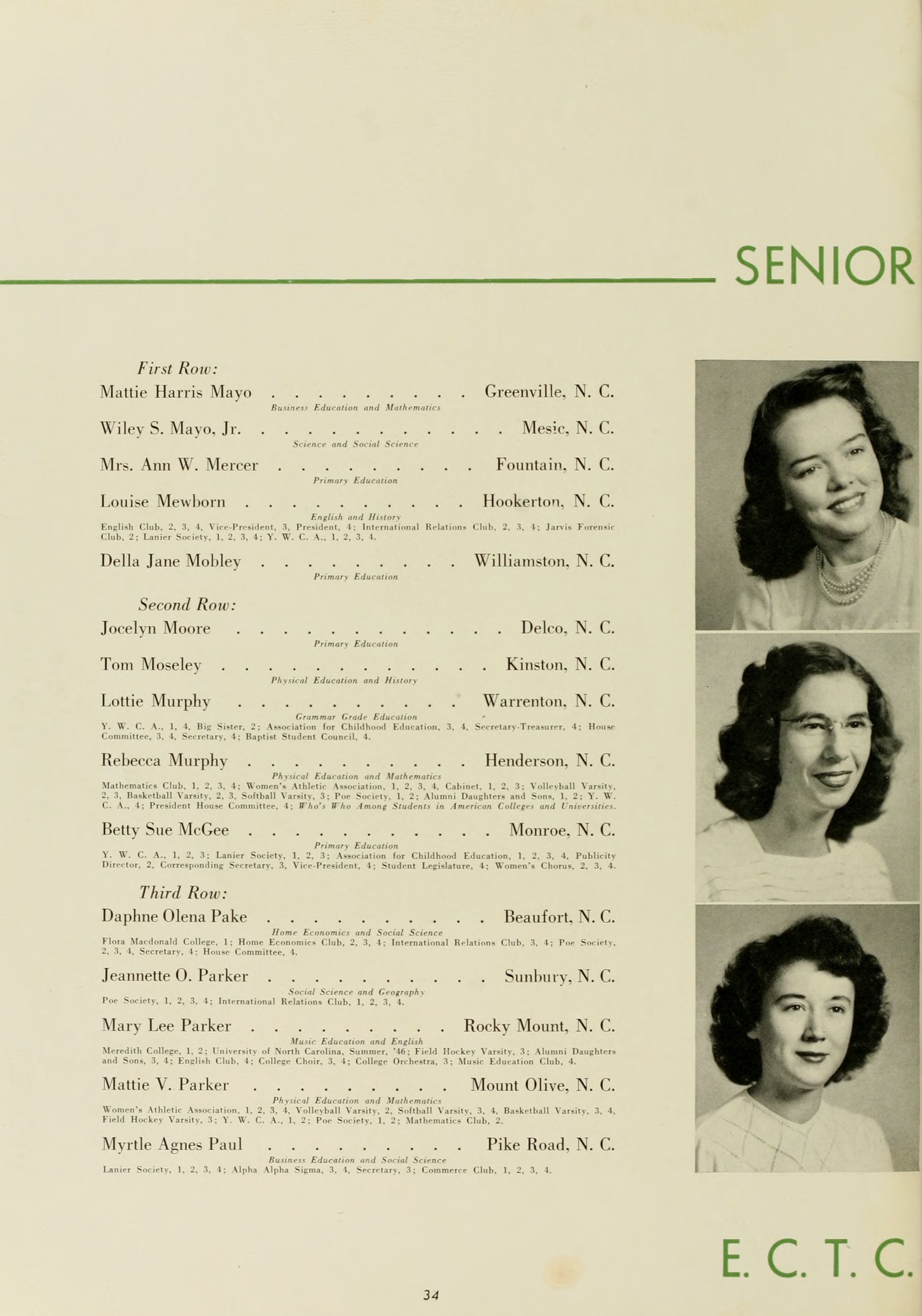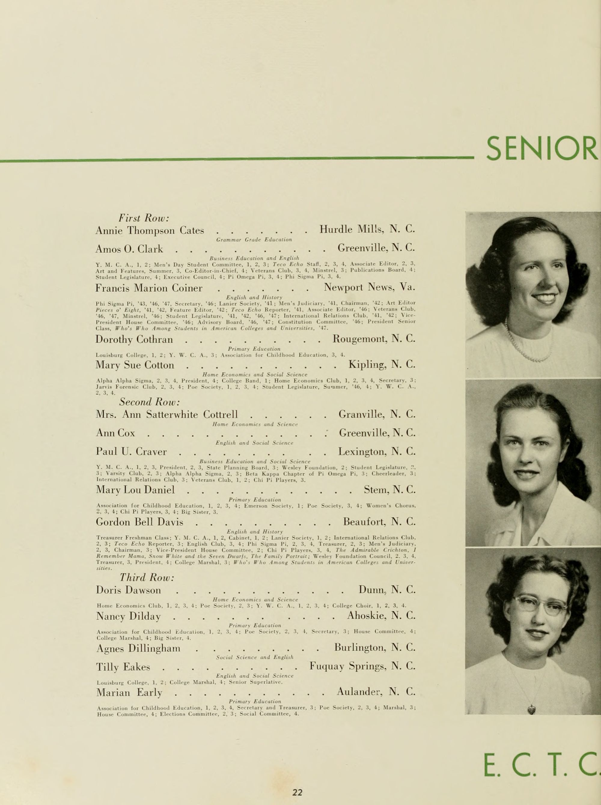 Lola Beacham . . . . . . . . . . . . . . . Washington, N. C.