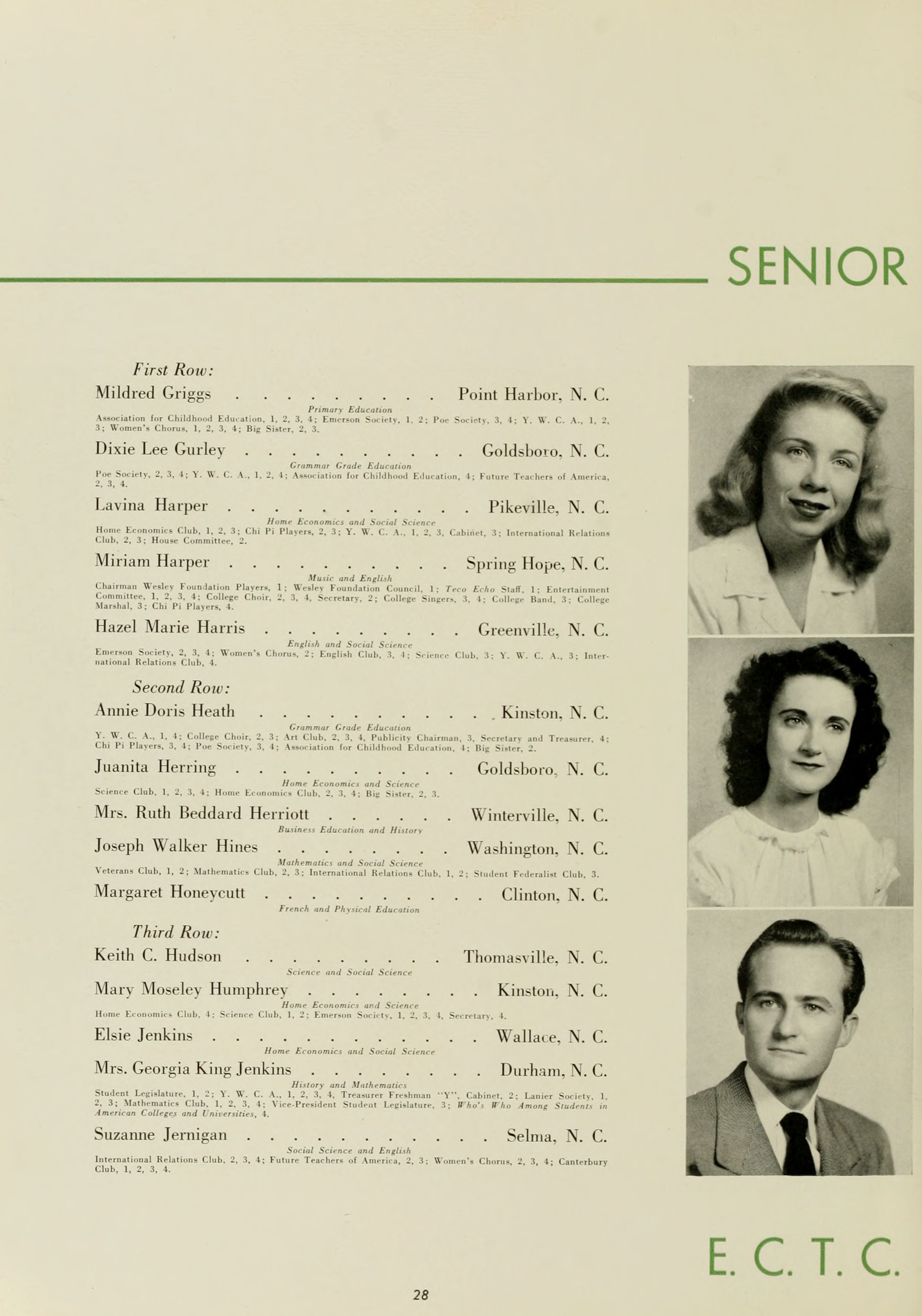 Science Club, 1; Y. W. C. A., 1, 2, 3, 4; Women's Athetic Association 1, 2; Poe Society, 1, 2, 3, 4; Home Economics Club, 1, 4; Junior Class President, Teco Echo Class Representative, 2.