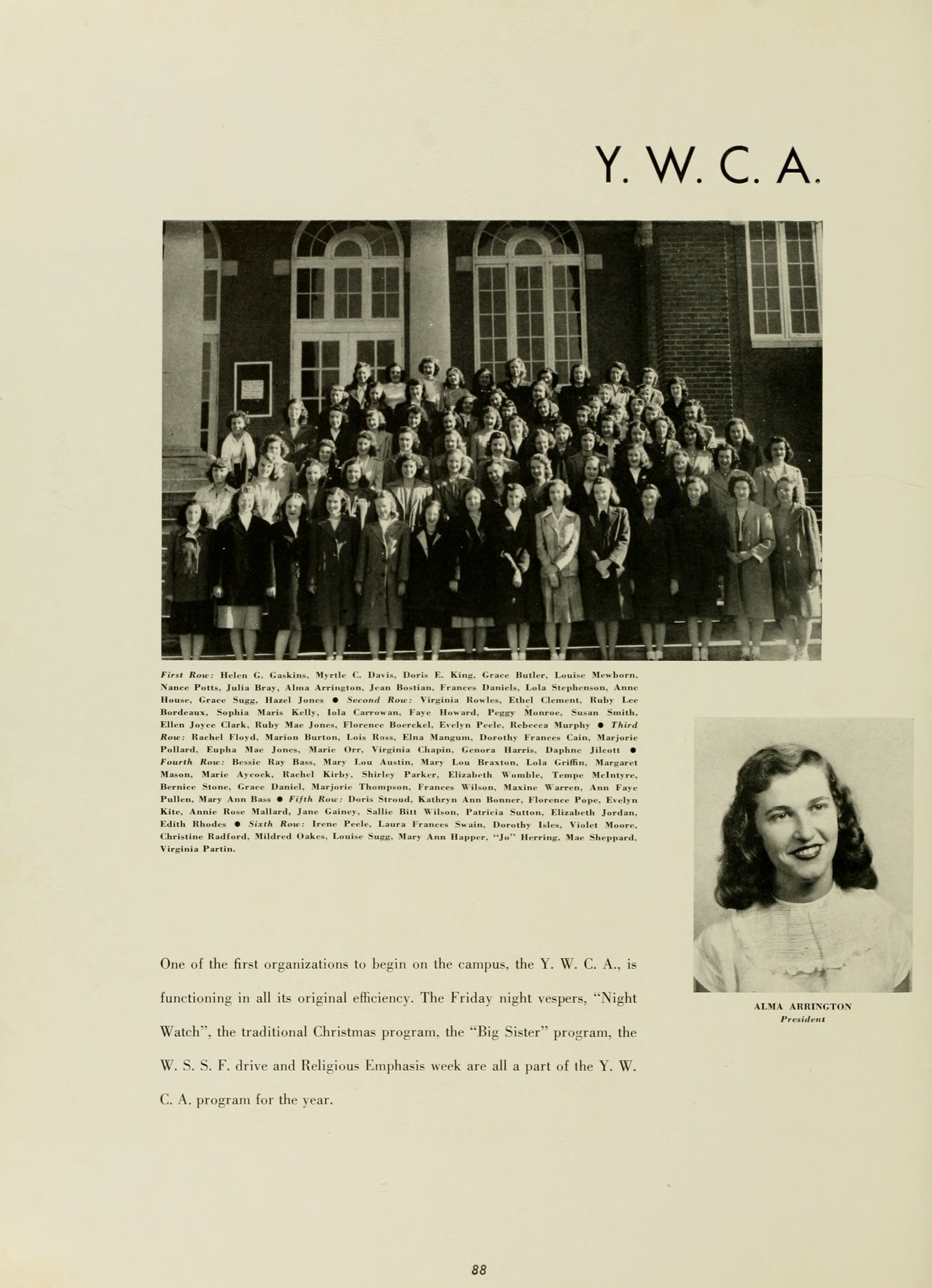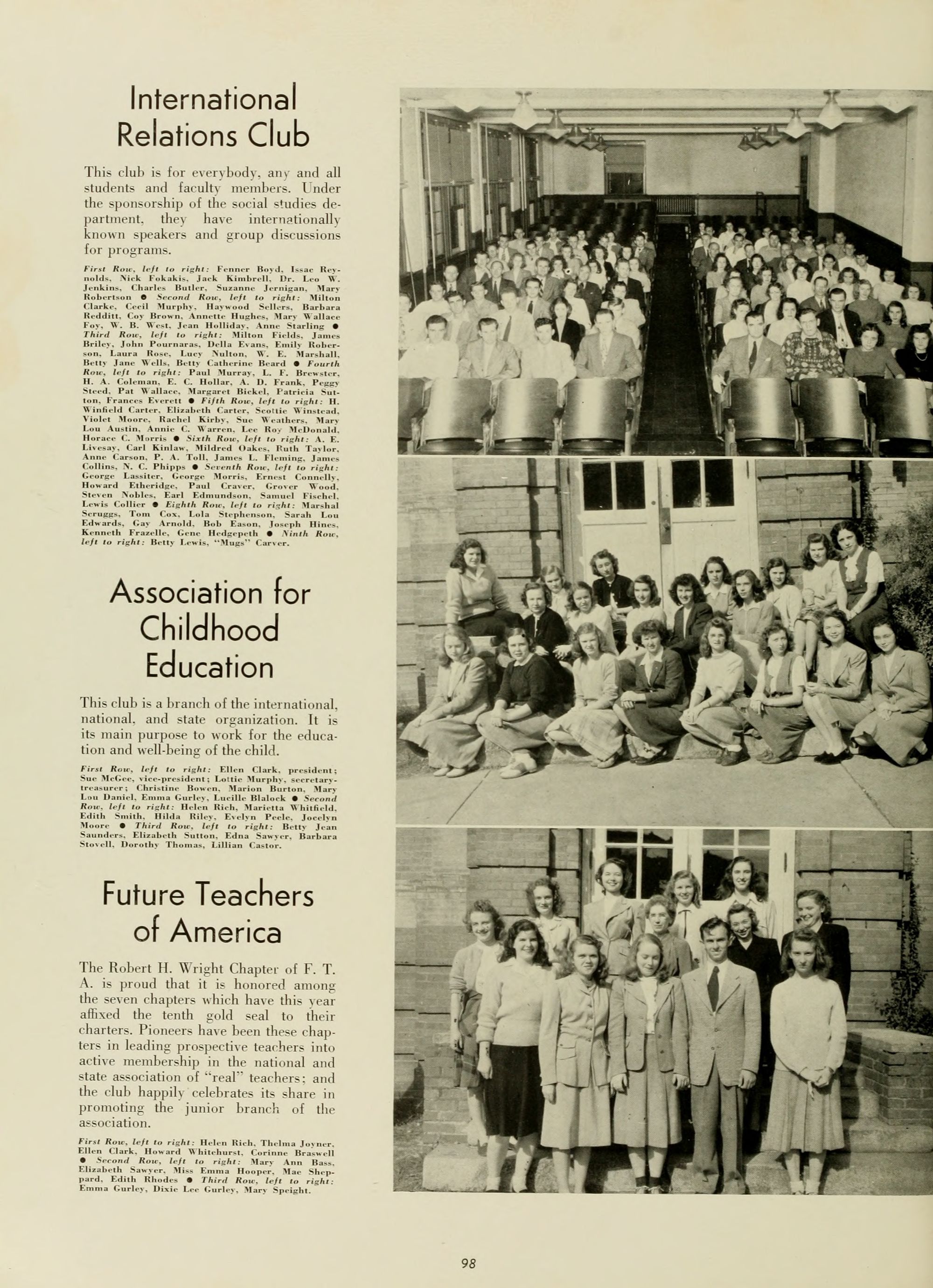 Home Economics Club, 4; Association for Childhood Education, 1; Y. W. C. A., 1, 2, 3, 4, Cabinet, 2, 3, President, 4, Presidents' School, Summer '47.