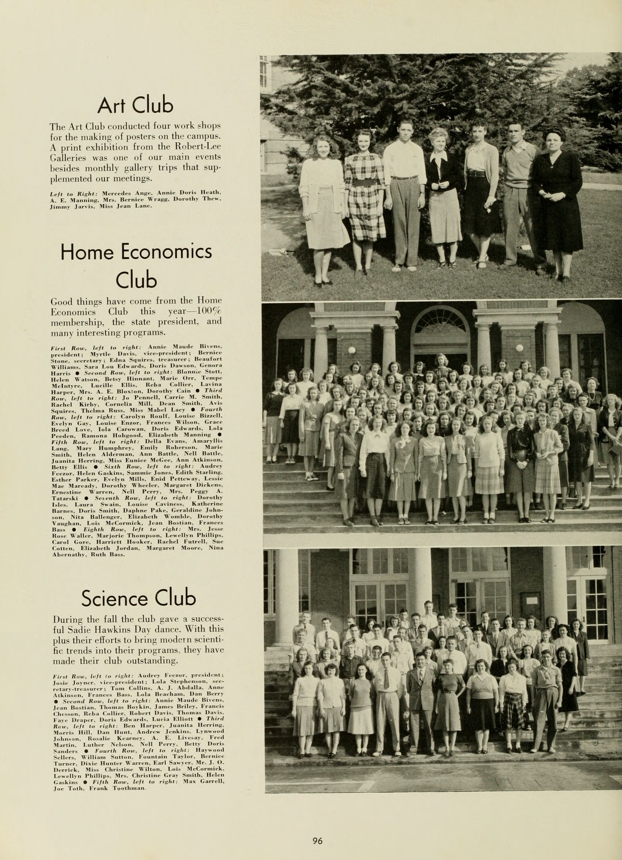 Science Club, 1, 2, 3; Home Economics Club, 1, 2, 3; Poe Society 1, 2; W. A. A., 1, 2; Y. W. C. A., 1, 2.