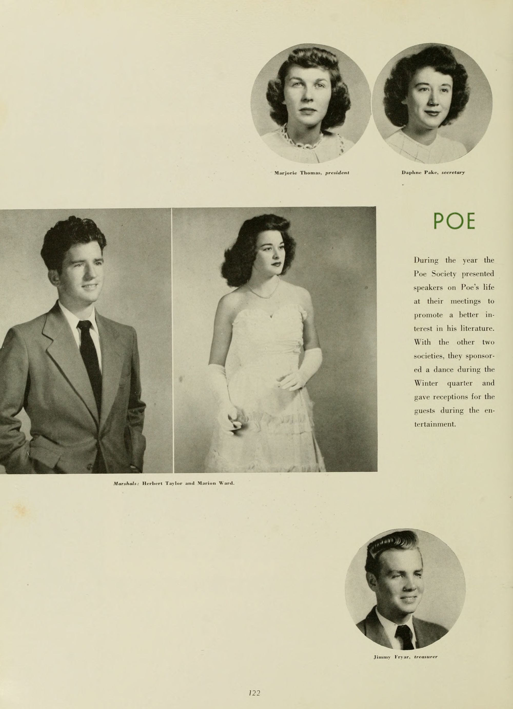 Poe Society, 1, 2; International Relations Club, 2, 3.
