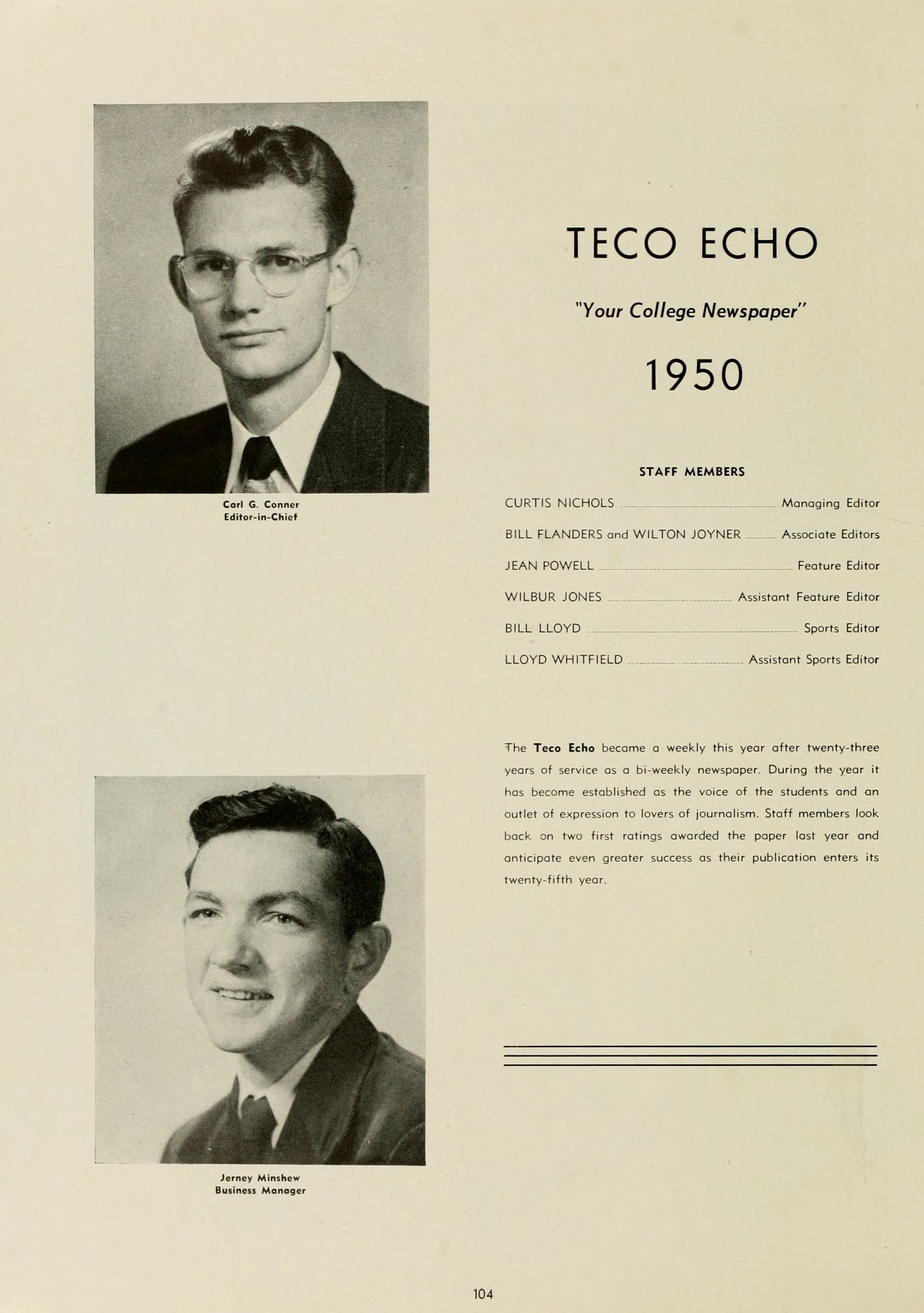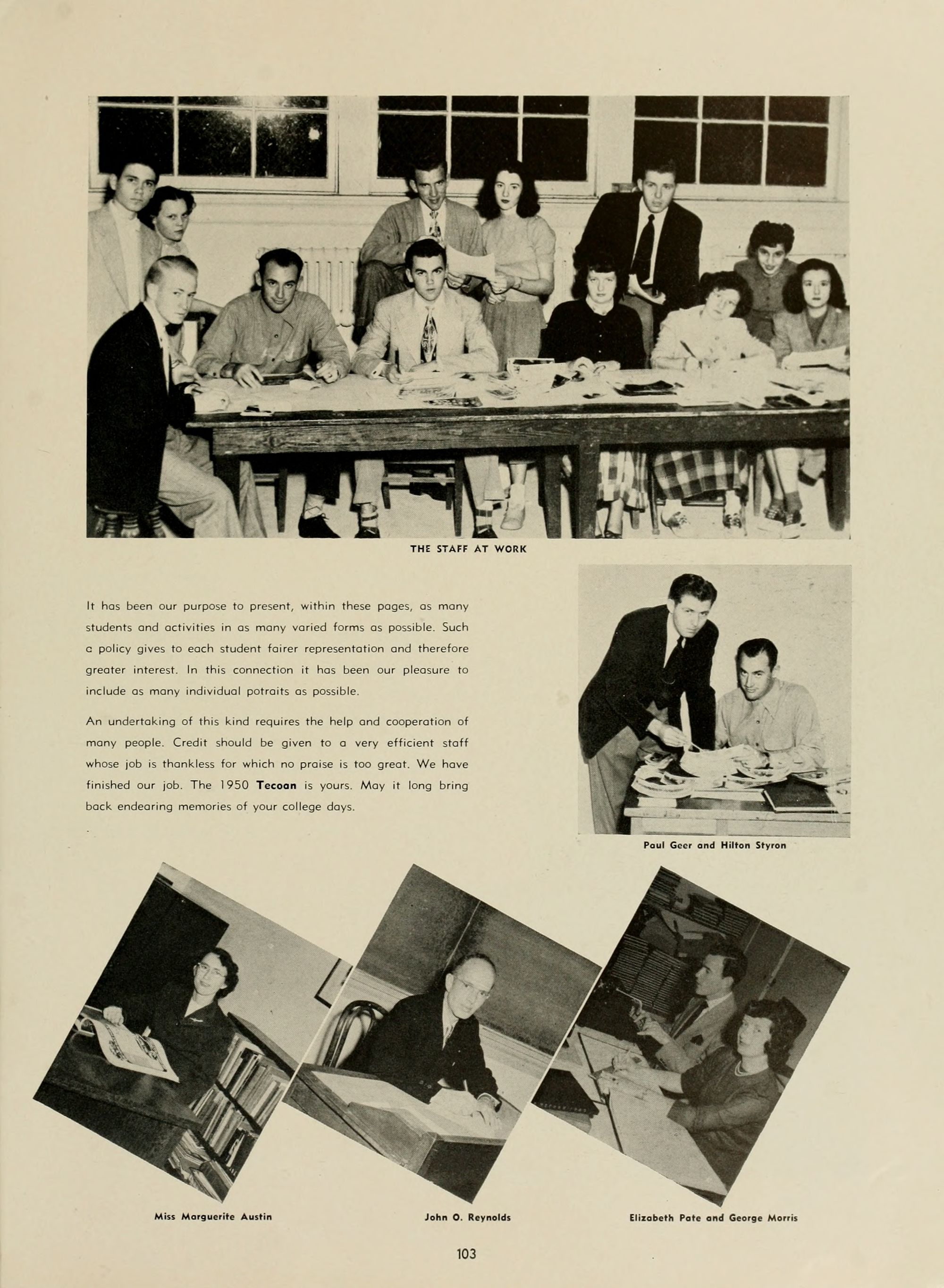The typewriters have slowed down in the Tecoan staff room, but they haven't stopped, for even before the 1950 edition is complete a new crop of workers has begun on the 1951 book. My hope for the new staff is that they may have as excellent cooperation from the administration, faculty and student body as we have experienced, to aid them in production.