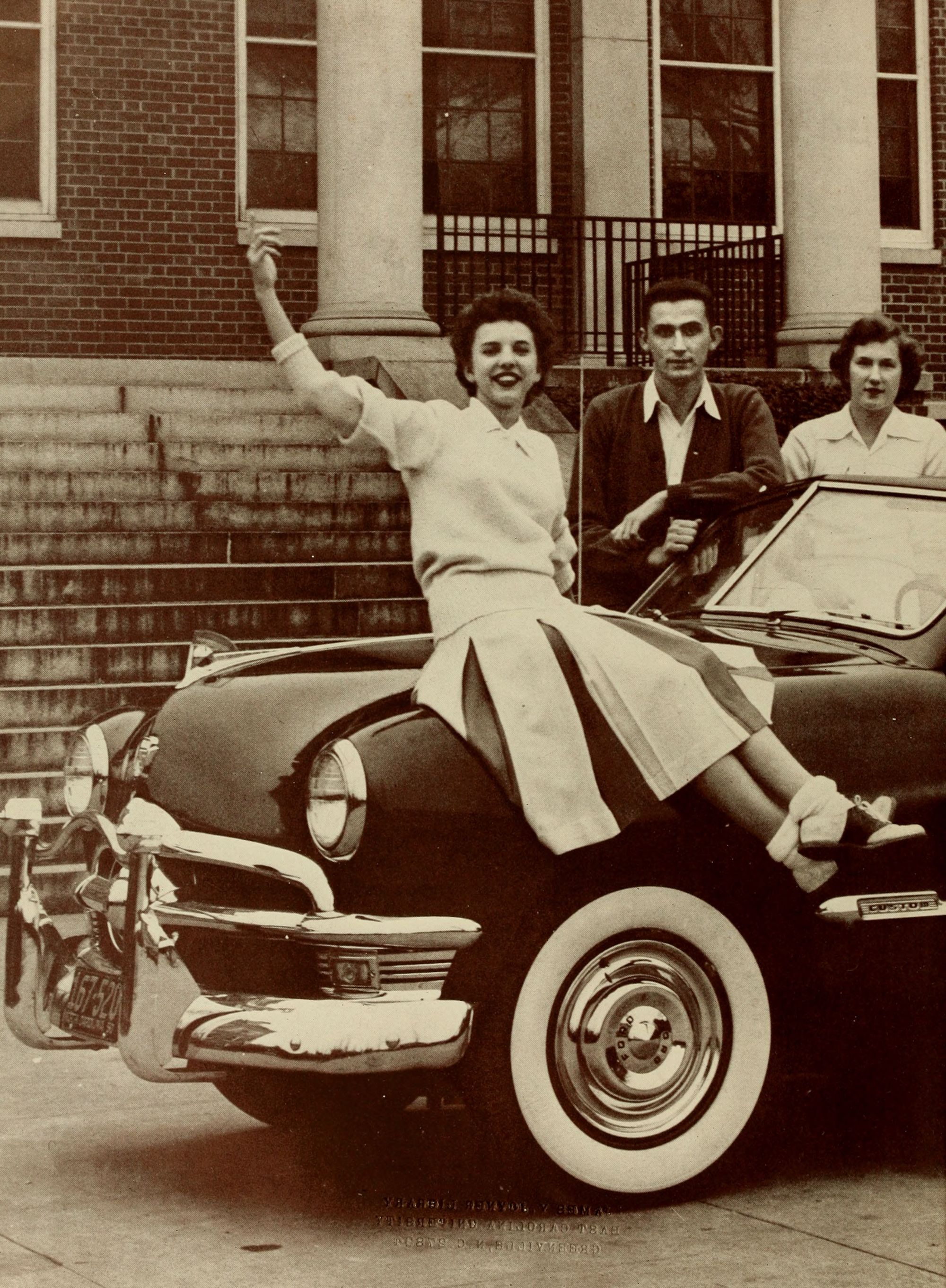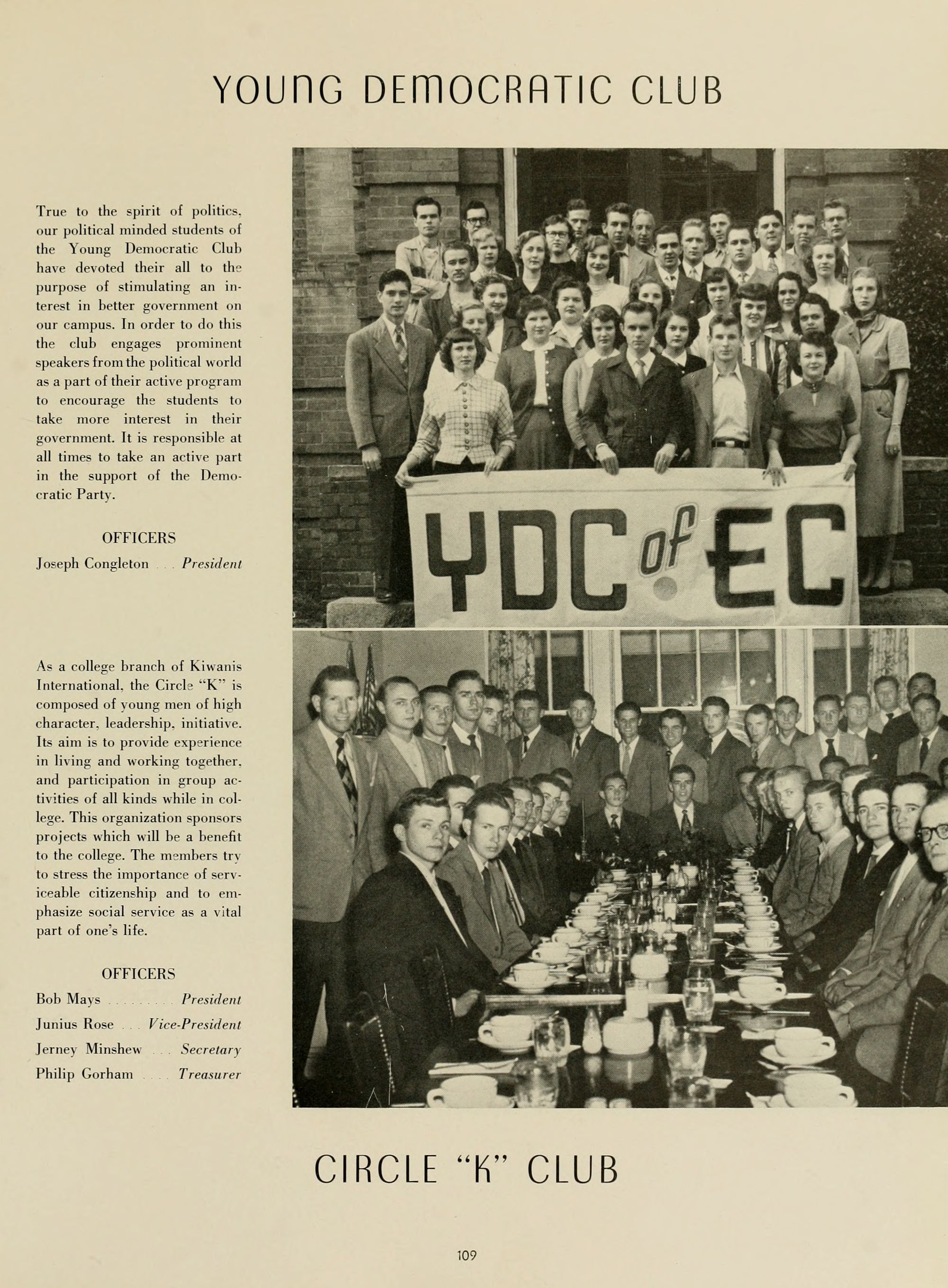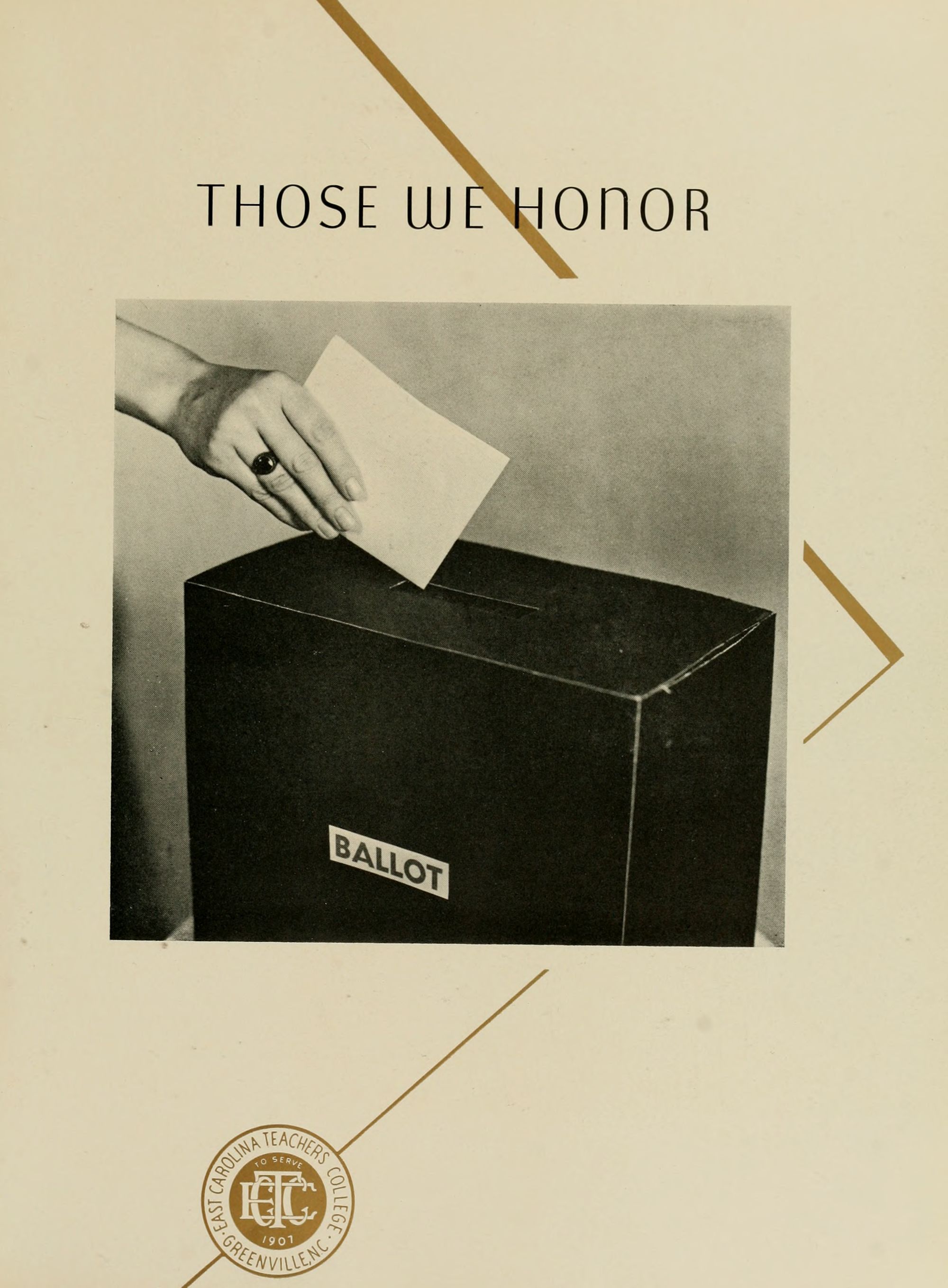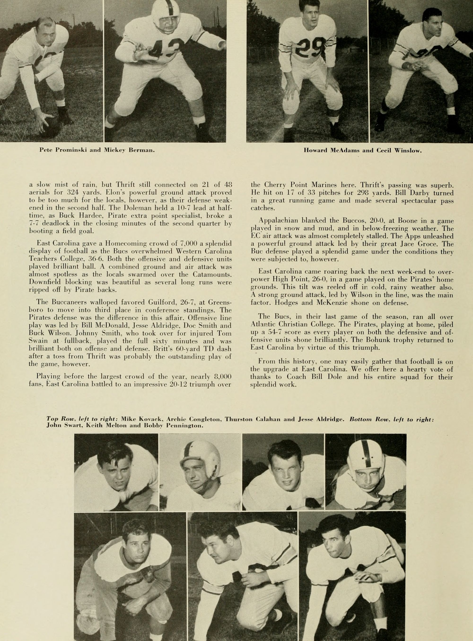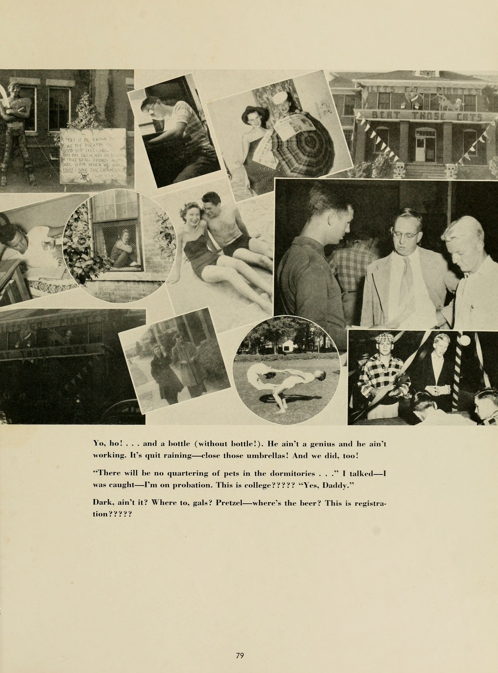 EAST CAROLINA ... the name and title which means so much to all who have trod upon her grounds ... the name which acts as a pin point, pricking and probing into the corners of one's mental machinery and bringing back phases of reminiscence that are so characteristic of well-rounded campus life. The pattern set for days and nights on the East Carolina campus sifts into a recipe of contentment and happiness. Classes in Graham, Flanagan, and grand old Austin . . . gym in Wright Building . . . crowds around post office boxes between classes, blocking the entrance to the dining hall ... the scurrying and confusion around Cotten Hall on Sunday nights when women students return to check in after week-ends off campus . . . the original jargon of the Soda Shop ciowd . . . the solemnity of the library . . . the variety of names dubbed on the men's dorms . . . these thoughts and so many more equally pleasant ones return spontaneously whenever EAST CAROLINA is mentioned. "Hail to thee, our dear ol' school!"
