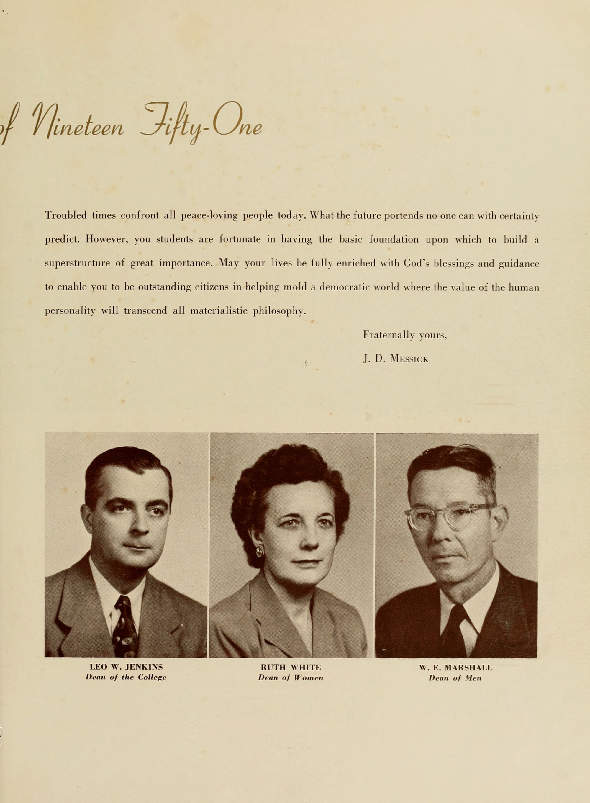 DR. JOHN D. MESSICK President, East Carolina Teachers College