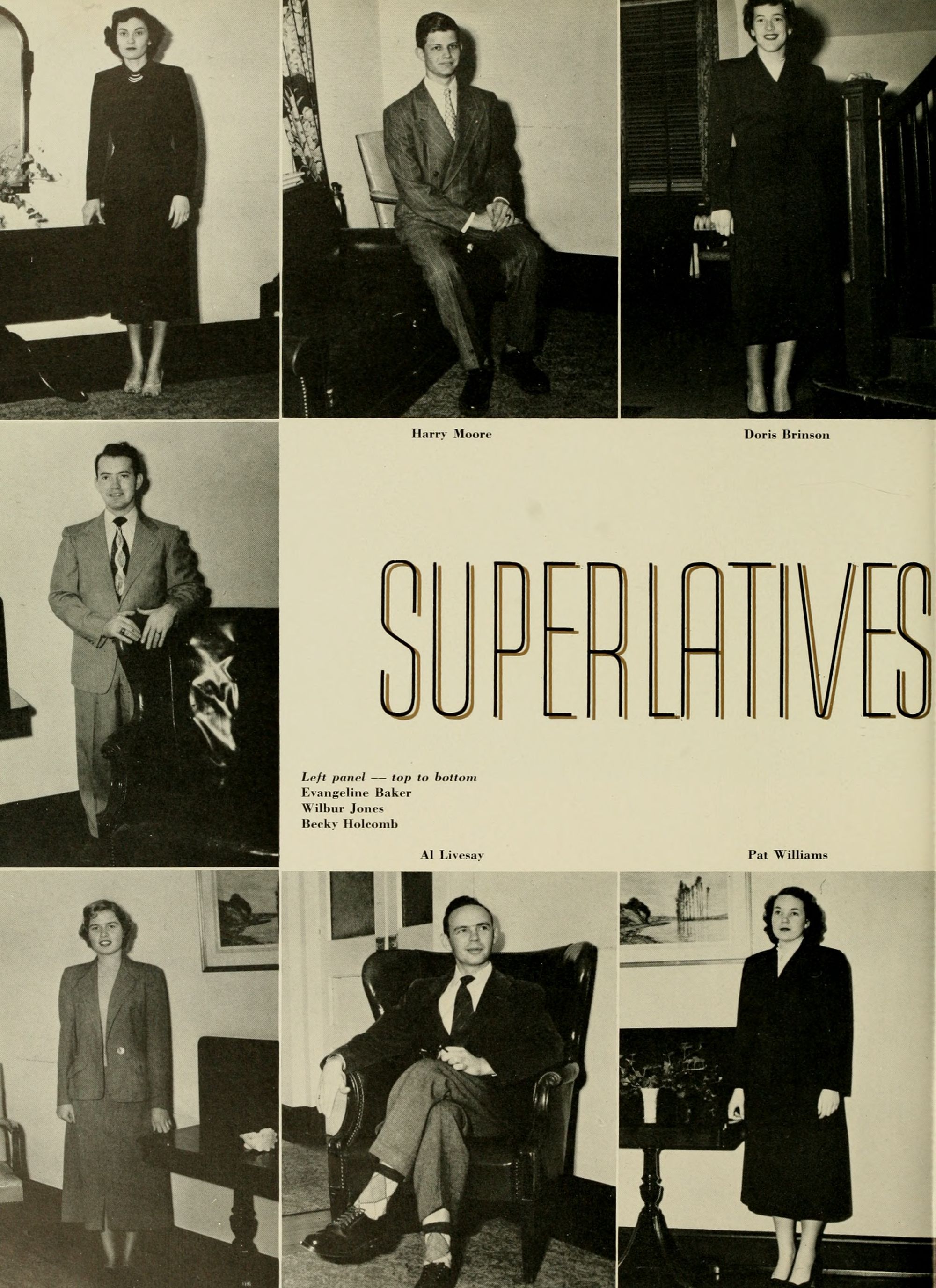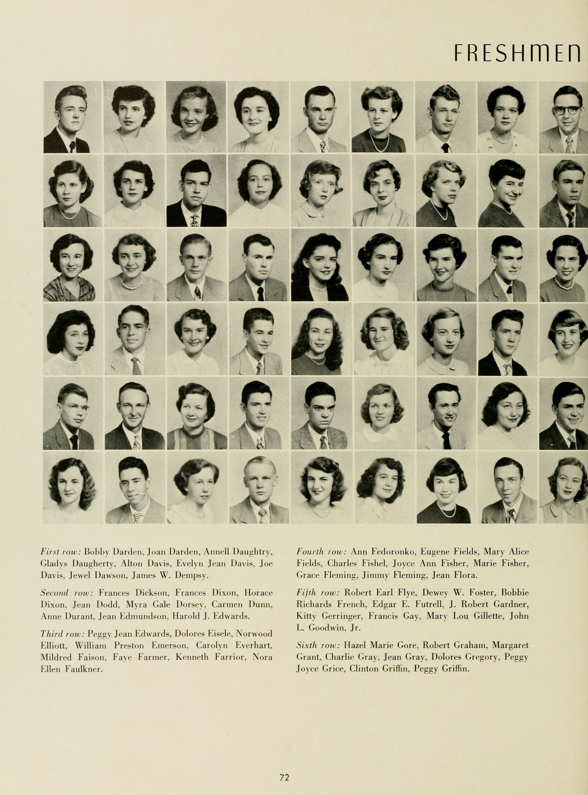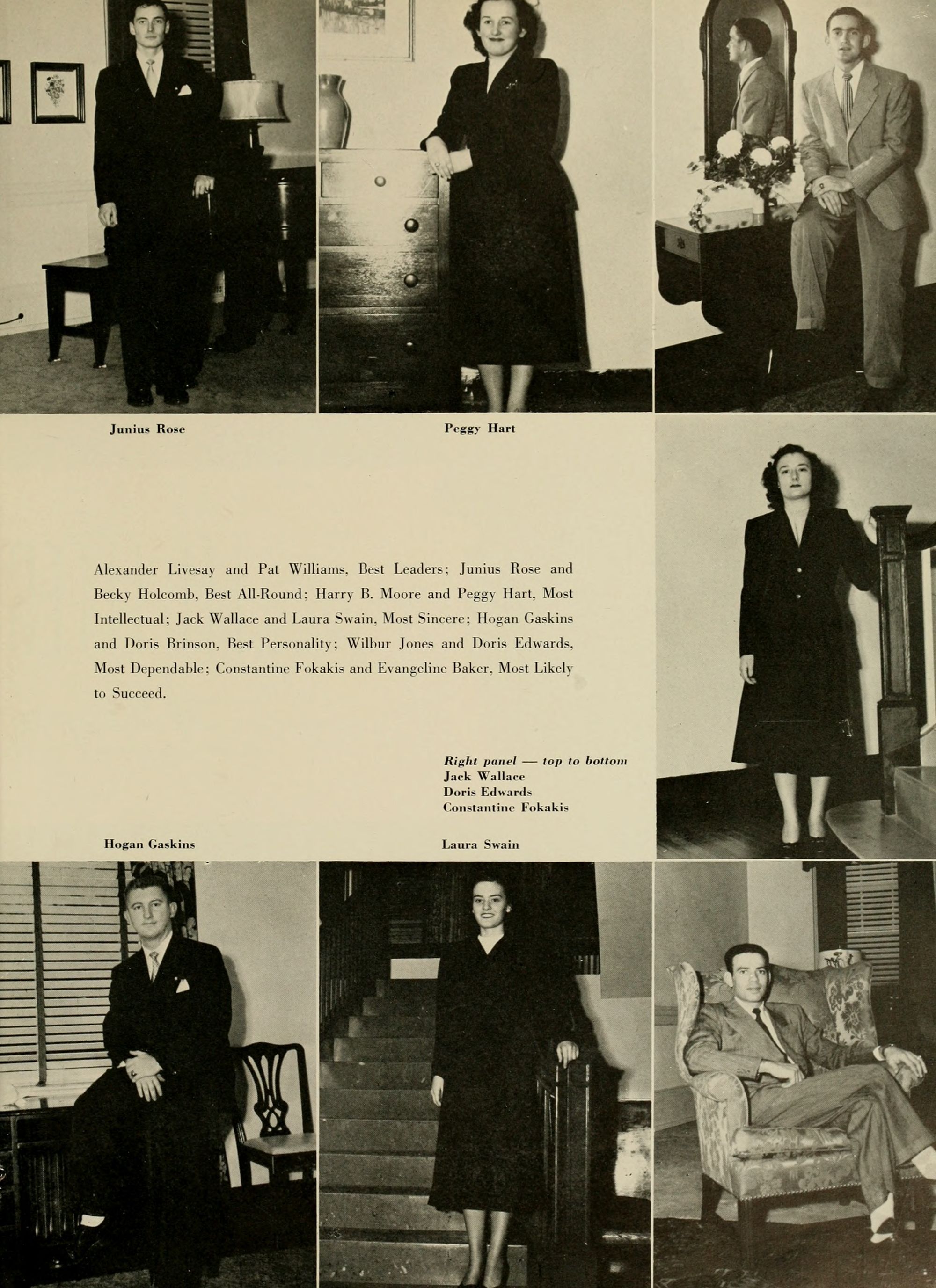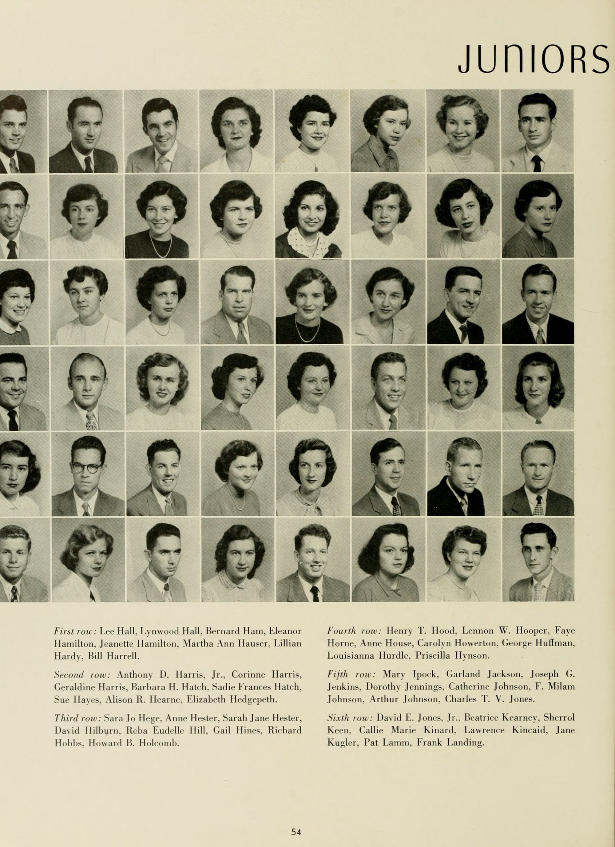 First Row: Mary H. Greene, English; Lois Grigsby, English; Peggy Hampton, Assistant Librarian; Dr. H. C. Haynes, Psychology; R. M. Helms, Science; E. C. Hollar, Social Studies; Robert L. Holt, Director, Religious Activities; Emma L. Hooper, English; W. W. Howell, Business Education.
