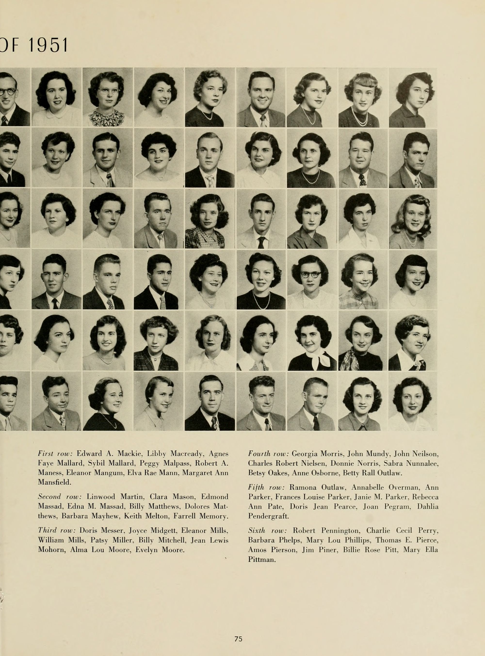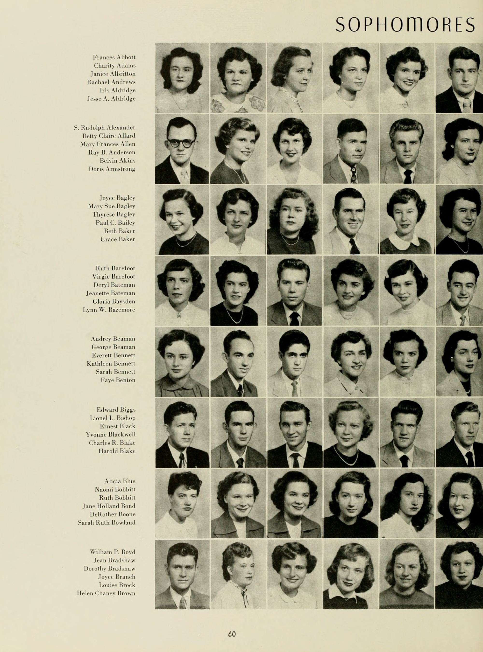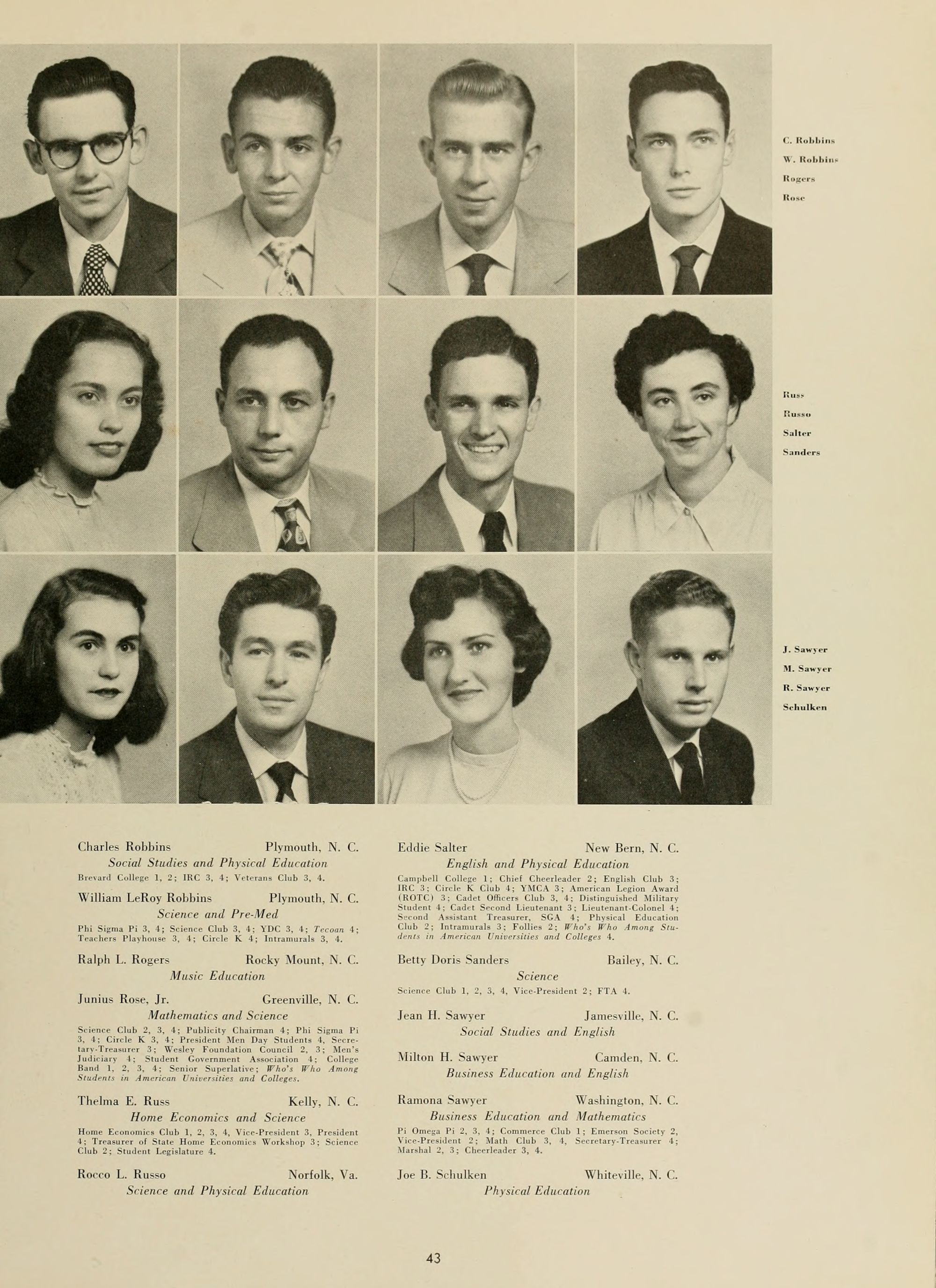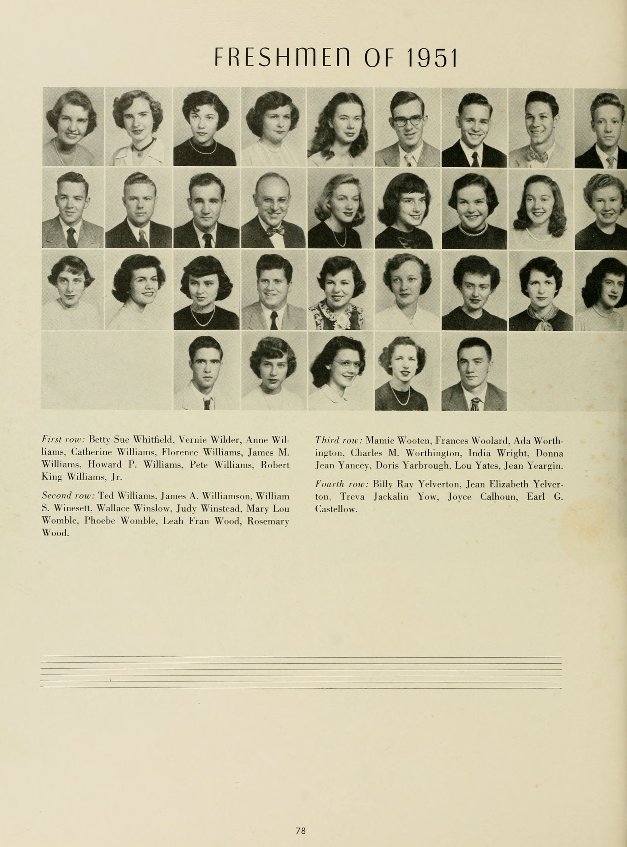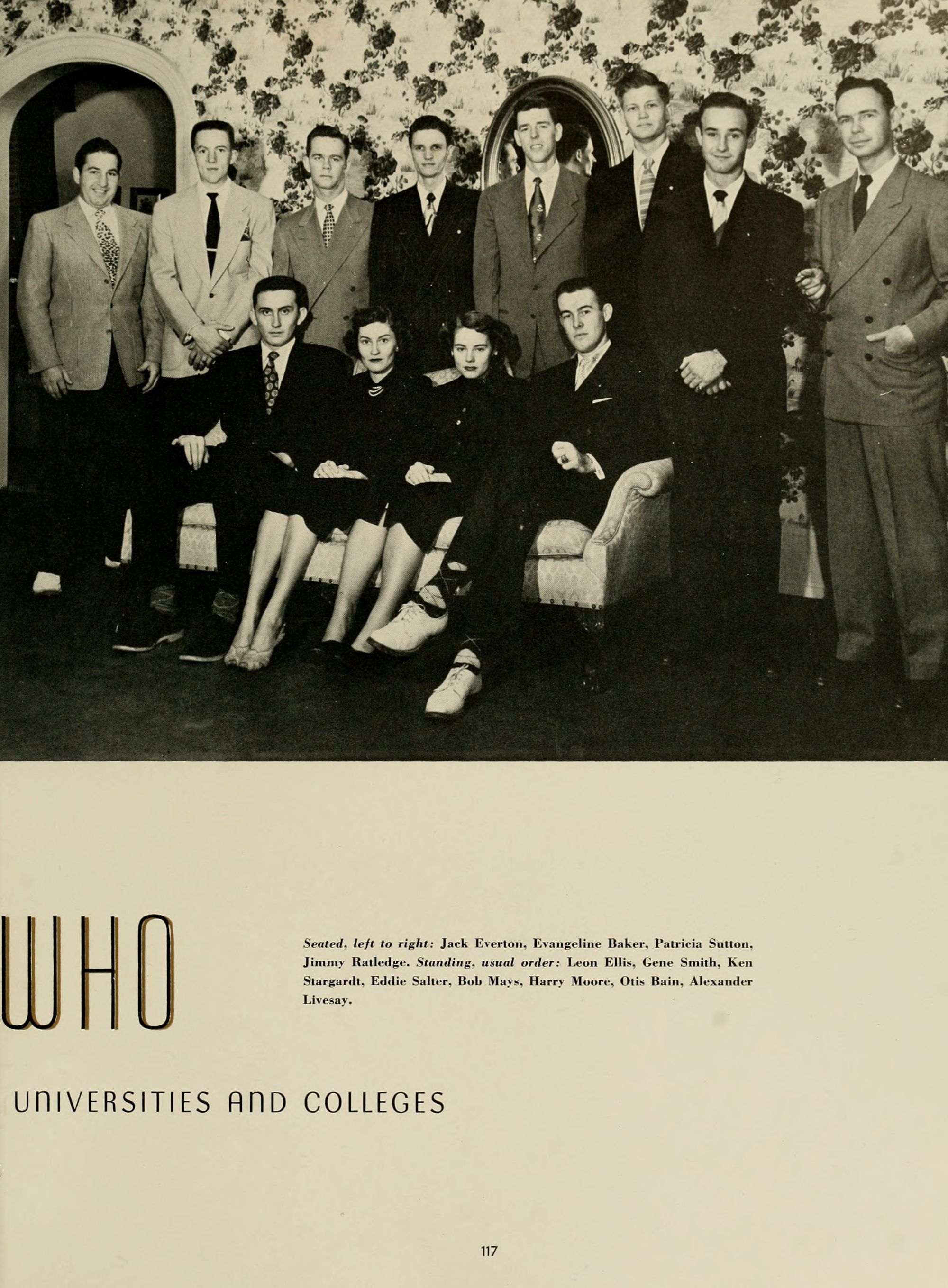 First Row: Mary H. Greene, English; Lois Grigsby, English; Peggy Hampton, Assistant Librarian; Dr. H. C. Haynes, Psychology; R. M. Helms, Science; E. C. Hollar, Social Studies; Robert L. Holt, Director, Religious Activities; Emma L. Hooper, English; W. W. Howell, Business Education.