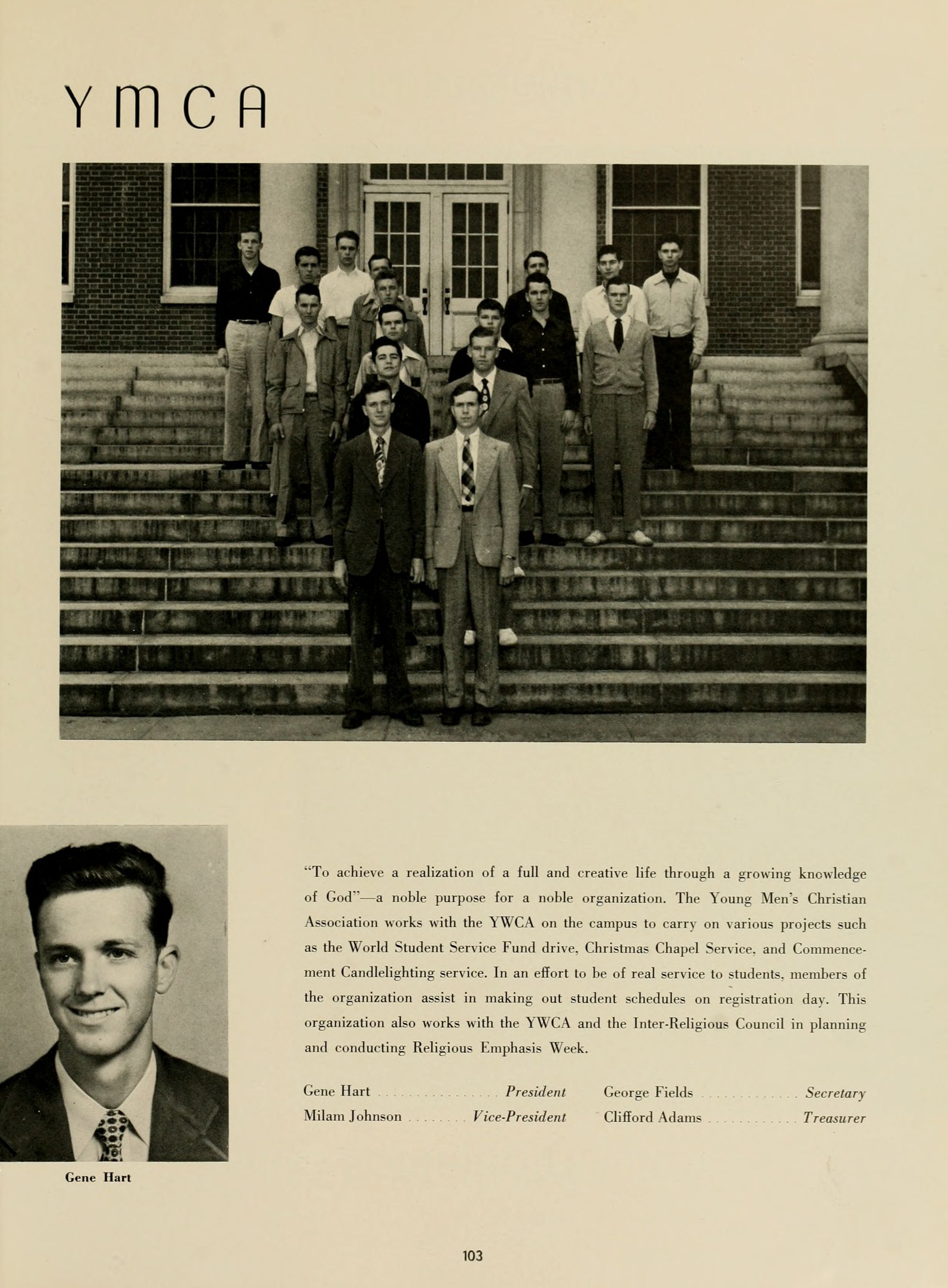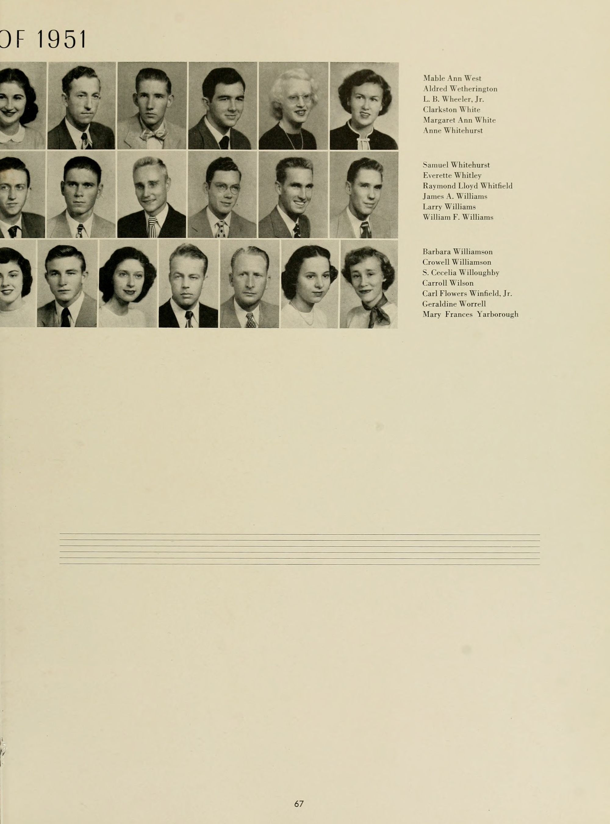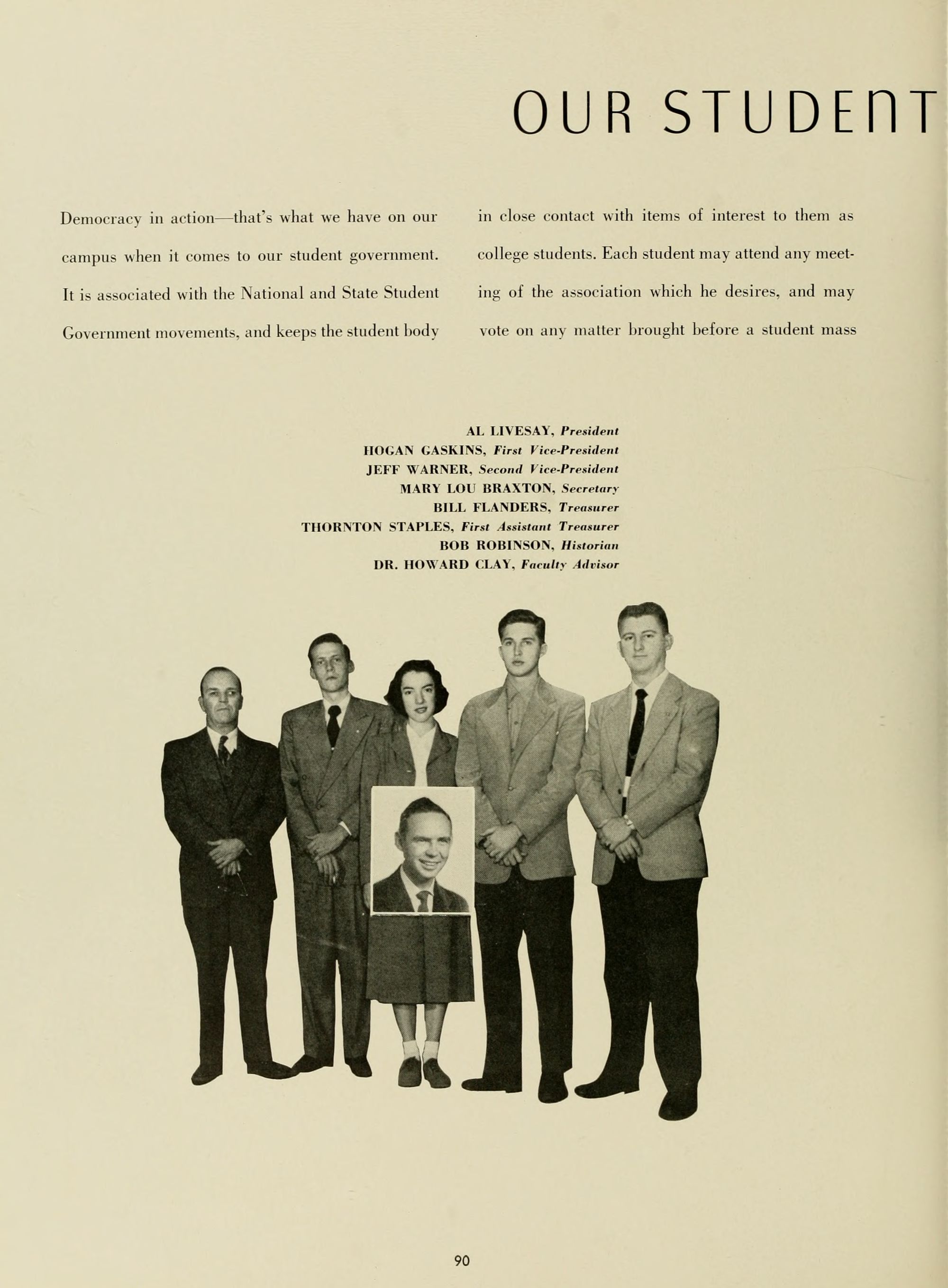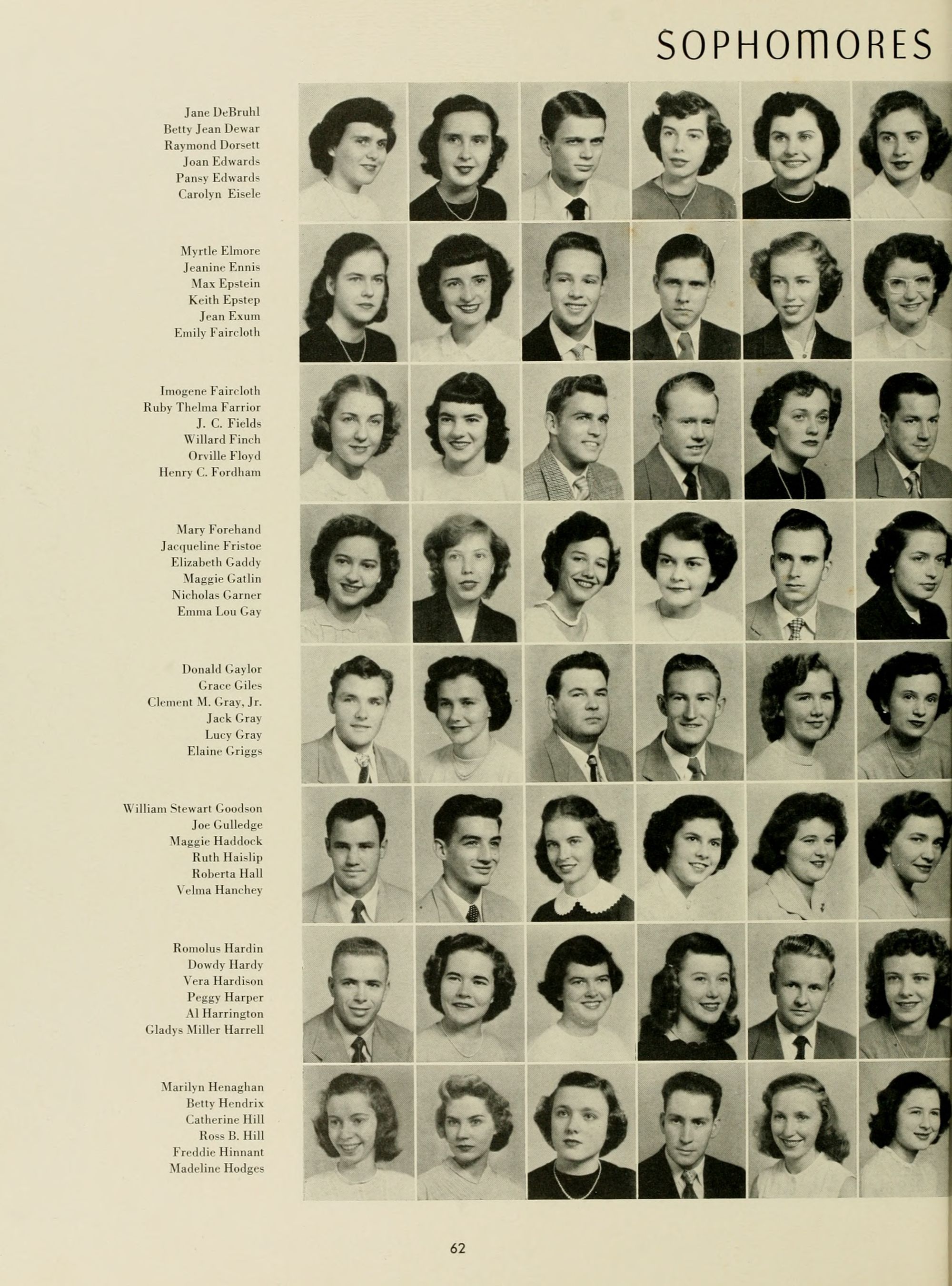 First Row: Mary H. Greene, English; Lois Grigsby, English; Peggy Hampton, Assistant Librarian; Dr. H. C. Haynes, Psychology; R. M. Helms, Science; E. C. Hollar, Social Studies; Robert L. Holt, Director, Religious Activities; Emma L. Hooper, English; W. W. Howell, Business Education.