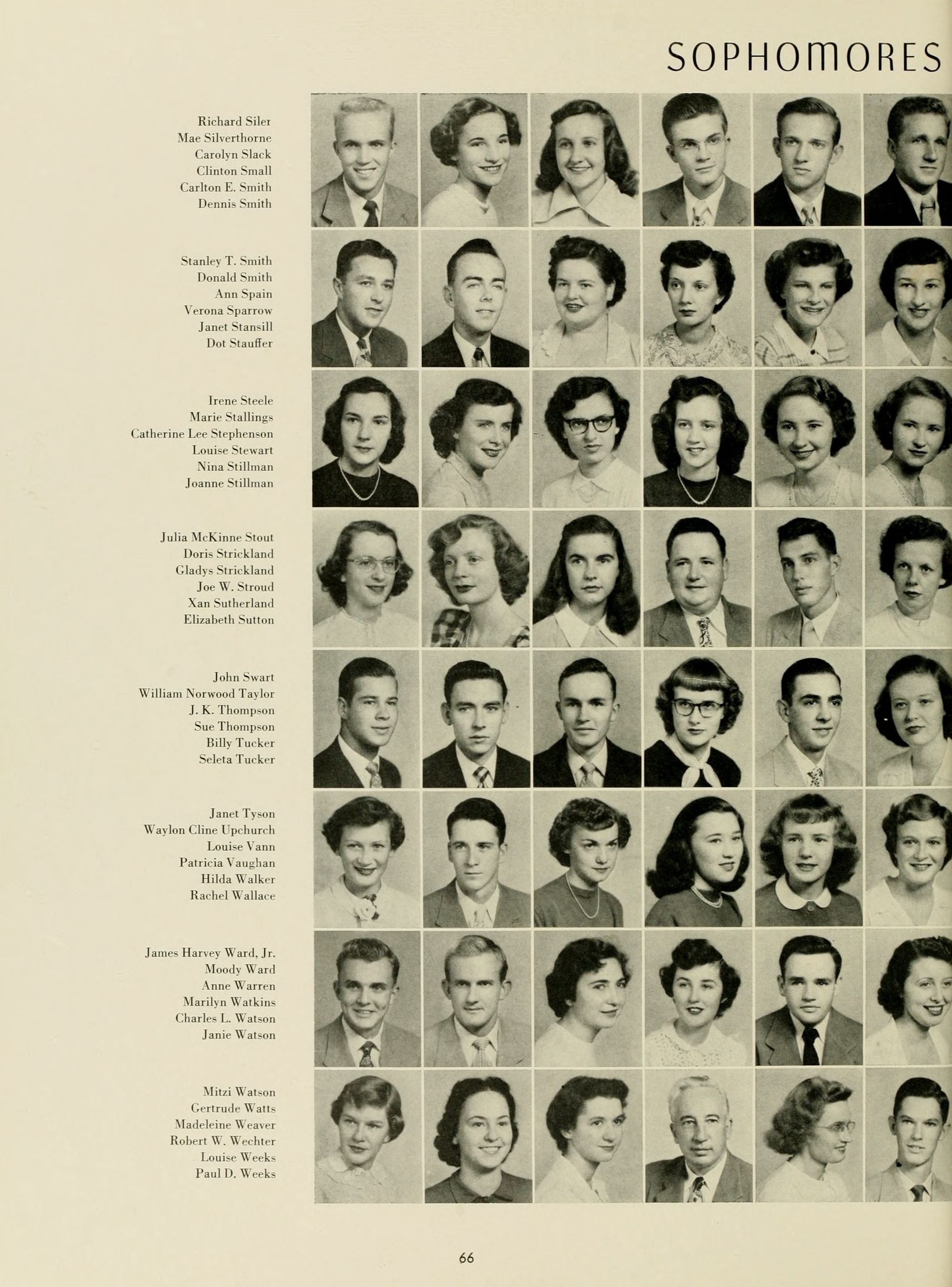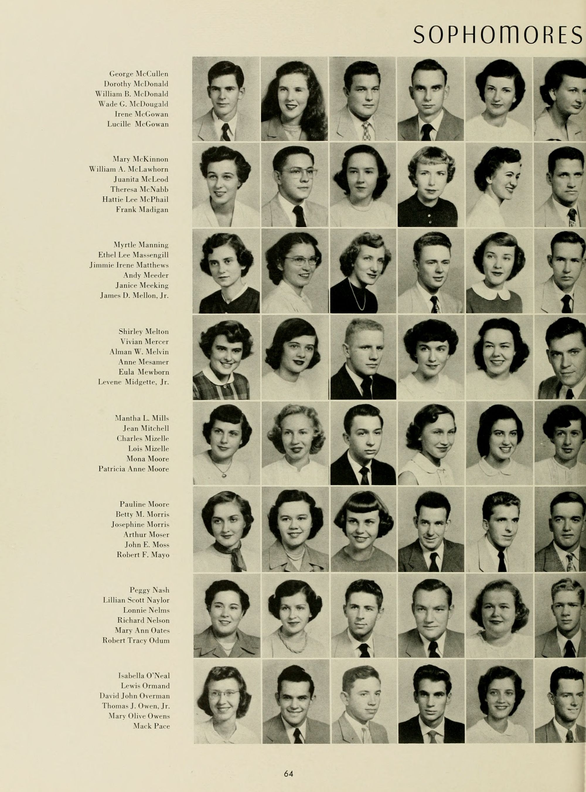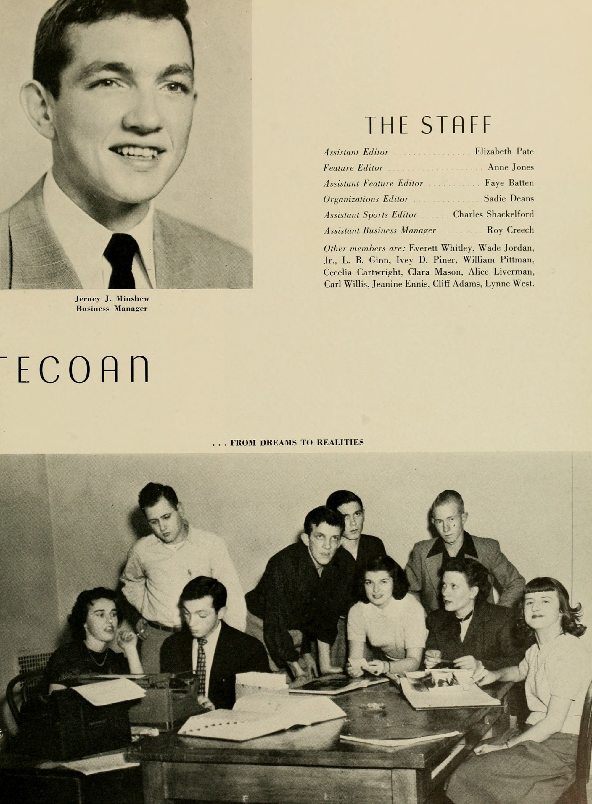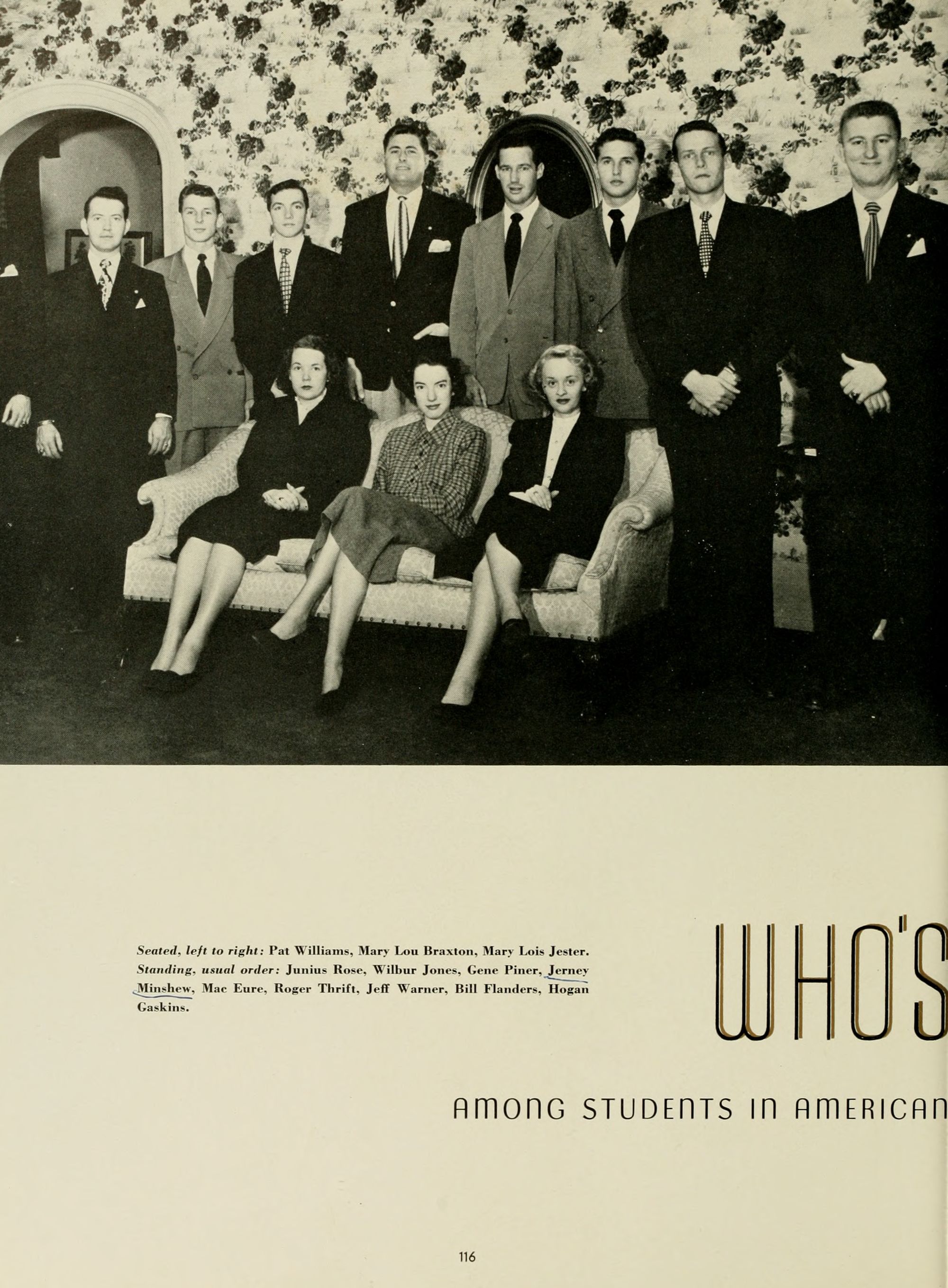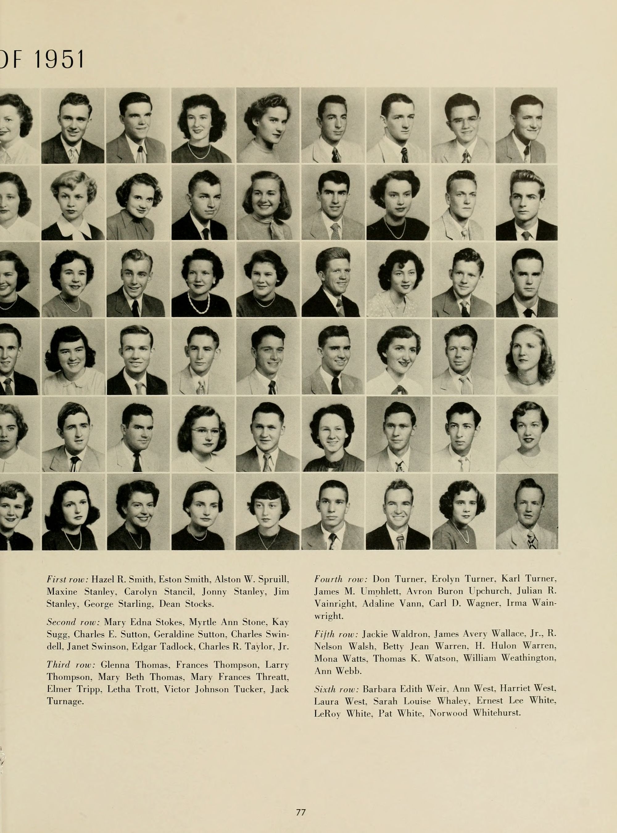 First Row: Mary H. Greene, English; Lois Grigsby, English; Peggy Hampton, Assistant Librarian; Dr. H. C. Haynes, Psychology; R. M. Helms, Science; E. C. Hollar, Social Studies; Robert L. Holt, Director, Religious Activities; Emma L. Hooper, English; W. W. Howell, Business Education.