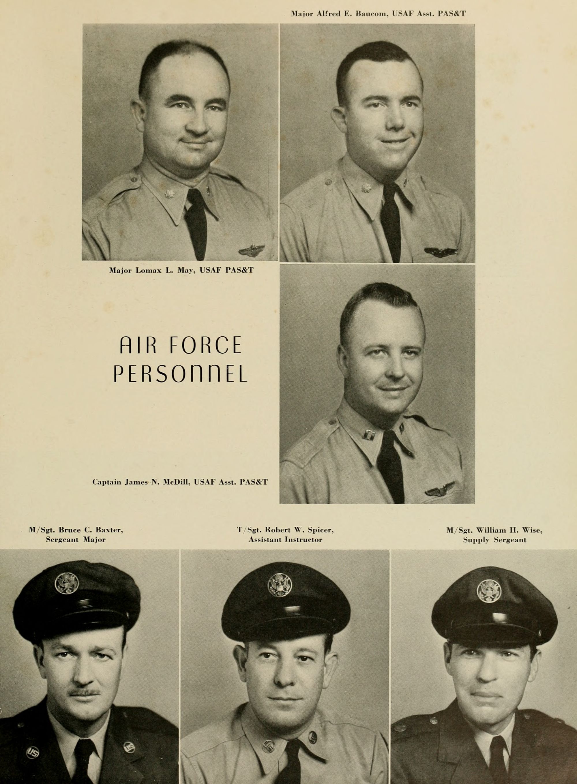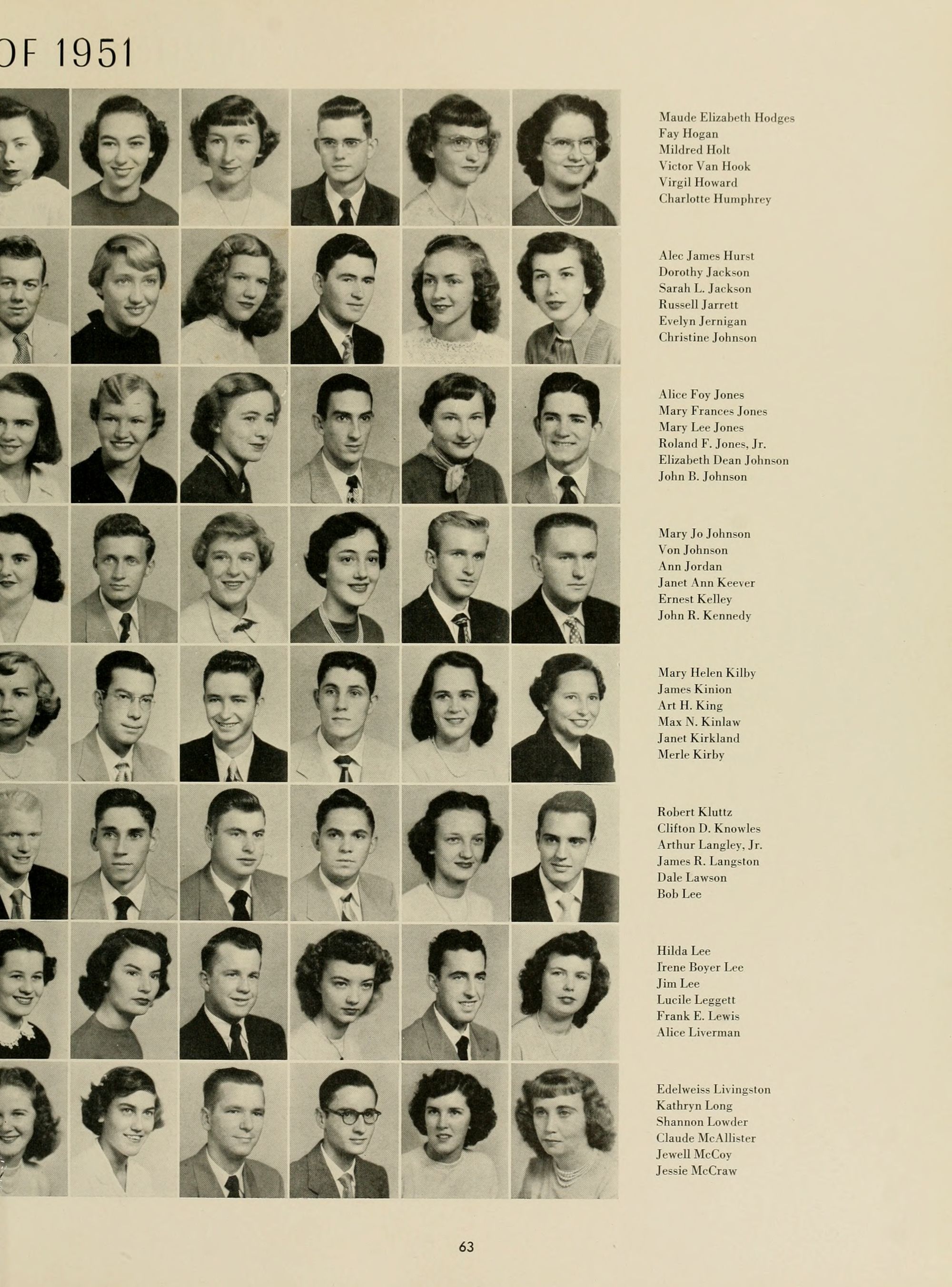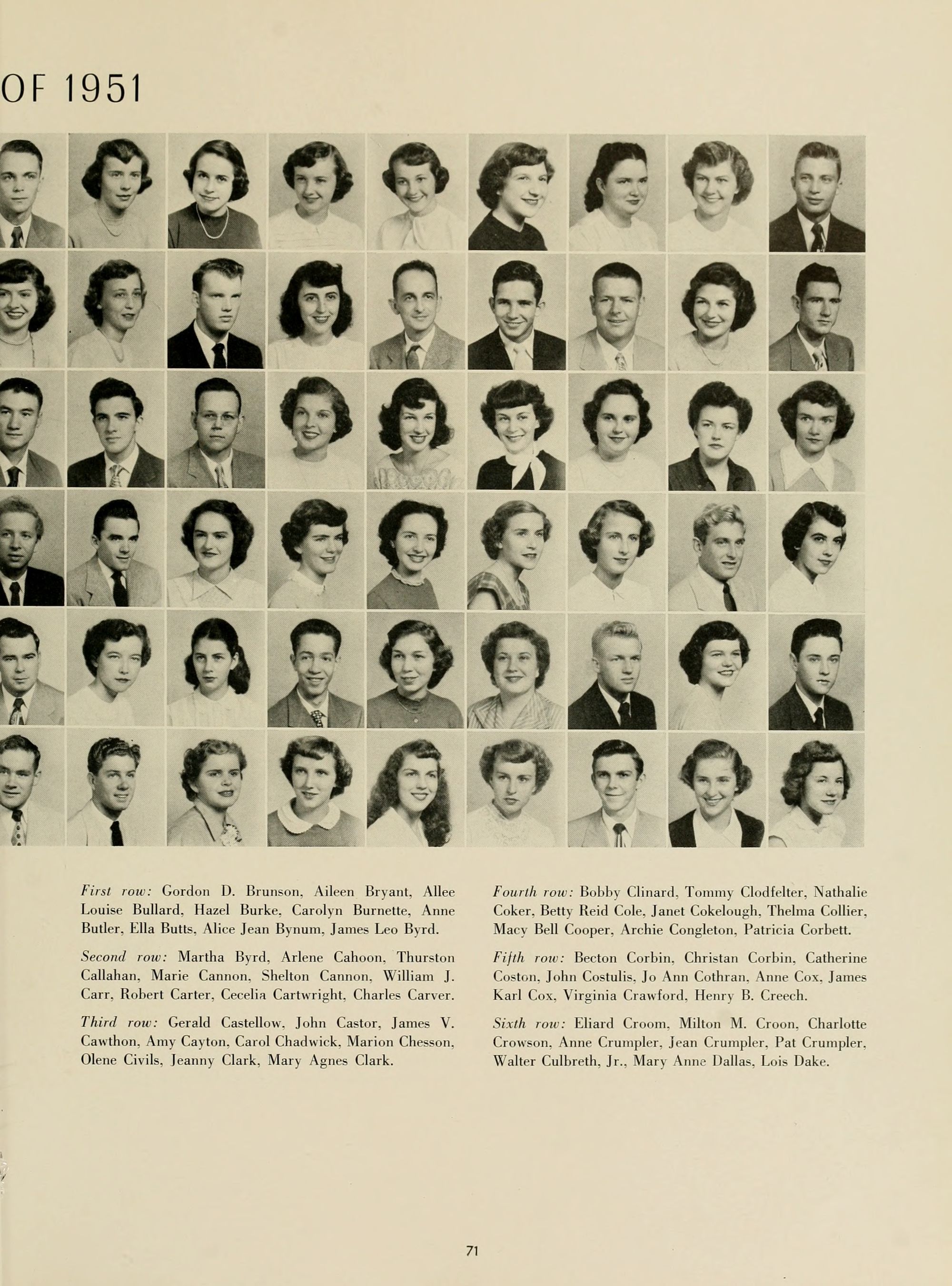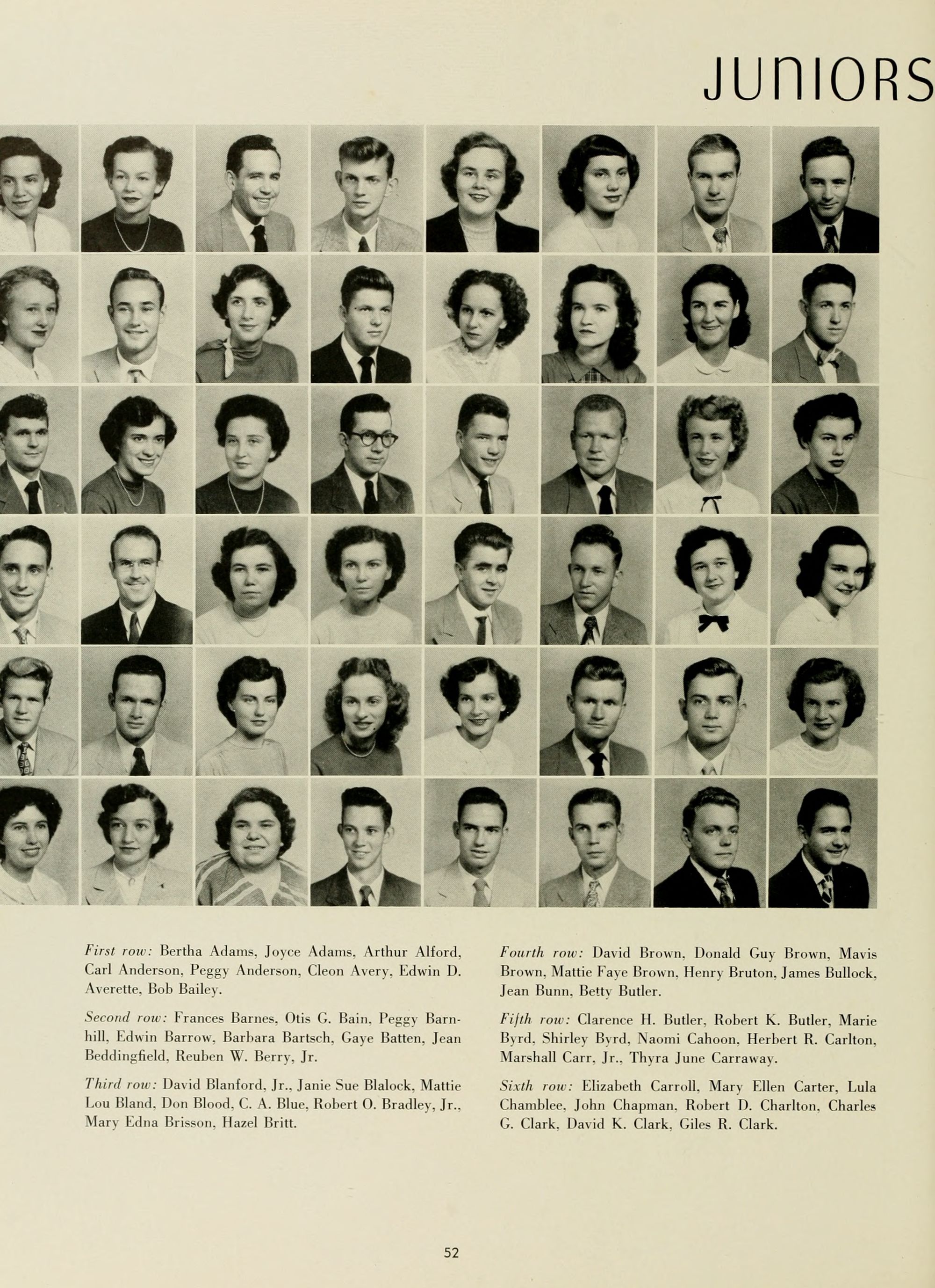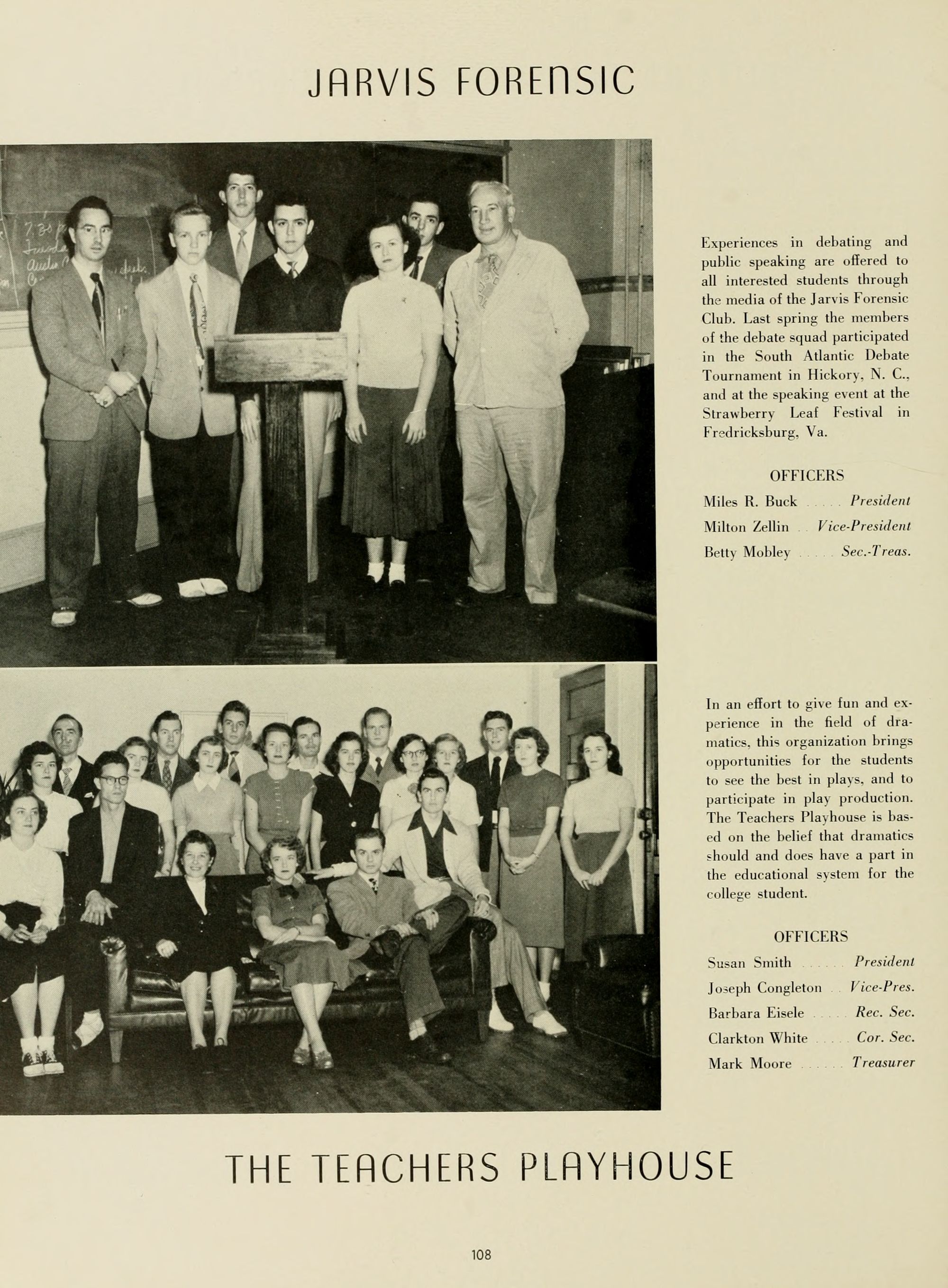 Second Row: Norman Cameron, Business Education; Herbert Carter, Music; Robert Carter, Music; Dr. Mary Caughey, Science; Dr. Lucile Charles, English; Beatrice Chauncey. Music; Dora Cirlot, Art: Dr. Howard Clay, Social Studies; Dora E. Coates, Education.