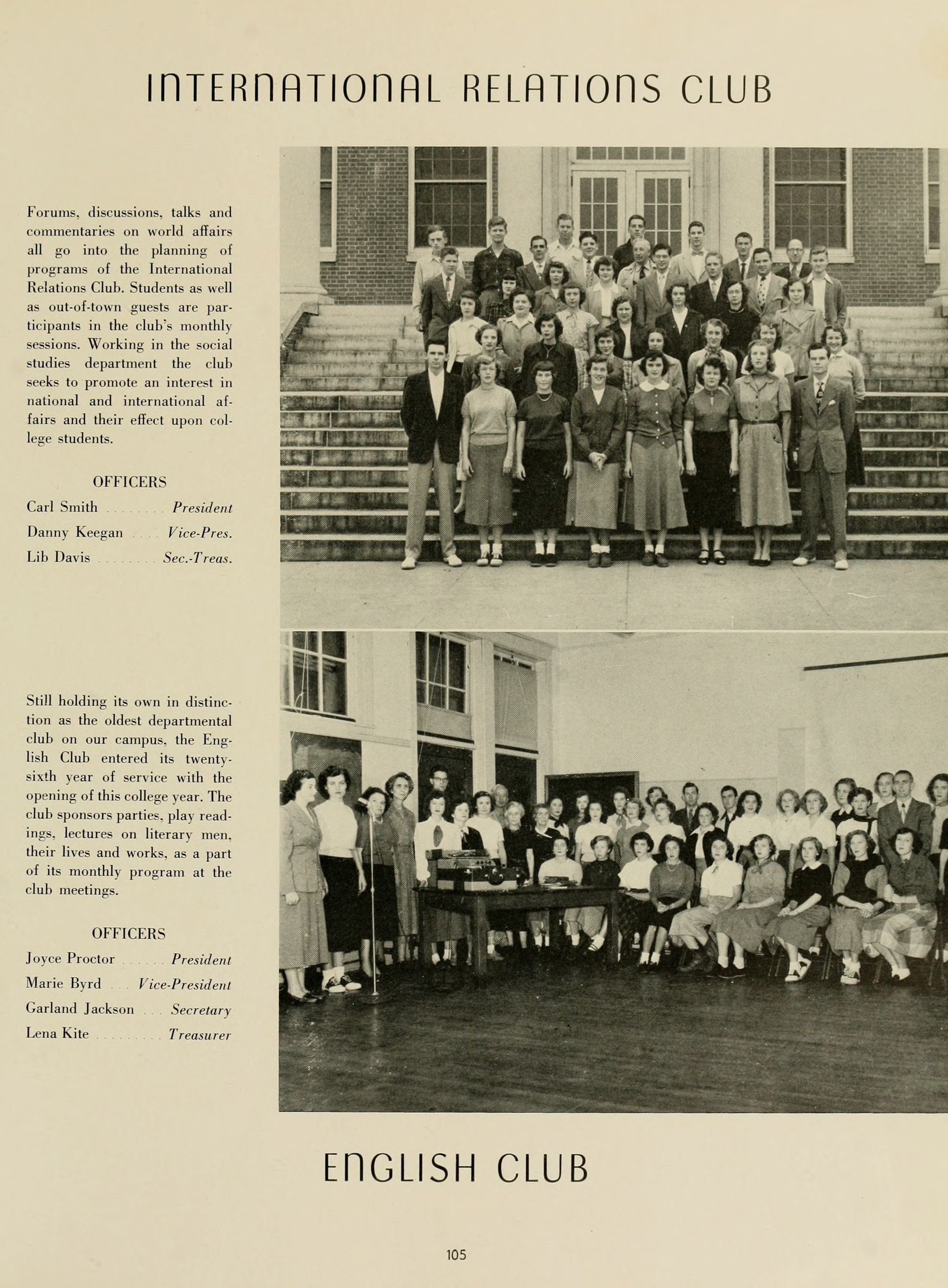 Second Row: Dr. R. C. Simonini, English; W. W. Smiley, Librarian; Mrs. Harry Snyder, Dormitory Counselor; Dr. Kathleen Stokes, Social Studies; Alice Strawn, Home Economics; Dr. Hazel Taylor, Psychology; Dr. Richard Todd, Social Studies.