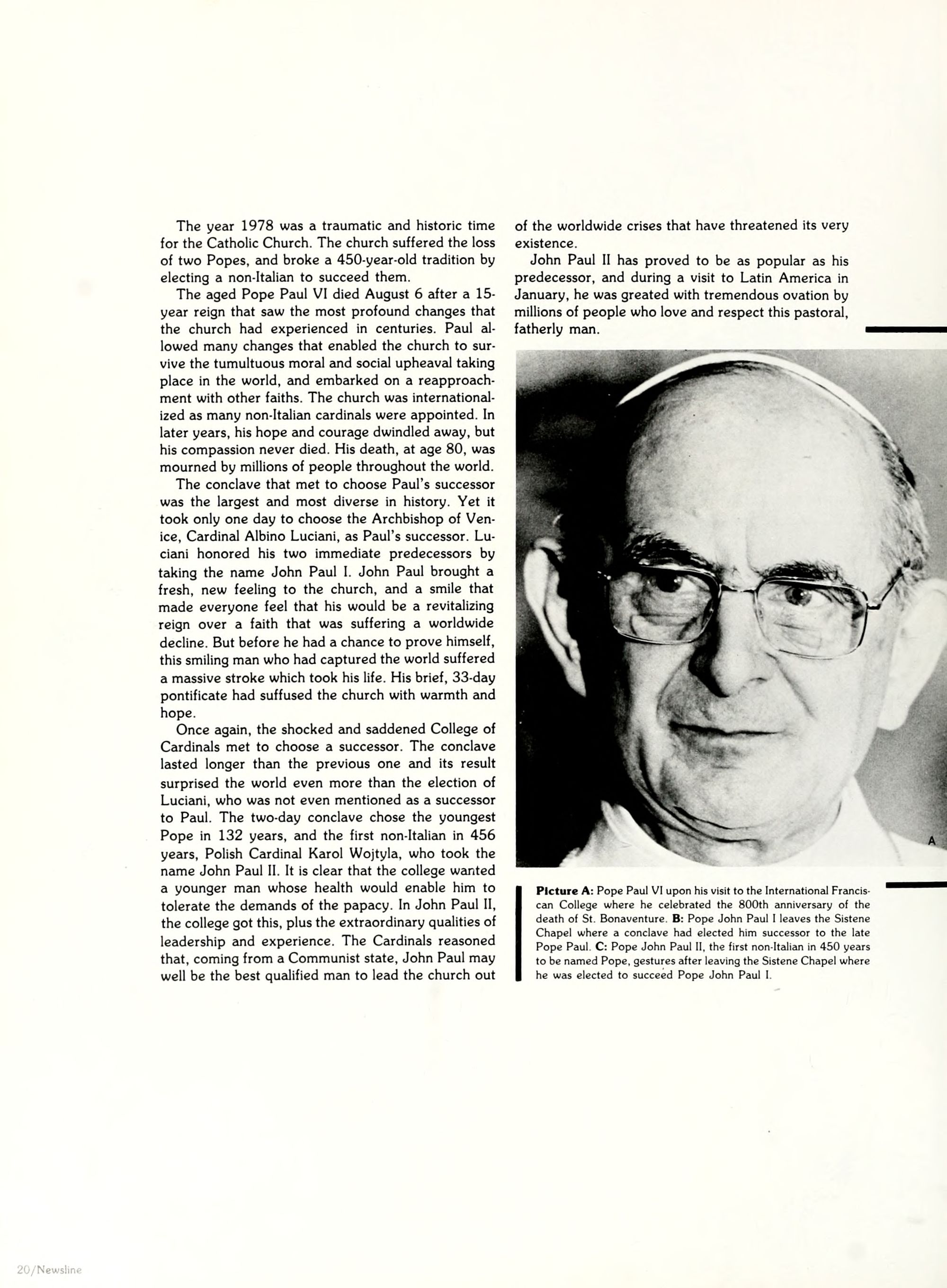 Catholic Church suffers traumatic loss of two Popes as Paul IV and John Paul I die within 2 months.
