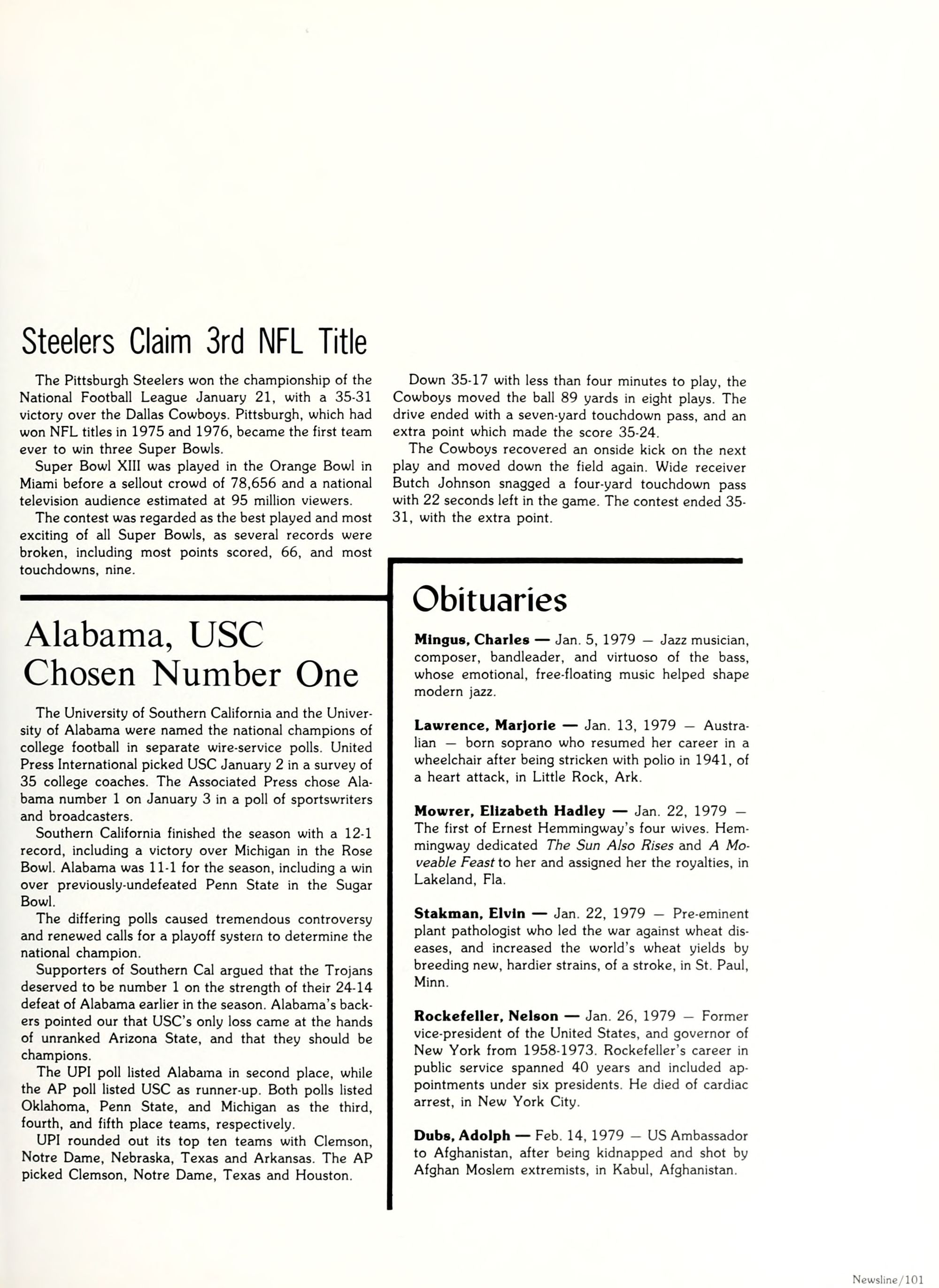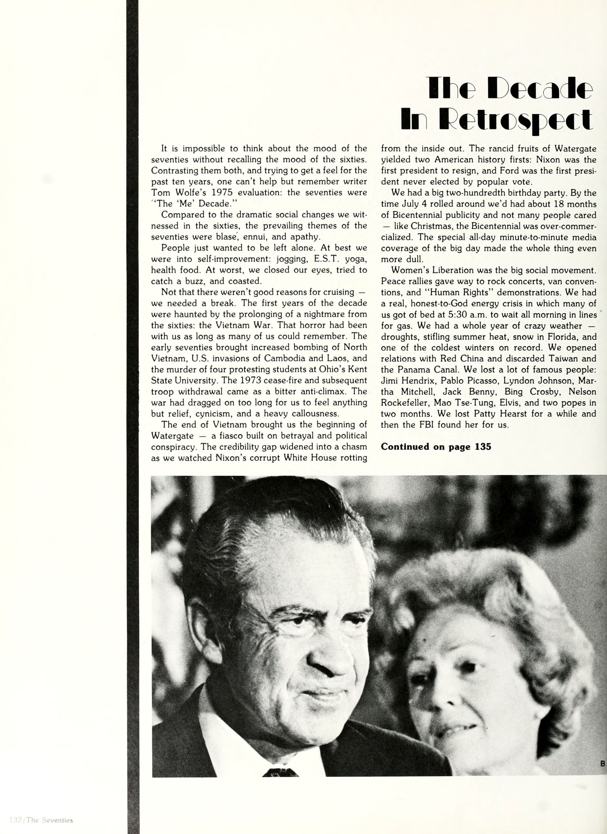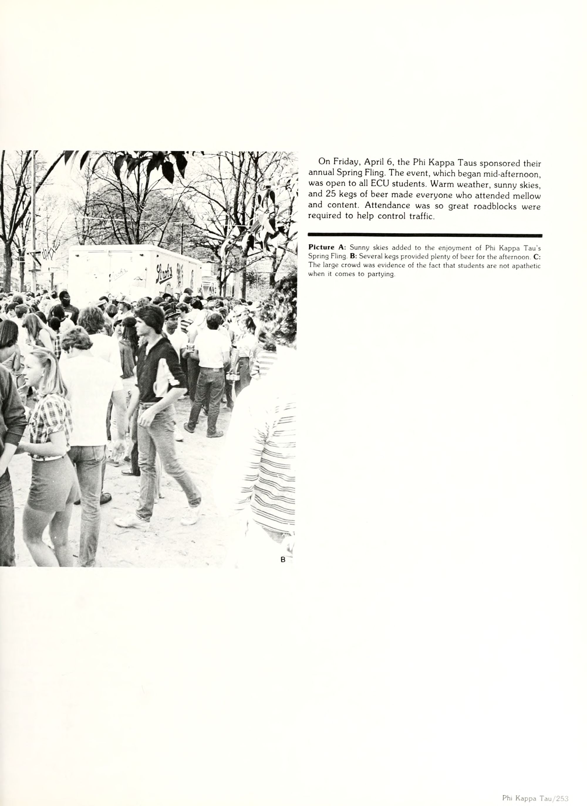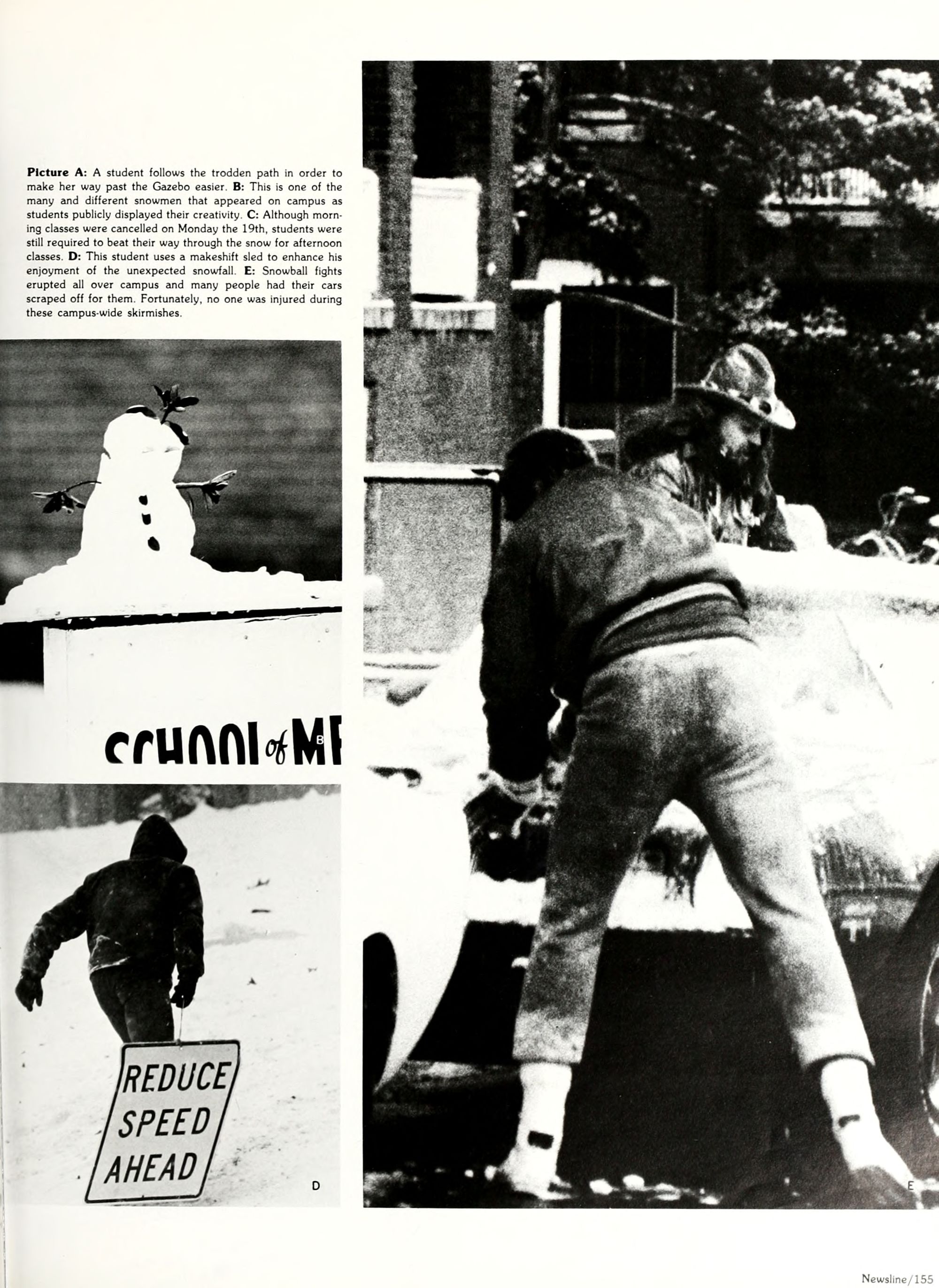 The next year saw the same second editor attempting to pick up the pieces and get a yearbook out. The facts behind this second failure are much harder to understand and accept than those of the first. No one realized a problem existed until the beginning of Fall Semester 1978. Suddenly, a Fountainhead story claimed that the yearbook was in serious trouble for the second year in a row. The story claimed that nothing had been done for a year - no plans were made, no pictures were taken, and the staff was never told what to do. Amidst promises by the editor that the book would be finished, the student body waited. November 1978 came, and with no progress made, the Media Board cancelled the publication of the book.
