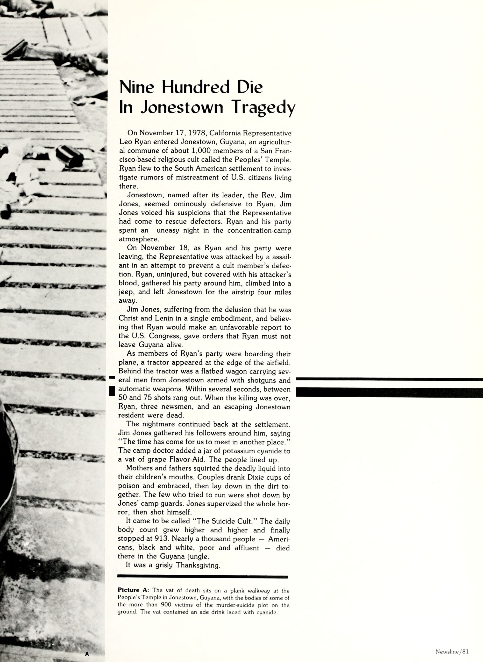 Tragedy in Jonestown sparks renewed controversy over religious cults, as 900 die in bizarre murder-suicide pact.