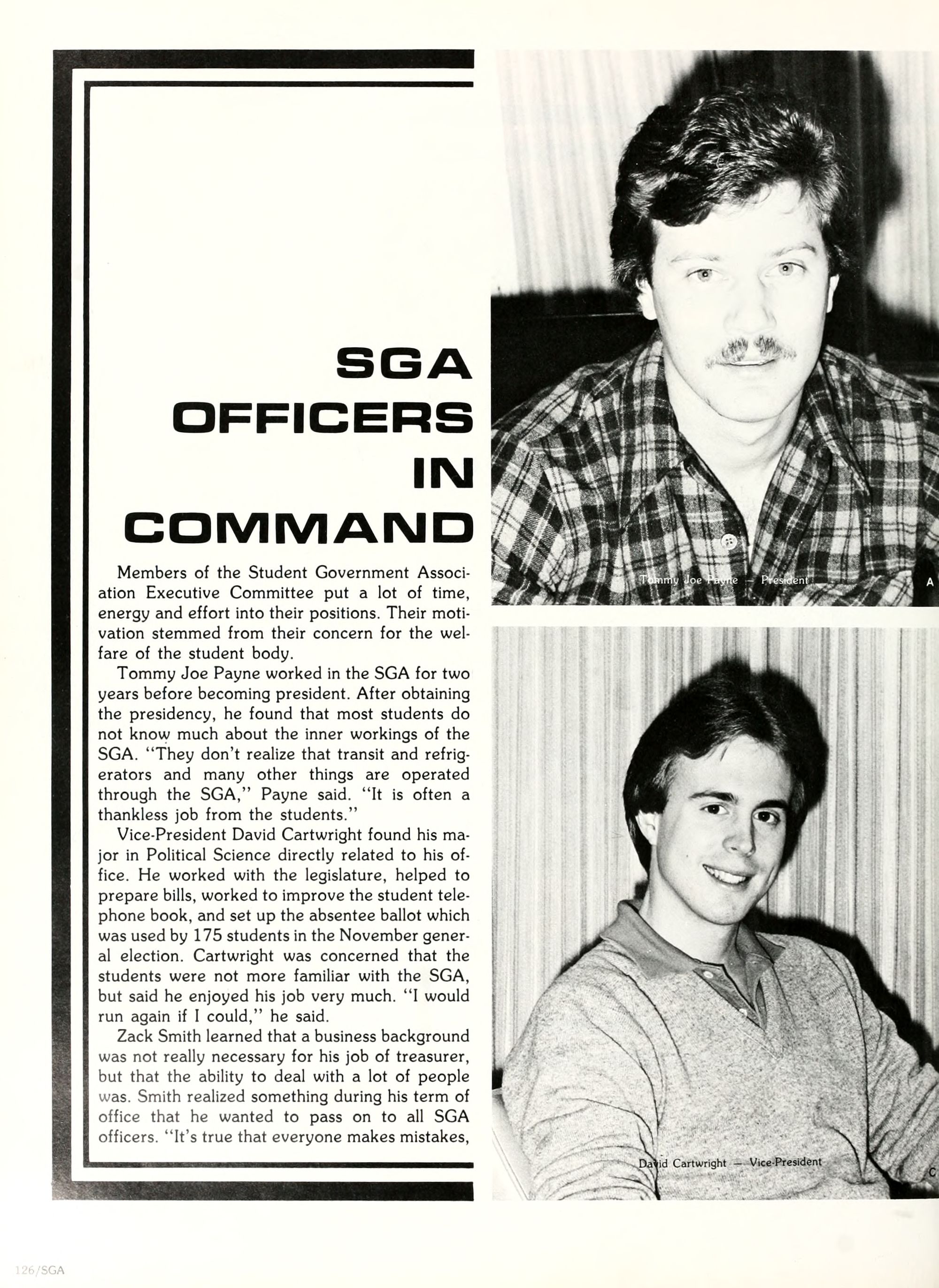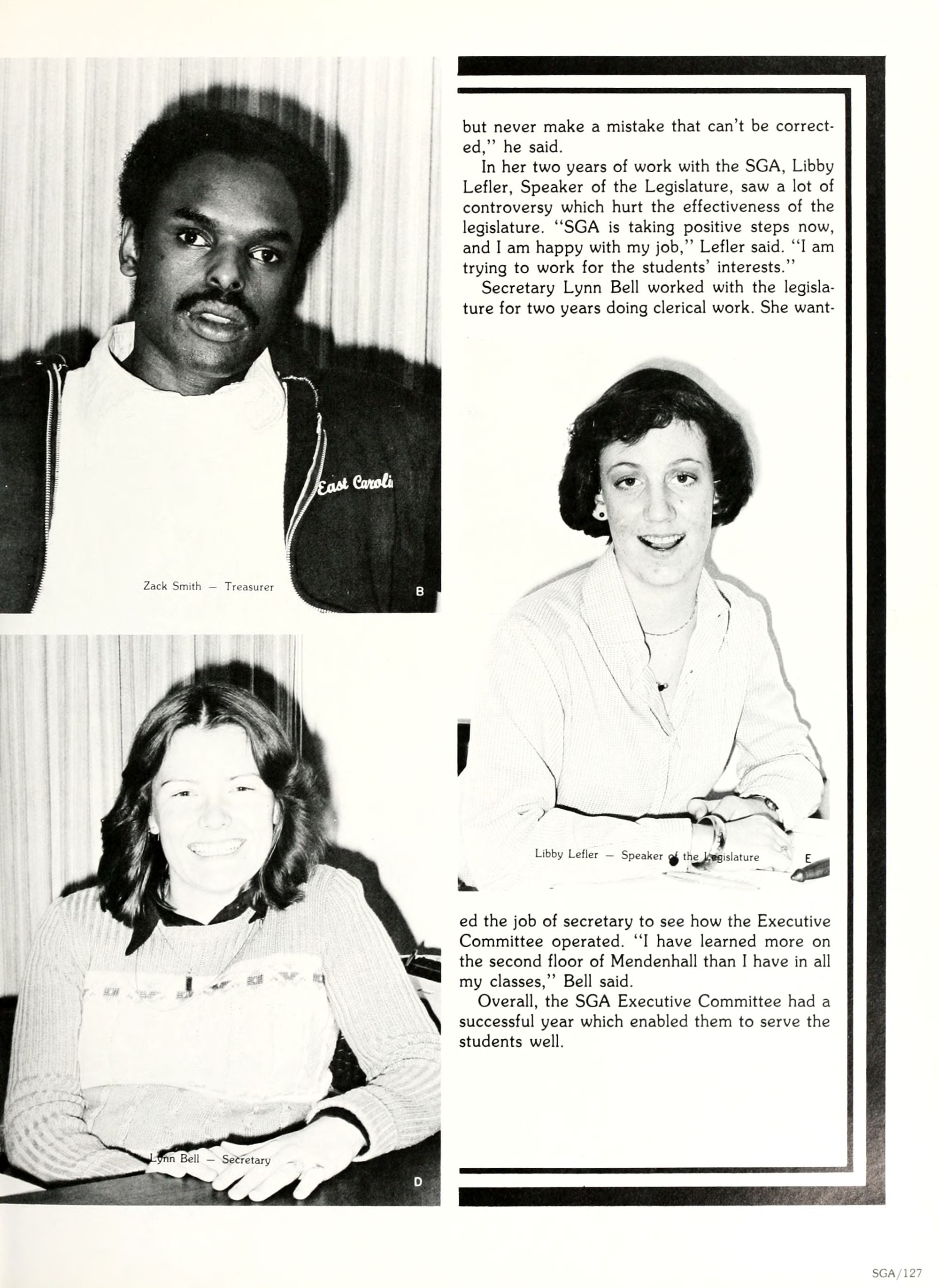 The 1977 edition fell victim to controversy between the editor and the Student Government Association, which at that time controlled the funding of the yearbook. Upon the SGA's rejection of an unnecessarily large budget which had been submitted by the editor, she and her staff resigned. For reasons only known to the legislators and staff members involved, no compromise was reached. Late in the year, a second editor was named, who agreed to a smaller budget and a smaller staff. But the late start and the theft of equipment from the