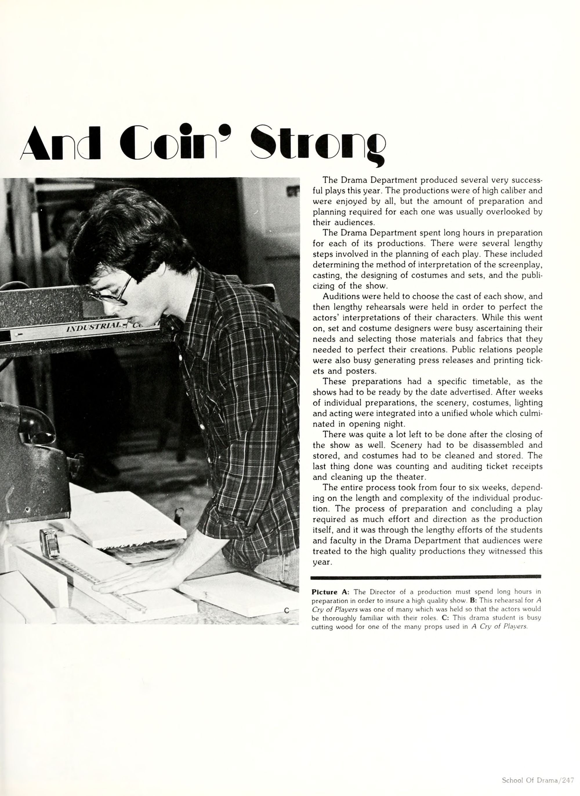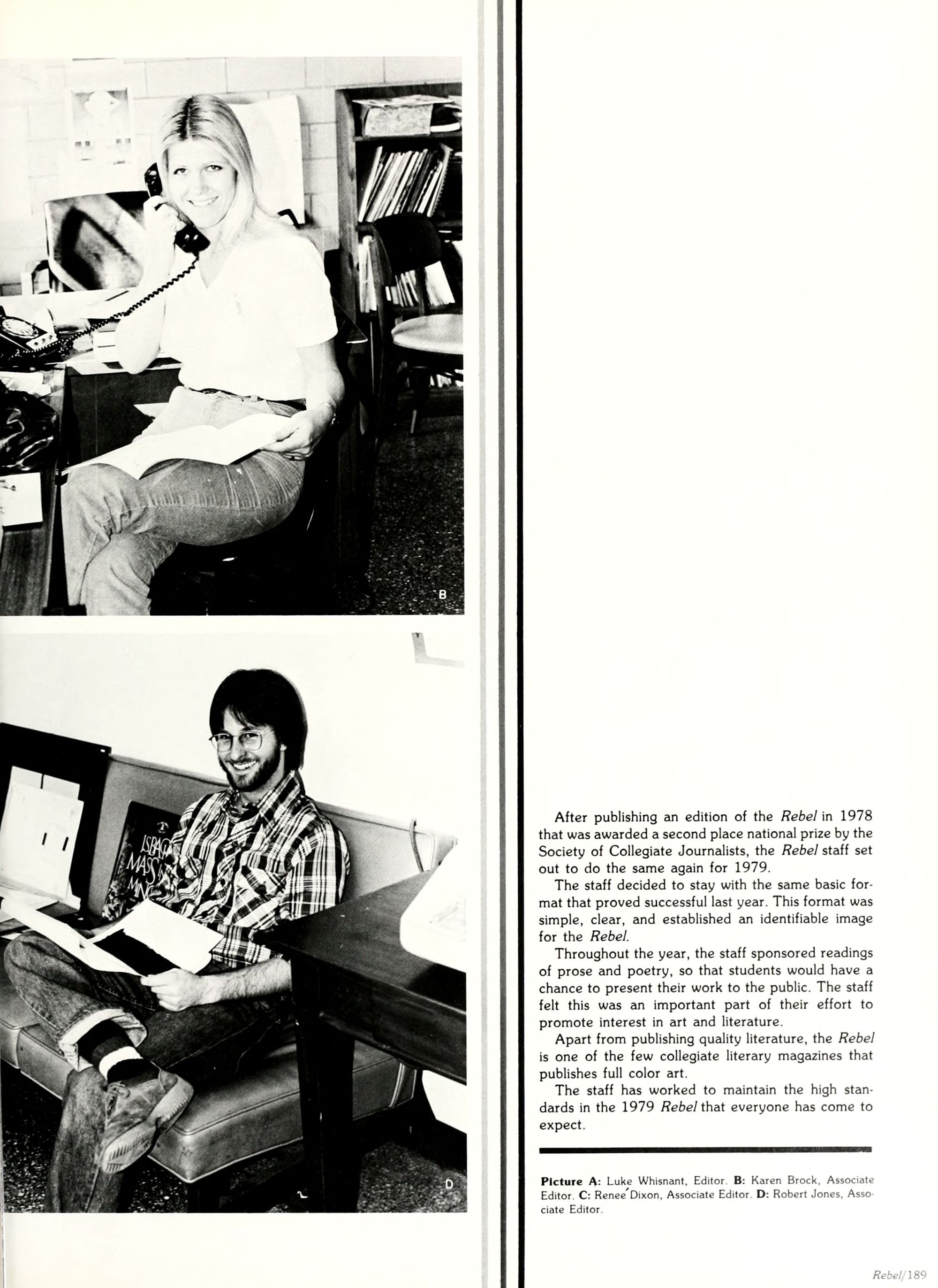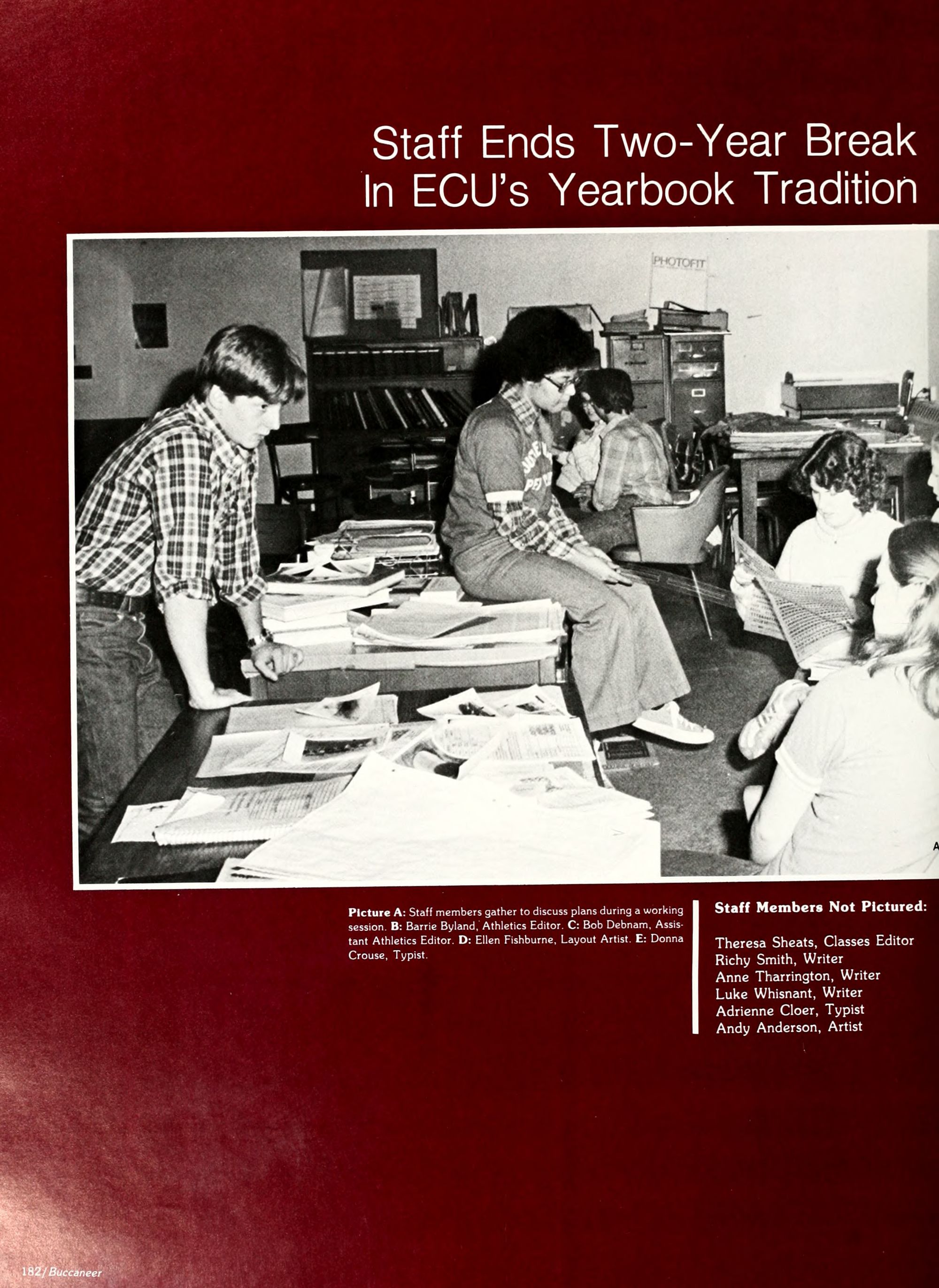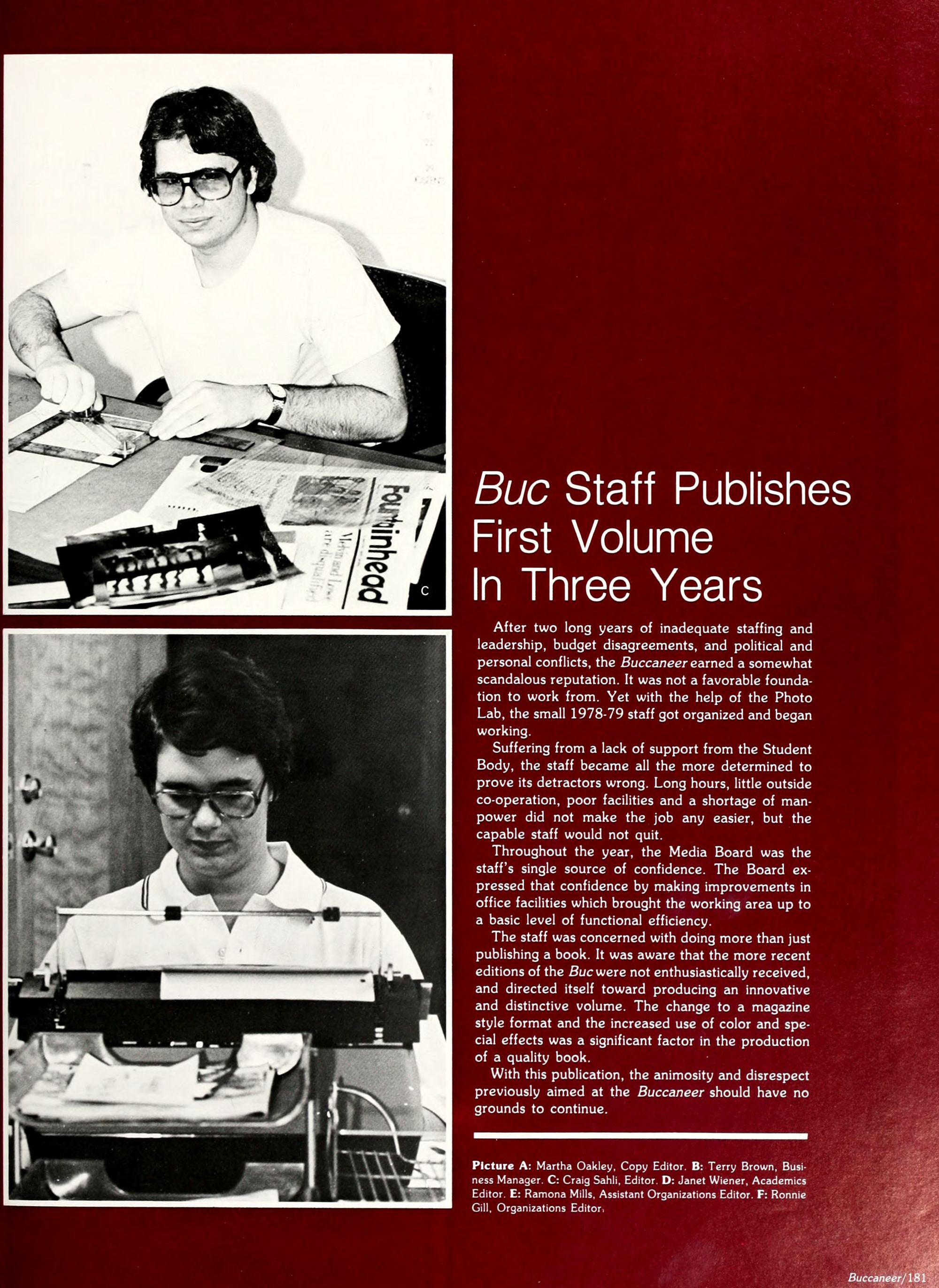 The 1979 Buc staff was hindered by all of this. Those who did not understand the situation, were quick to place the blame for what had happened on the '79 staff. Co-operation was a thing that nobody was willing to give, and the staff - consisting mostly of freshmen and sophomores - was put on the defensive. This was to be the "make or break" year. The future of the Buccaneer was at stake.
