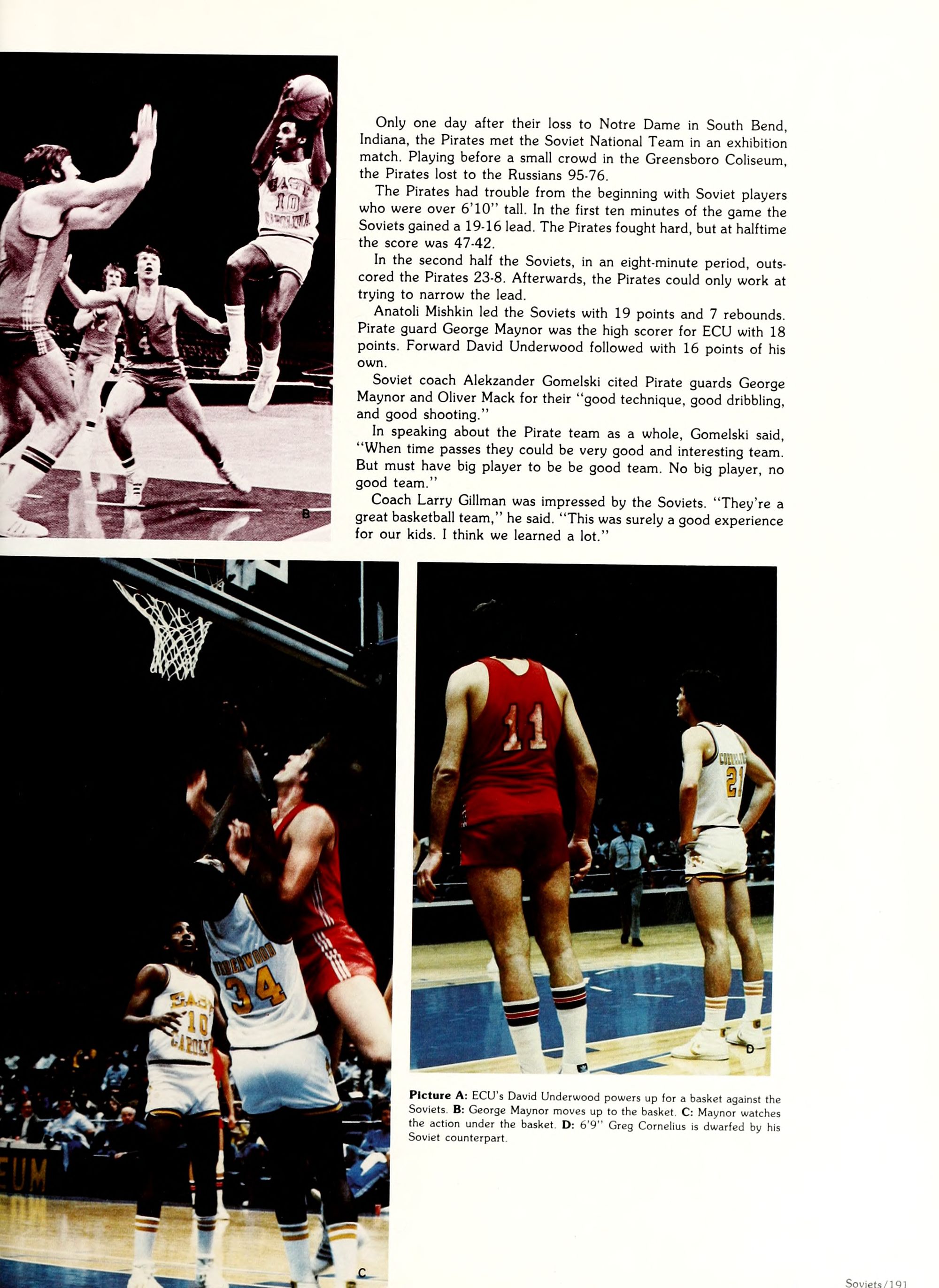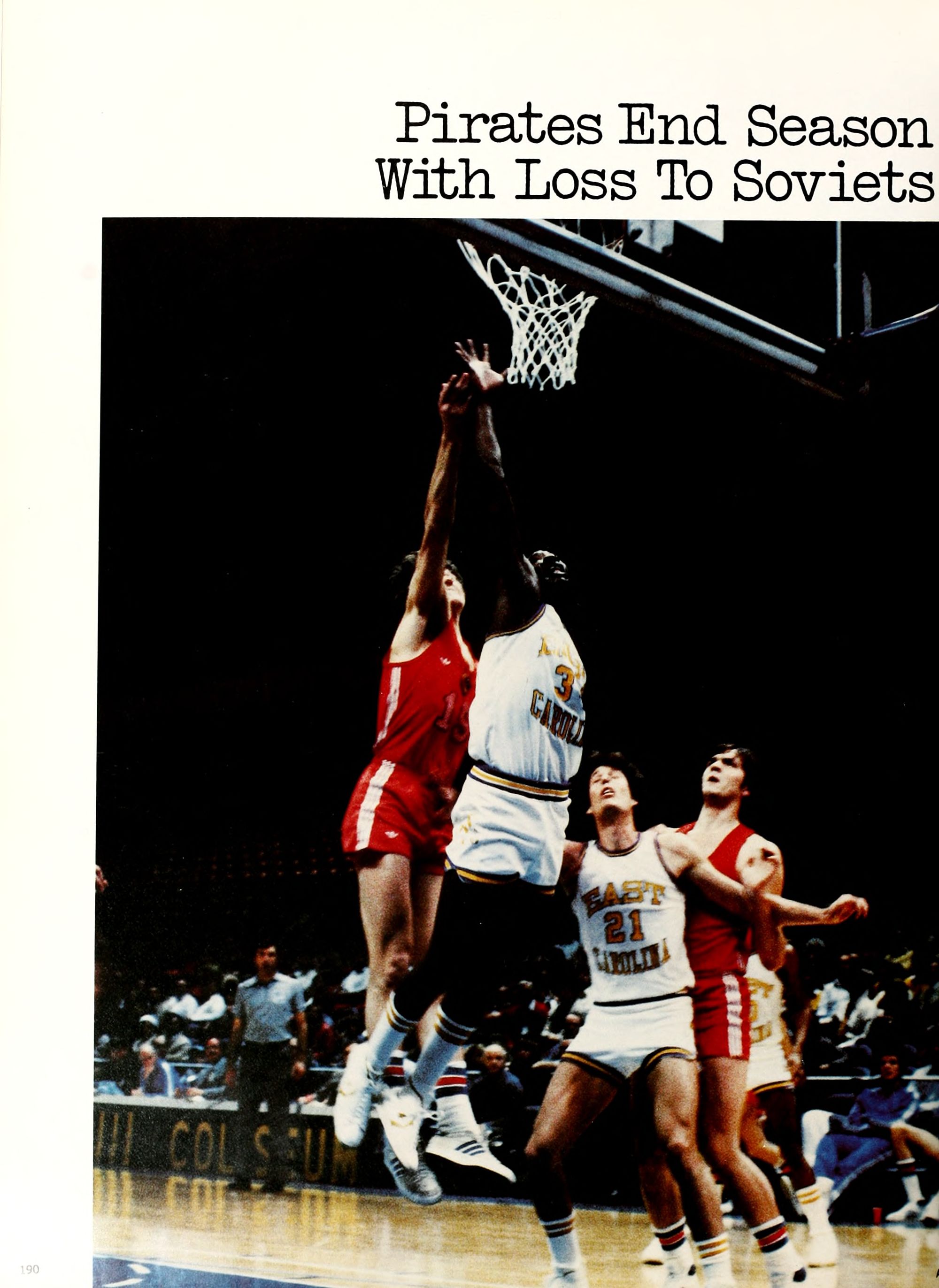 Men's basketball team finishes season with an exhibition game against Soviet National team.