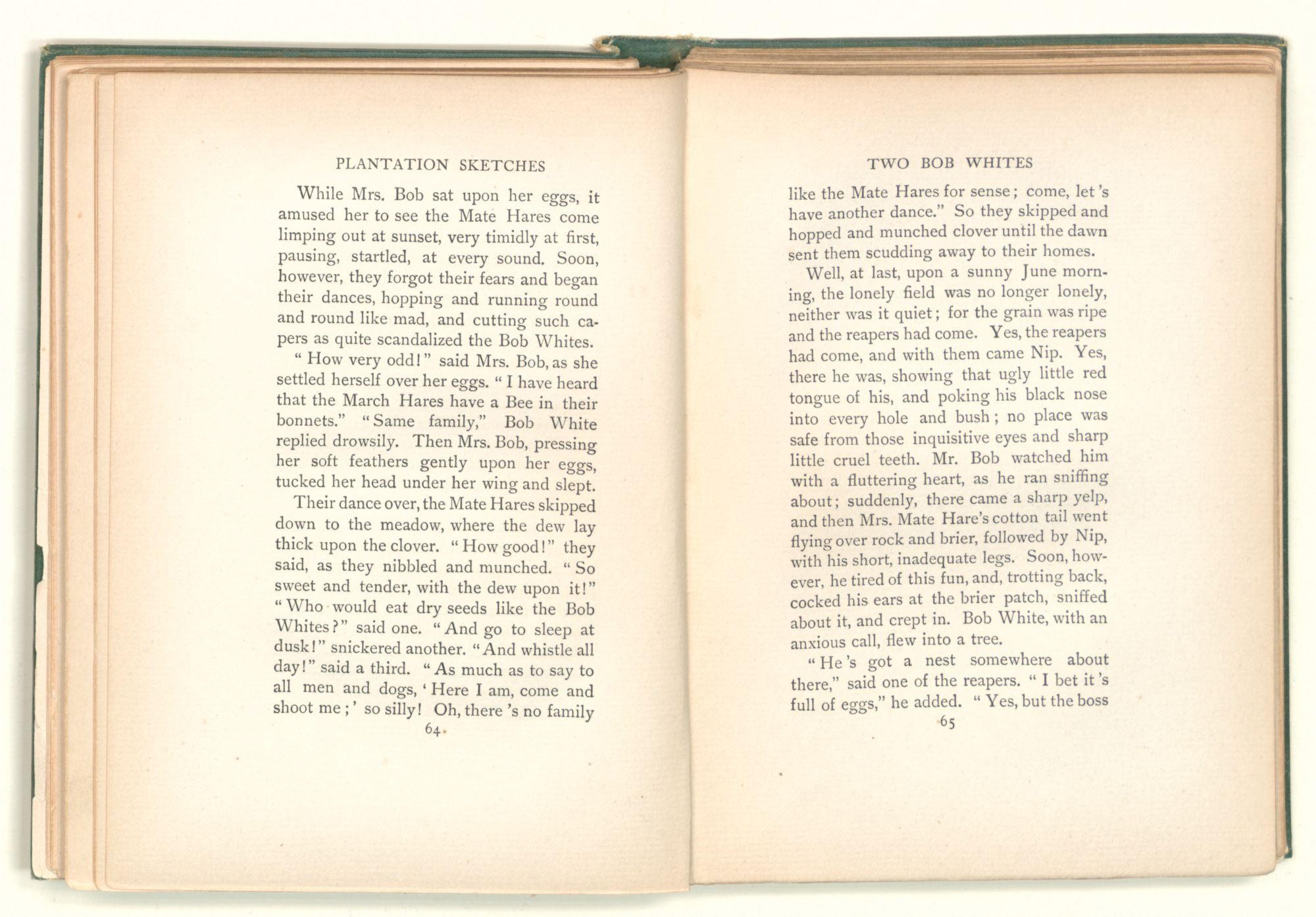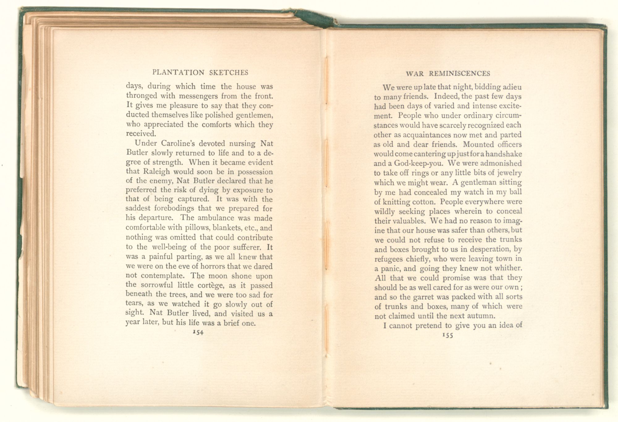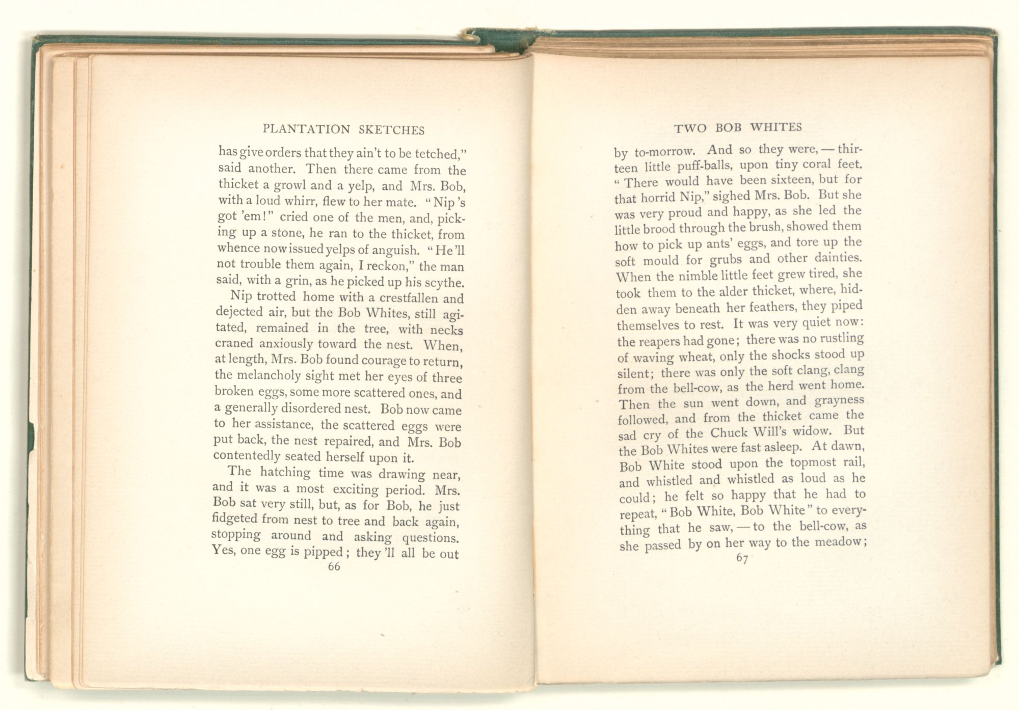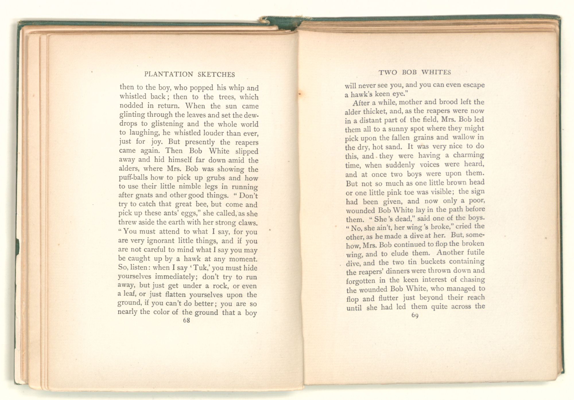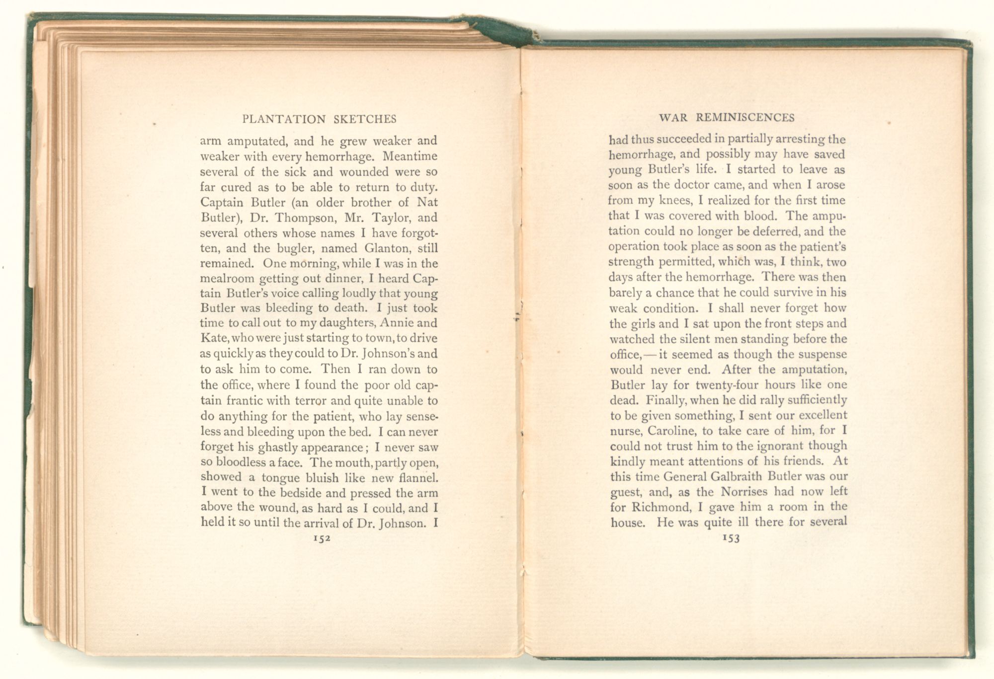 As the “New South,” with all its changes and improvements, rises above the horizon, those whose hearts still cling to the “Old South” look sadly backward and sigh to see it fade away into dimness, to be soon lost to sight and to live only in the memory of the few. Hoping to rescue from oblivion a few of the habits, thoughts, and feelings of the people who made our South what it was, I have drawn from memory a few pen sketches of plantation life, based upon actual events, in which are recorded some of the good and even noble traits of character which were brought forth under the yoke of slavery.