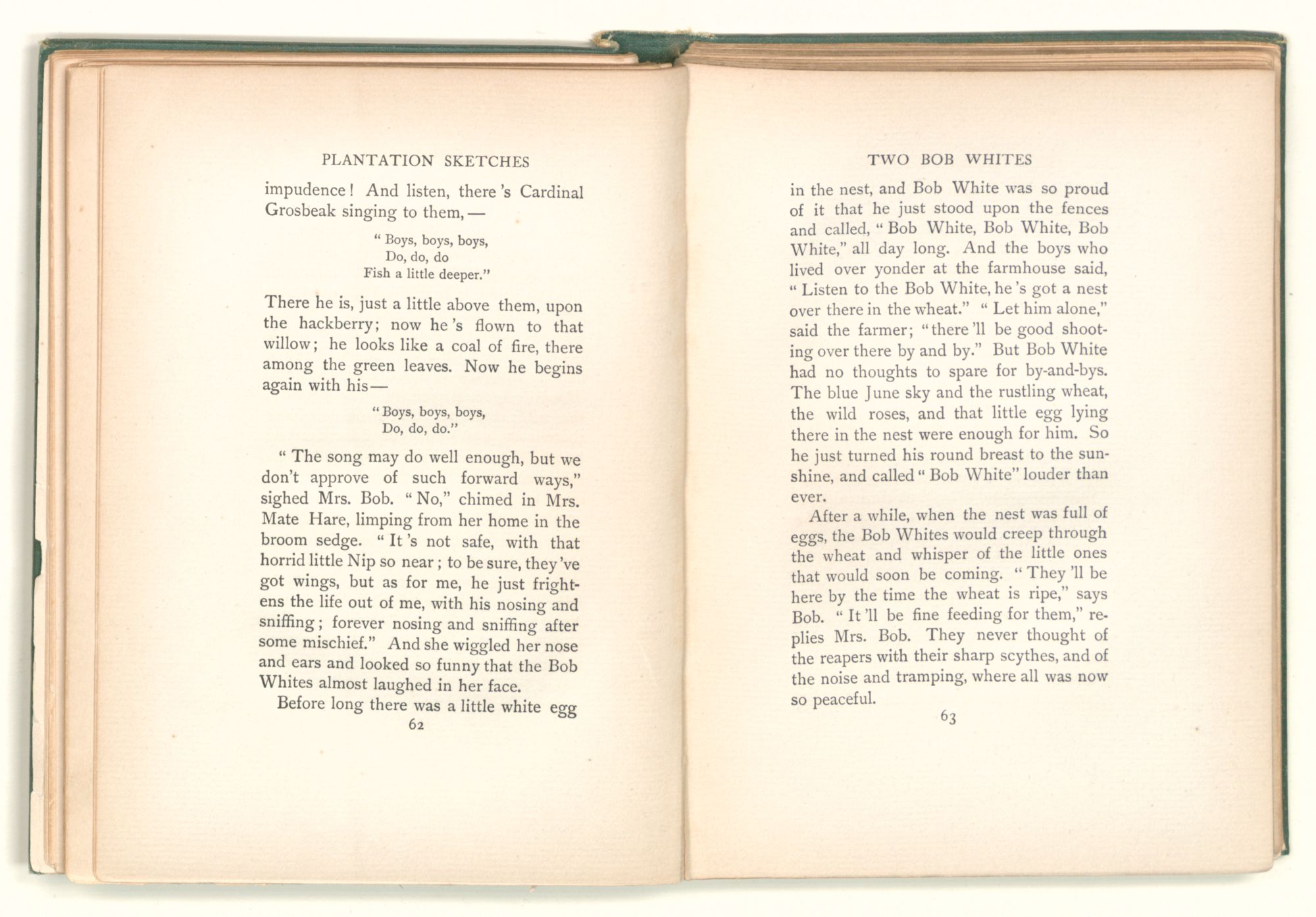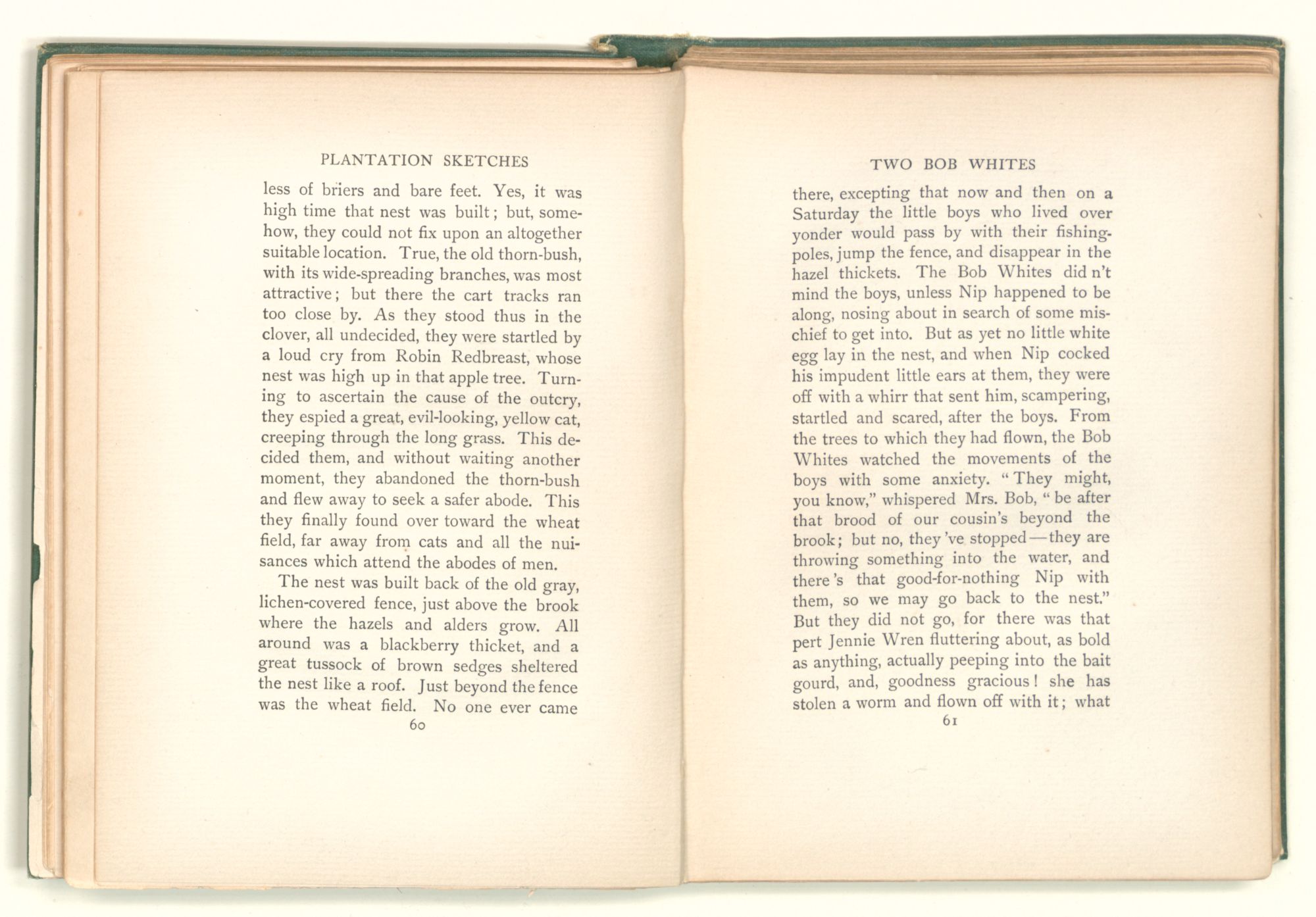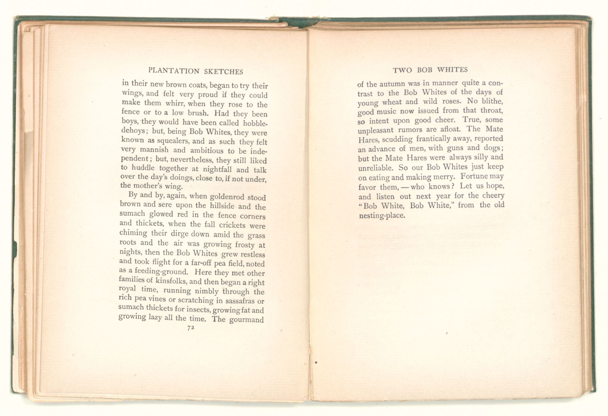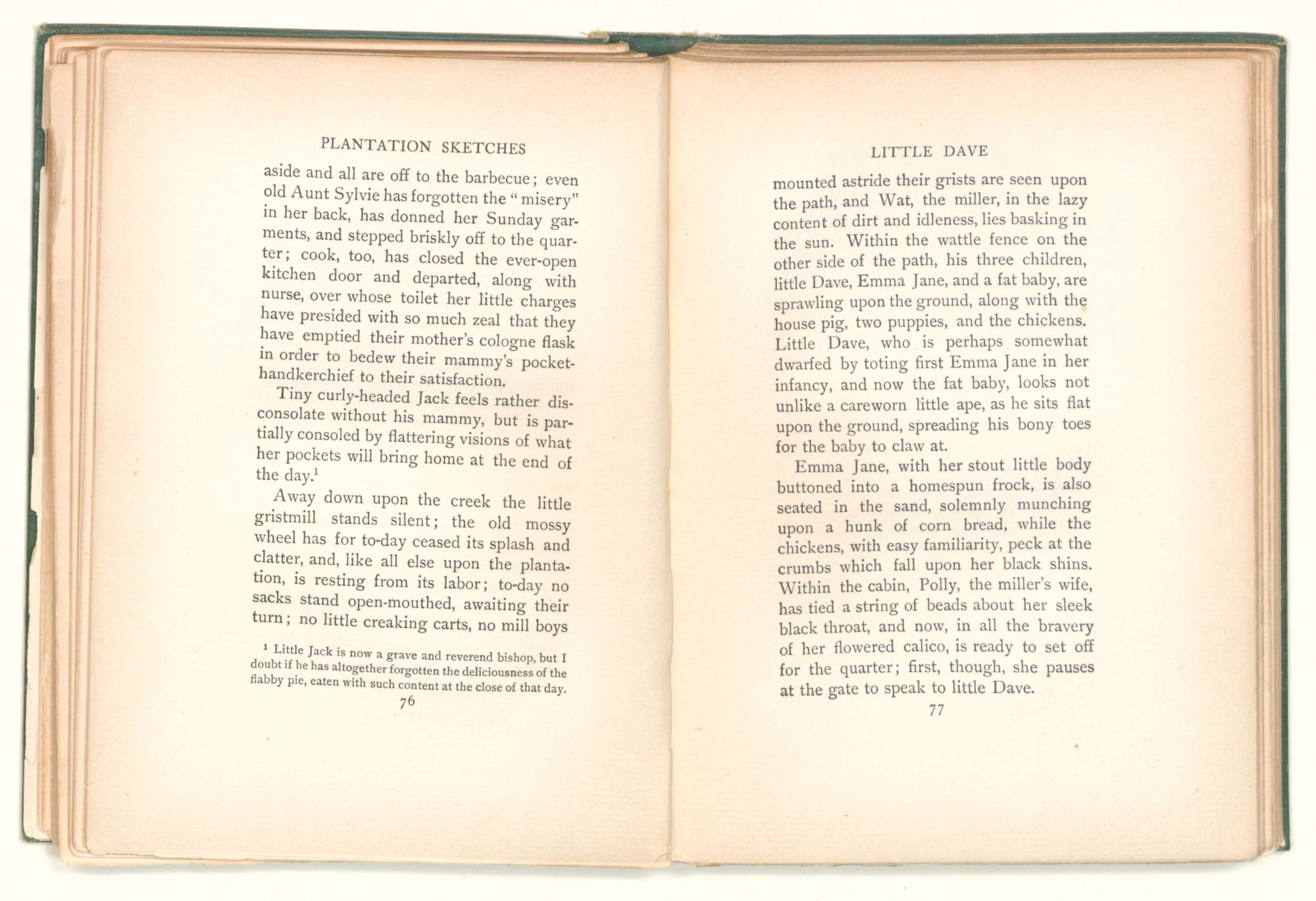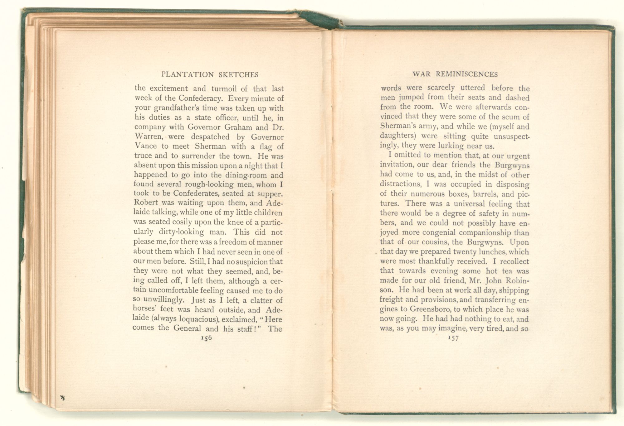 As the “New South,” with all its changes and improvements, rises above the horizon, those whose hearts still cling to the “Old South” look sadly backward and sigh to see it fade away into dimness, to be soon lost to sight and to live only in the memory of the few. Hoping to rescue from oblivion a few of the habits, thoughts, and feelings of the people who made our South what it was, I have drawn from memory a few pen sketches of plantation life, based upon actual events, in which are recorded some of the good and even noble traits of character which were brought forth under the yoke of slavery.