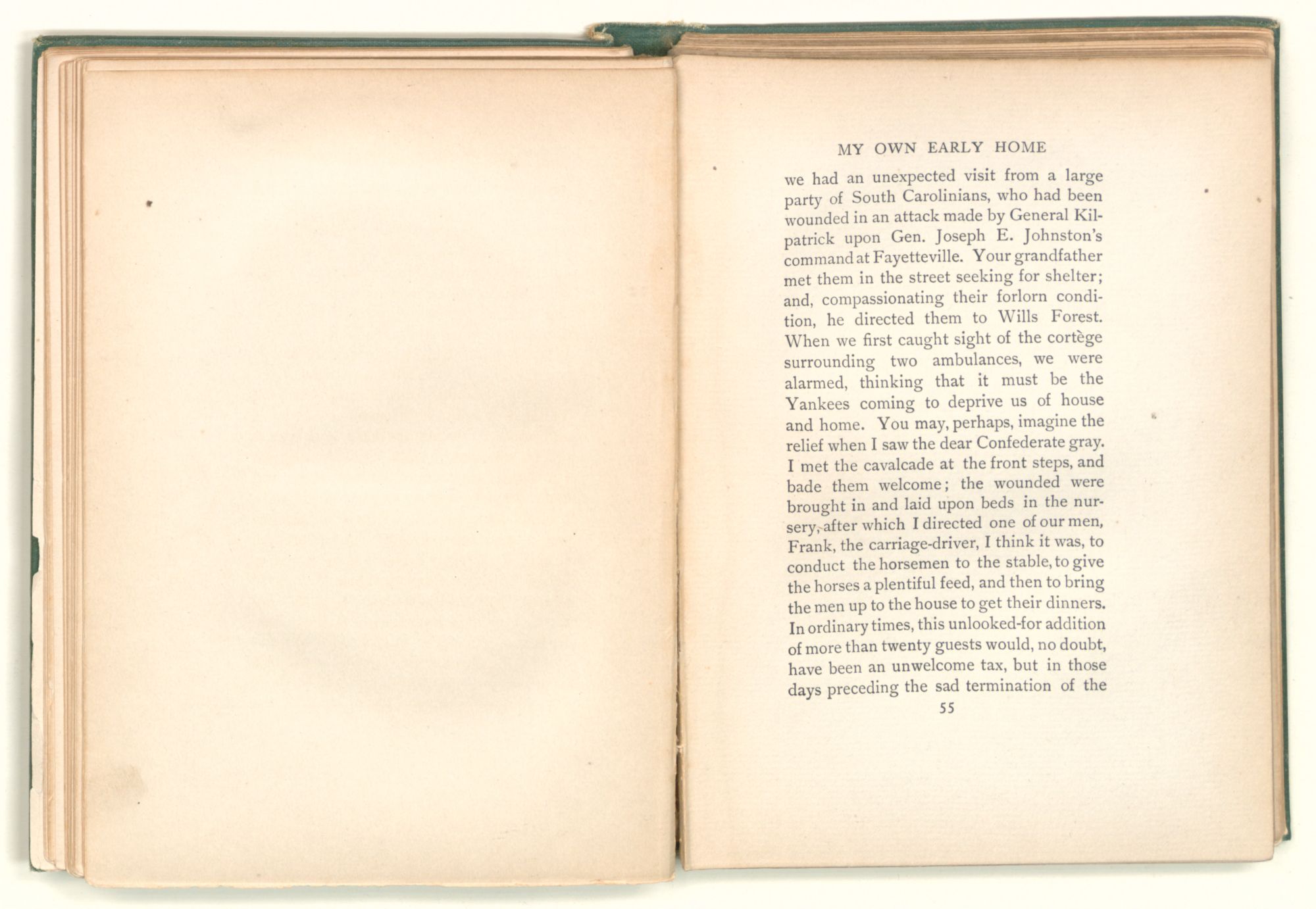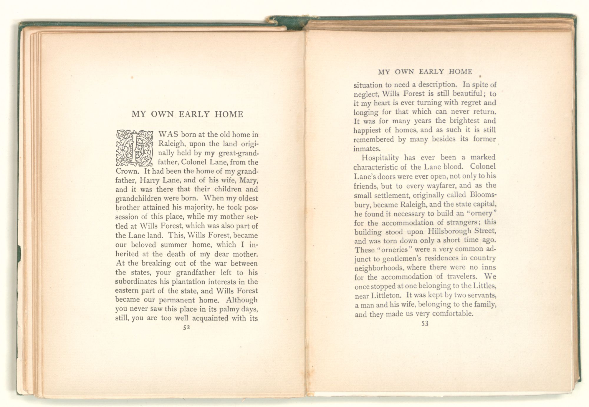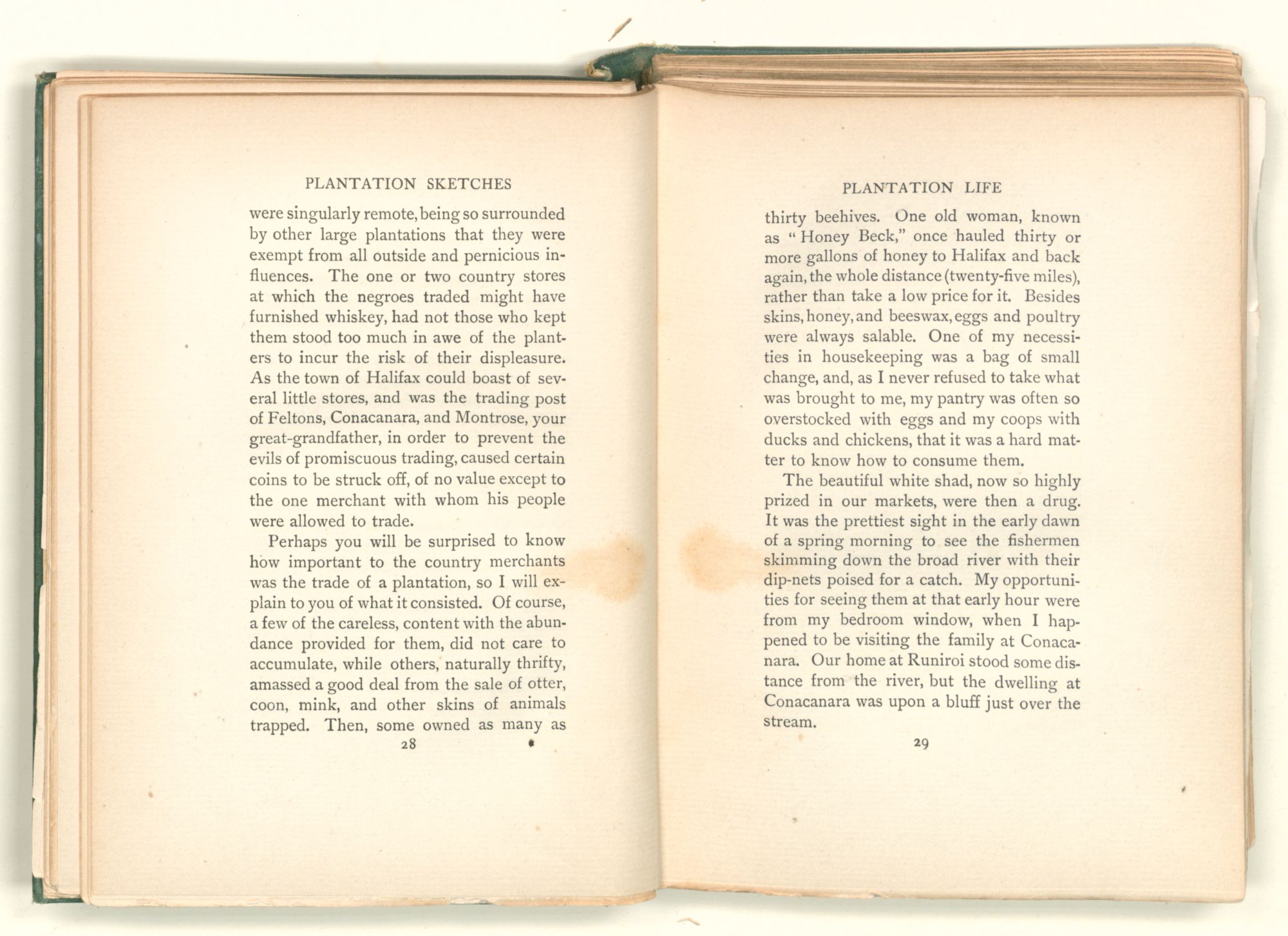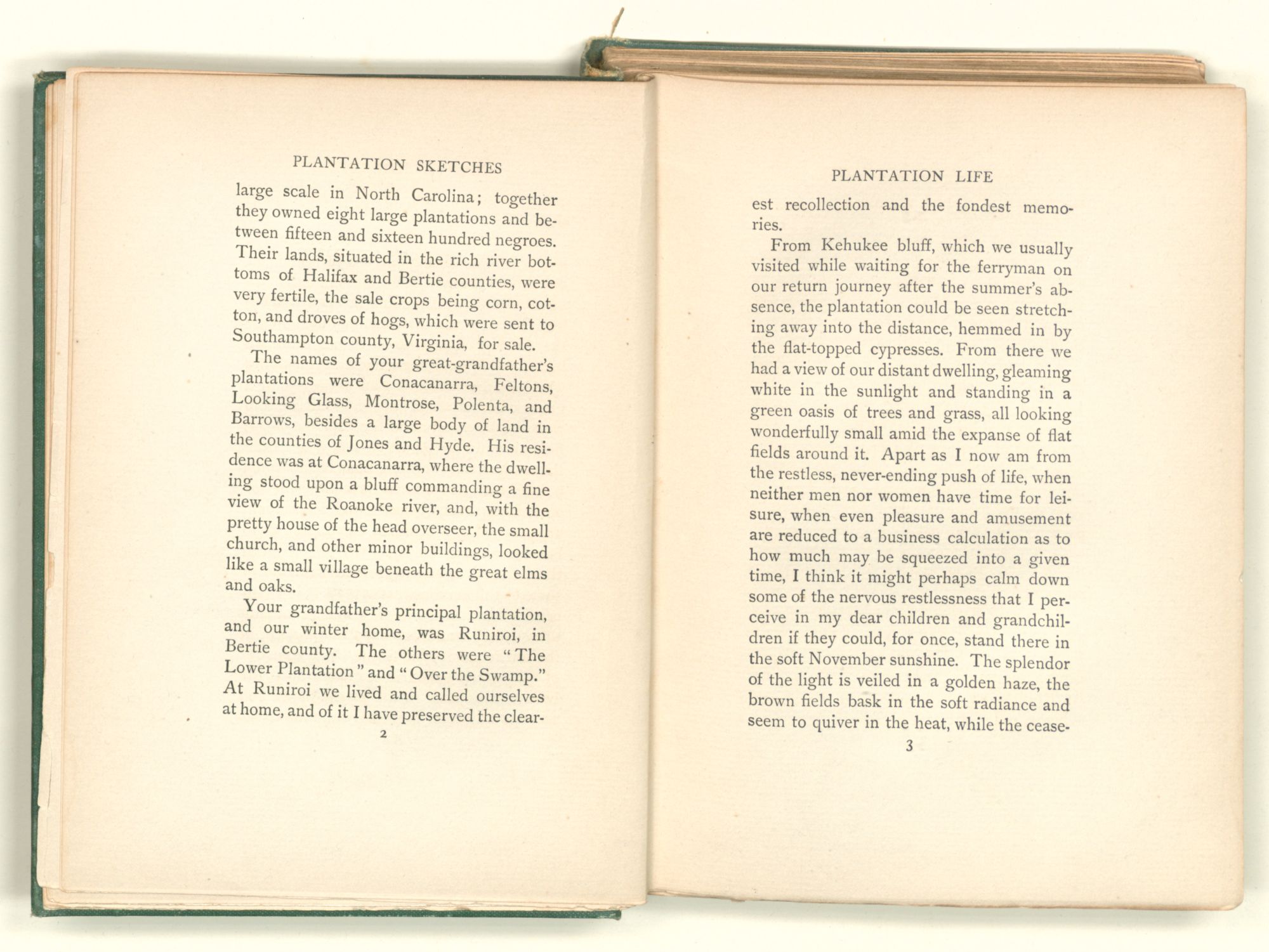 Your grandfather's principal plantation, and our winter home, was Runiroi, in Bertie county. The others were “The Lower Plantation” and “Over the Swamp.” At Runiroi we lived and called ourselves at home, and of it I have preserved the clearest