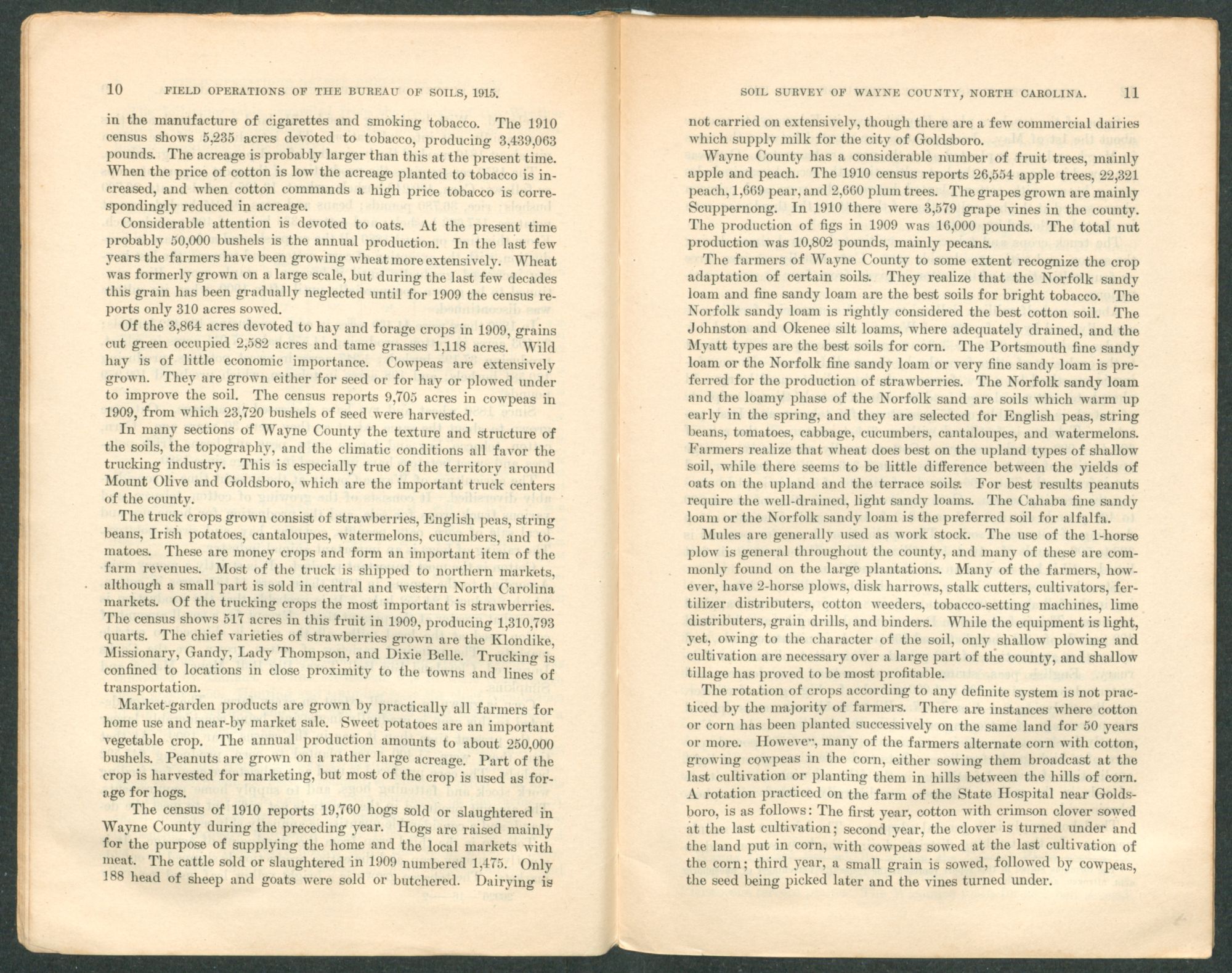 Issued August 31, 1916. U. S. DEPARTMENT OF AGRICULTURE, BUREAU OF SOILS—MILTON WHITNEY, Chief. IN COOPERATION WITH THE NORTH CAROLINA DEPARTMENT OF AGRICULTURE, W. A. GRAHAM, COMMISSIONER; B. W. KILGORE, STATE CHEMIST AND DIRECTOR OF AGRICULTURAL EXPERIMENT STATION; C. B. WILLIAMS, AGRONOMIST.SOIL SURVEY OF WAYNE COUNTY,NORTH CAROLINA.