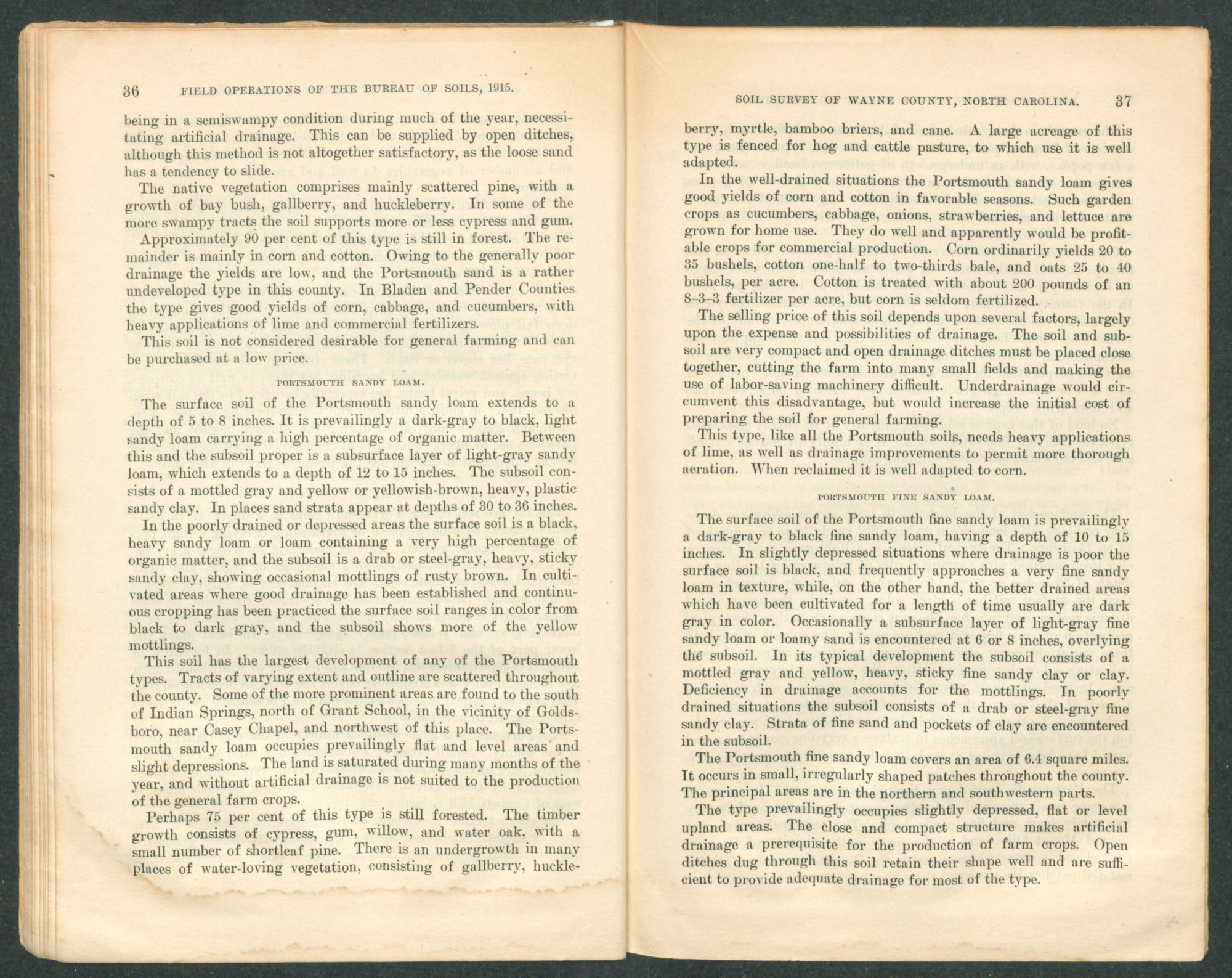 The Portsmouth loam is naturally “cold” and in an acid condition. With the installation of better drainage and aeration, deeper plowing,