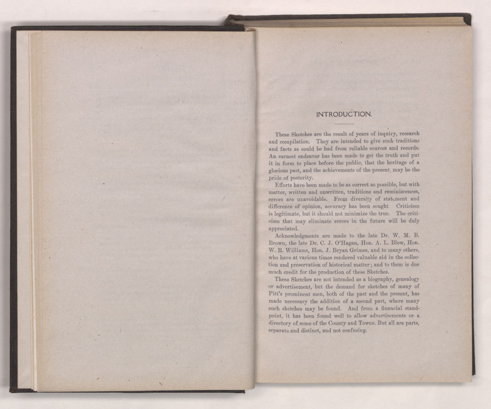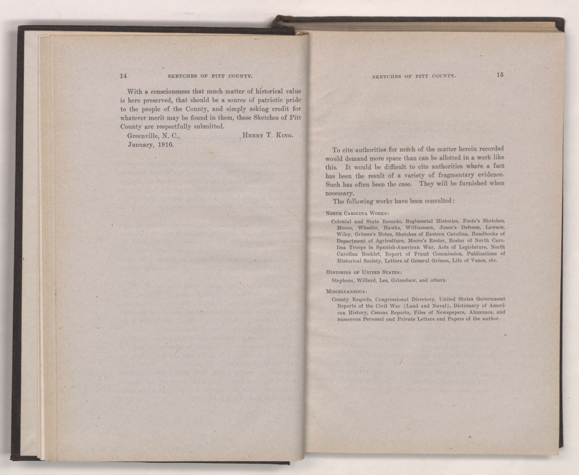 With a consciousness that much matter of historical value is here preserved, that should be a source of patriotic pride to the people of the County, and simply asking credit for whatever merit may be found in them, these Sketches of Pitt County are respectfully submitted.