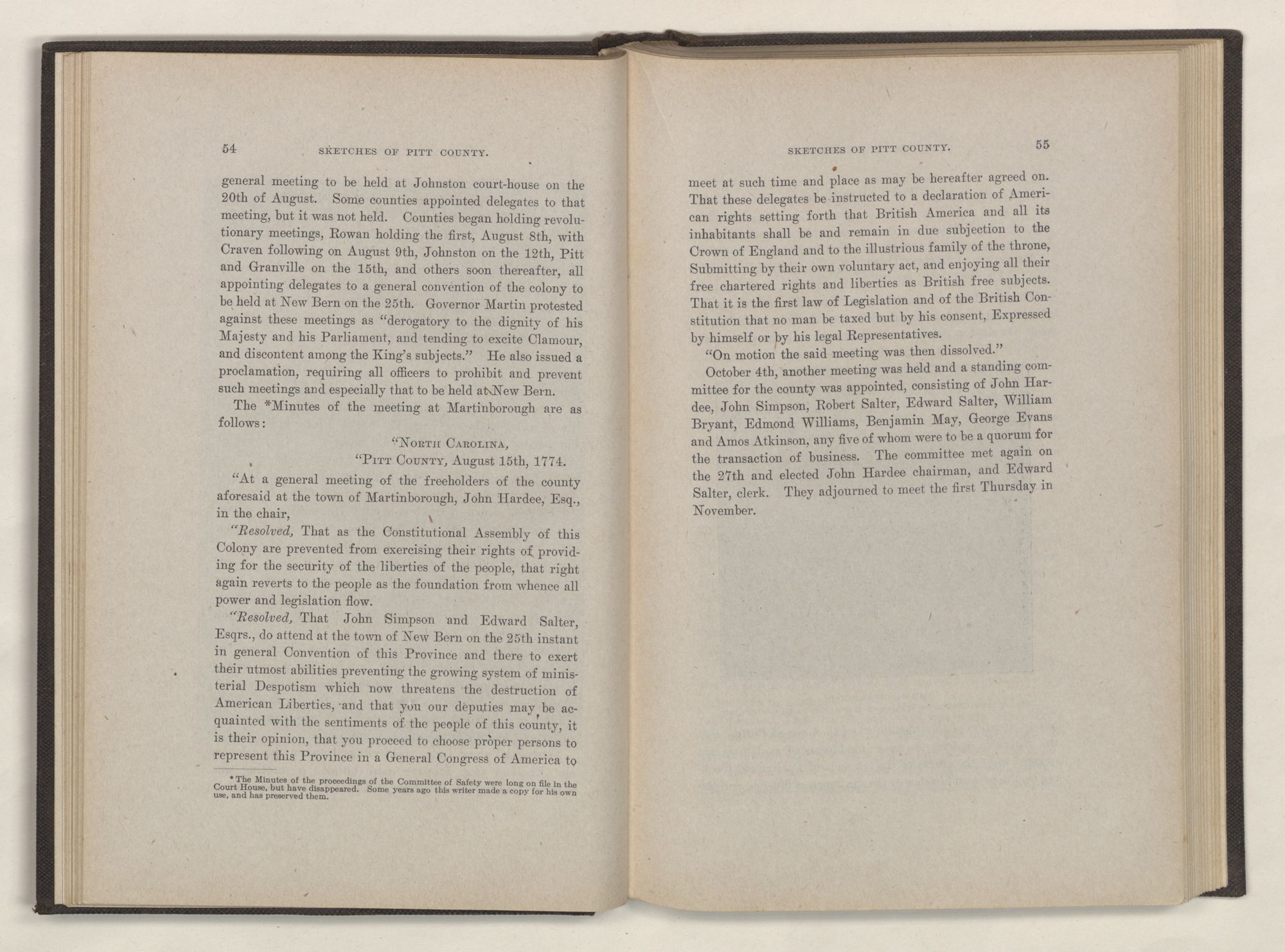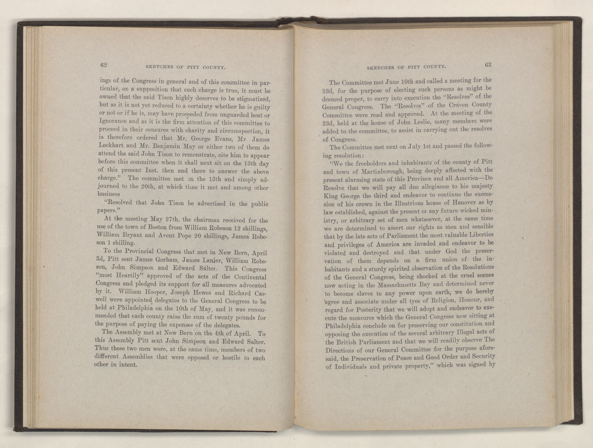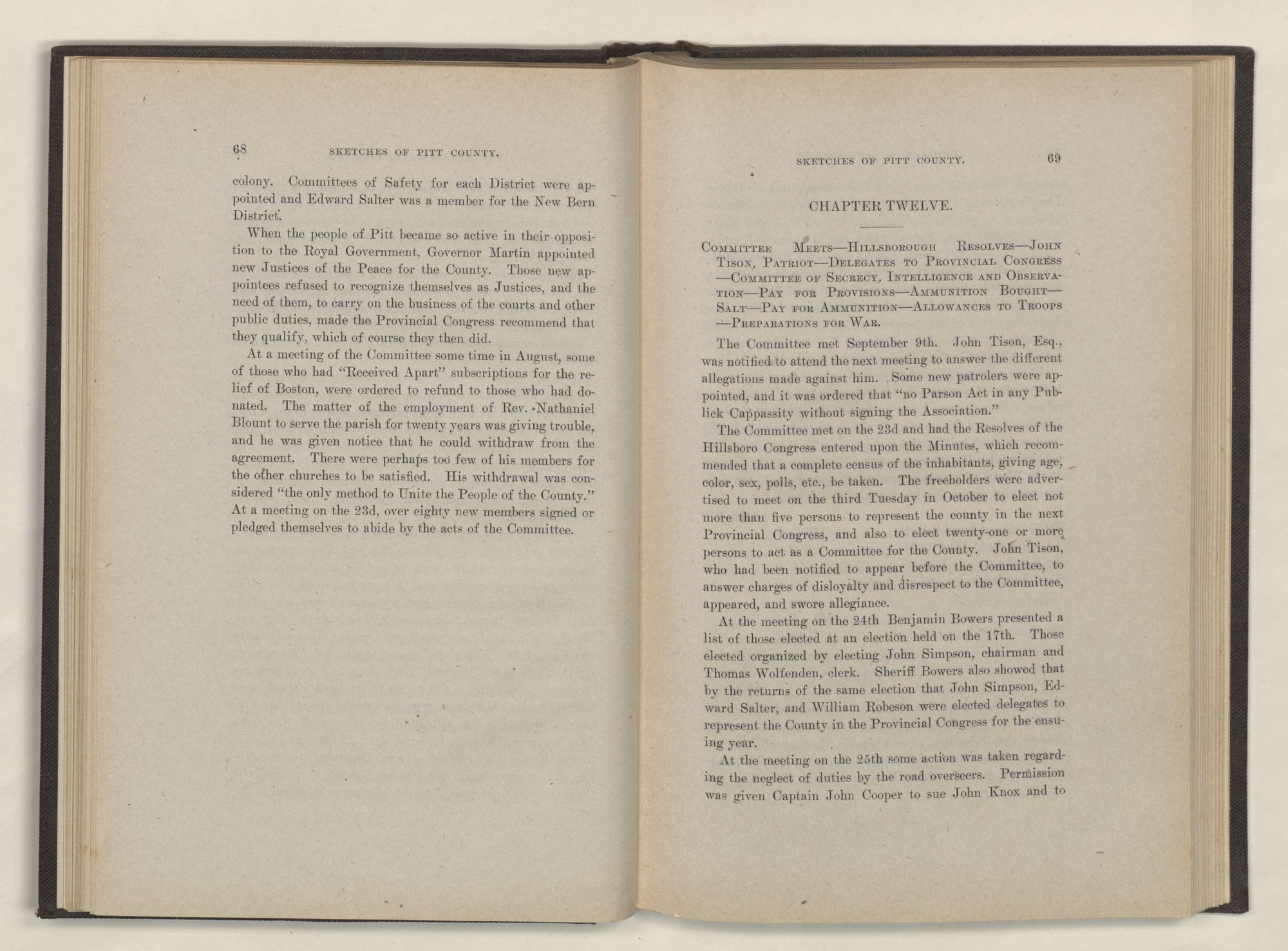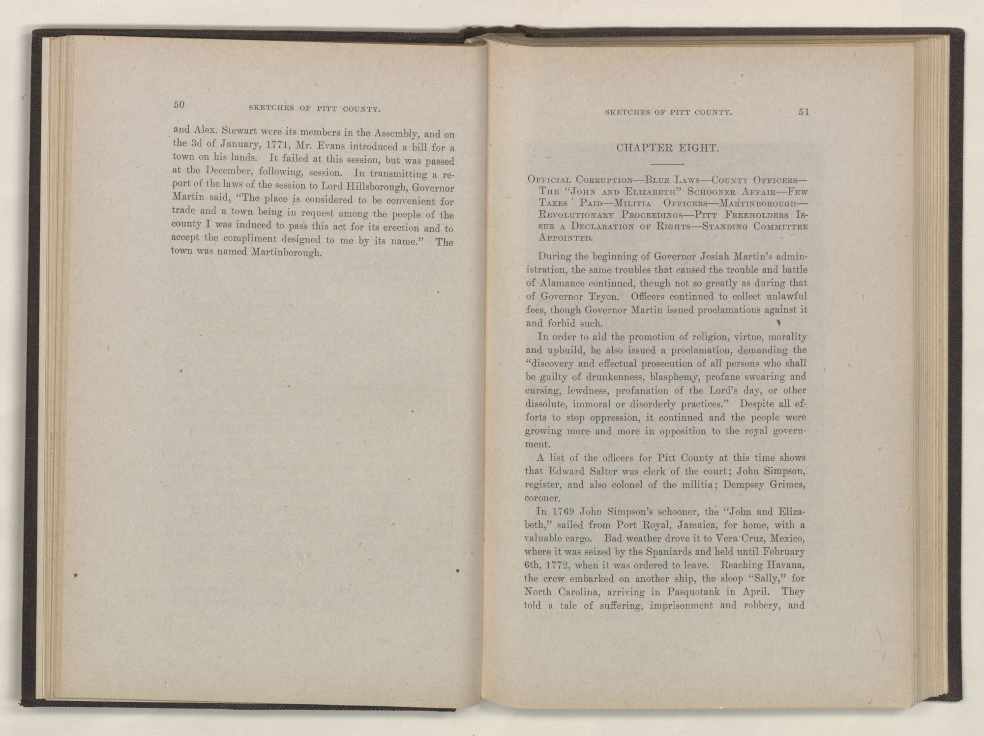 | CHAPTER EIGHT. Official Corruption—Blue Laws—County Officers—The “John and Elizabeth” Schooner Affair—Few Taxes Paid—Militia Officers—Martinborough—Revolutionary Proceedings—Pitt Freeholders Issue a Declaration of Rights—Standing Committee Appointed, | 51 |