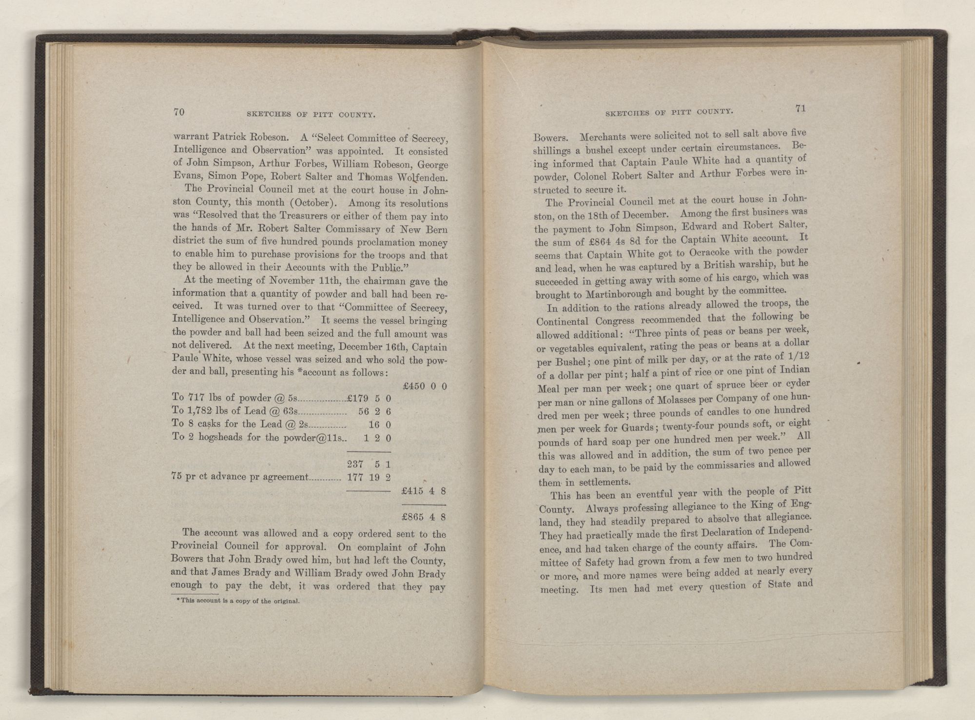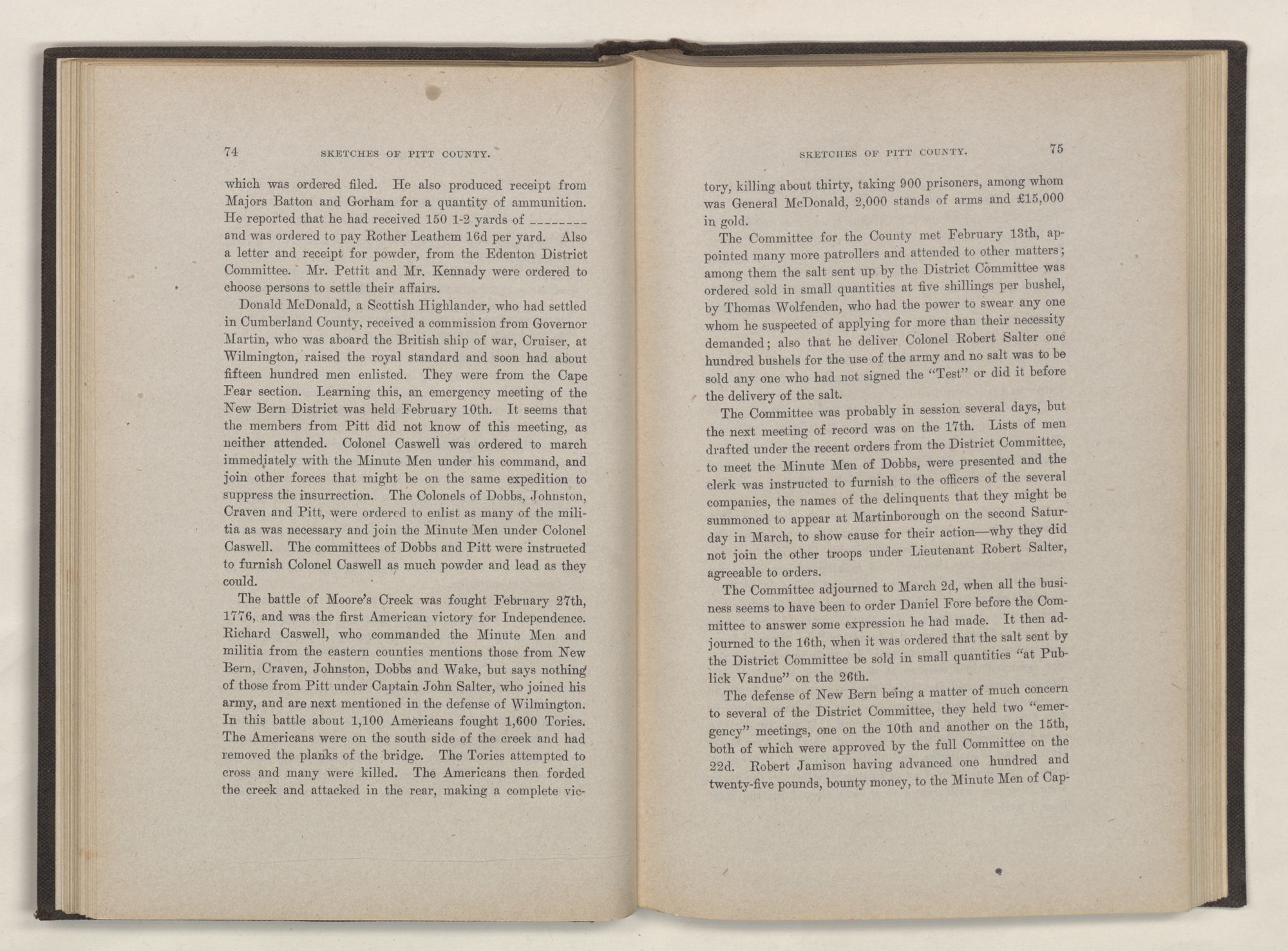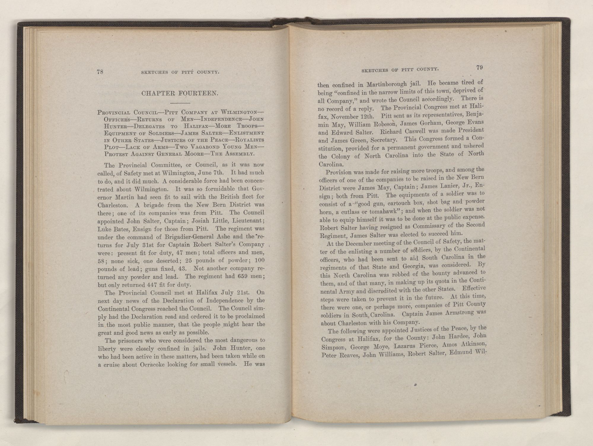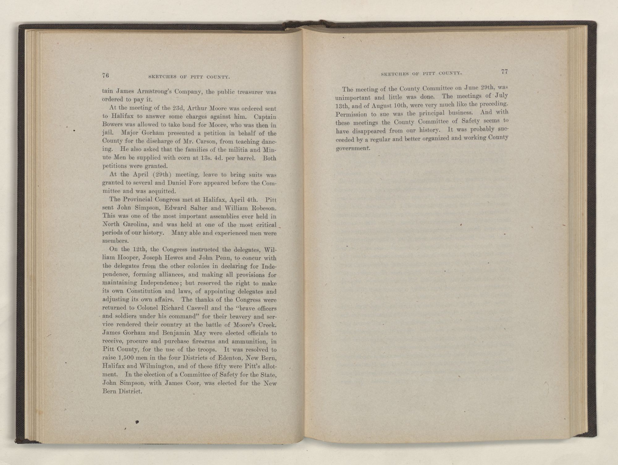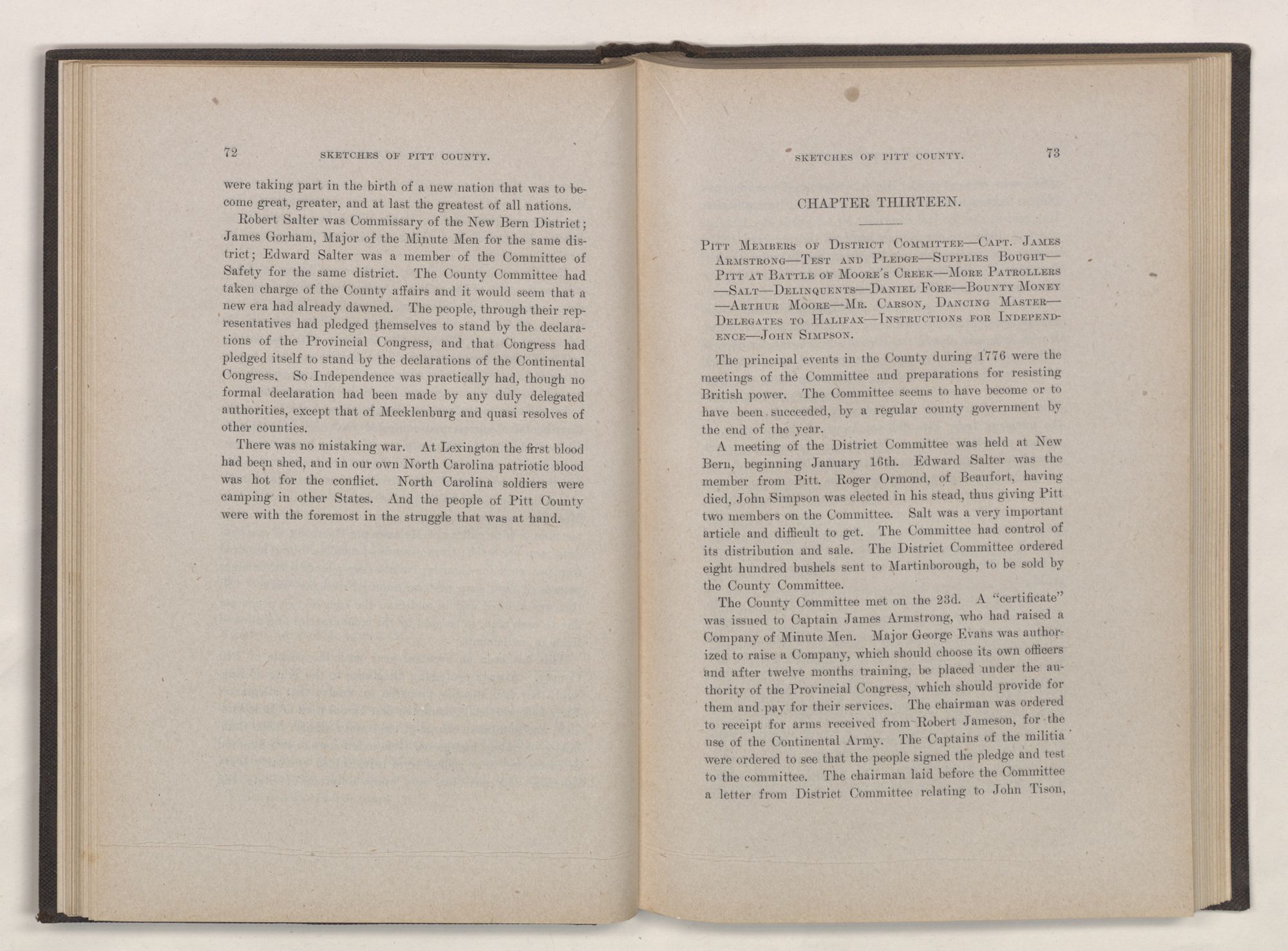 | CHAPTER THIRTEEN. Pitt Members of District Committee—Capt. James Armstrong—Test and Pledge—Supplies Bought—Pitt at Battle of Moore's Creek—More Patrollers—Salt—Delinquents—Daniel Fore—Bounty Money—Arthur Moore—Mr. Carson, Dancing Master—Delegates to Halifax—Instructions for Independence—John Simpson | 73 |