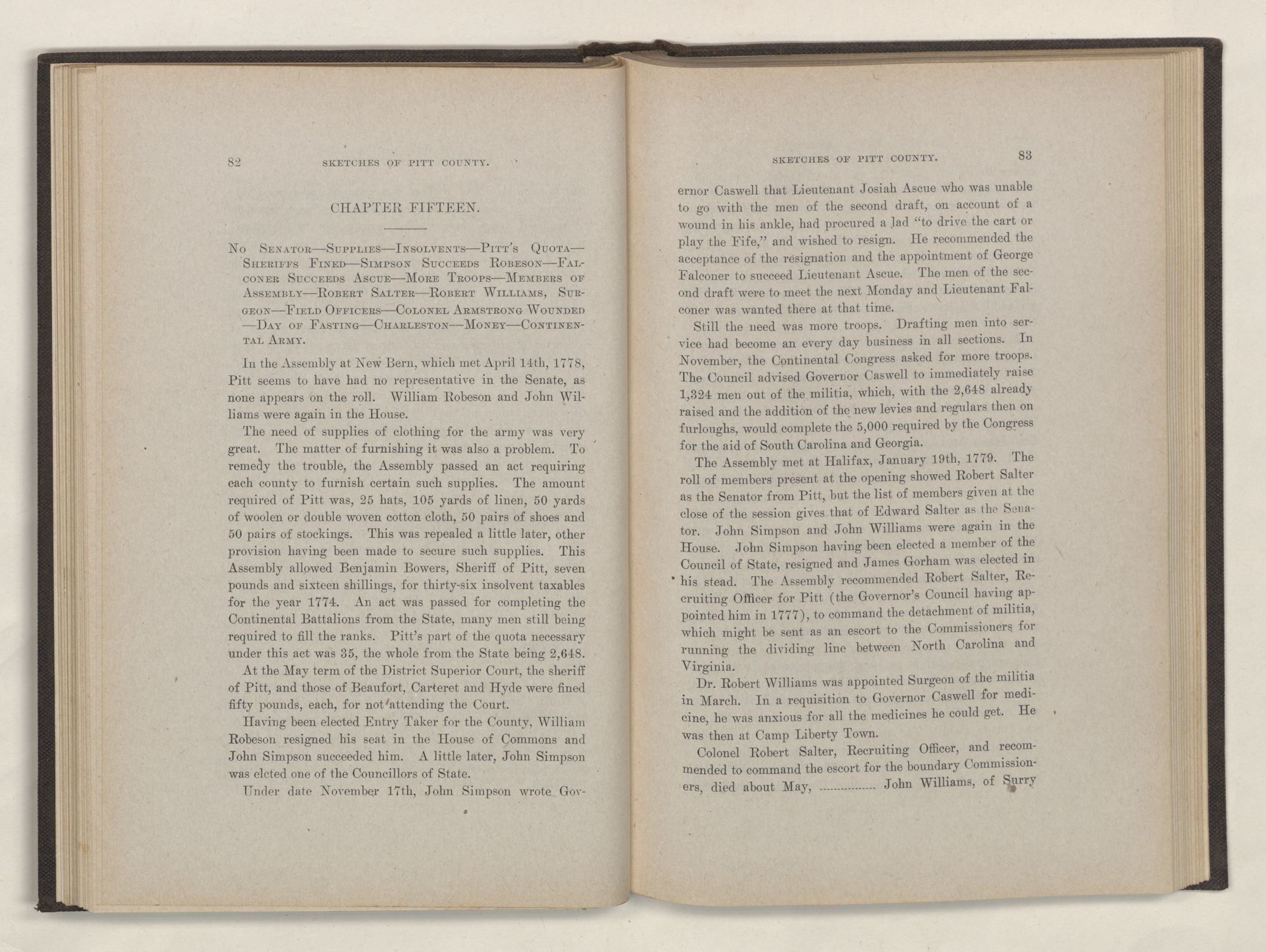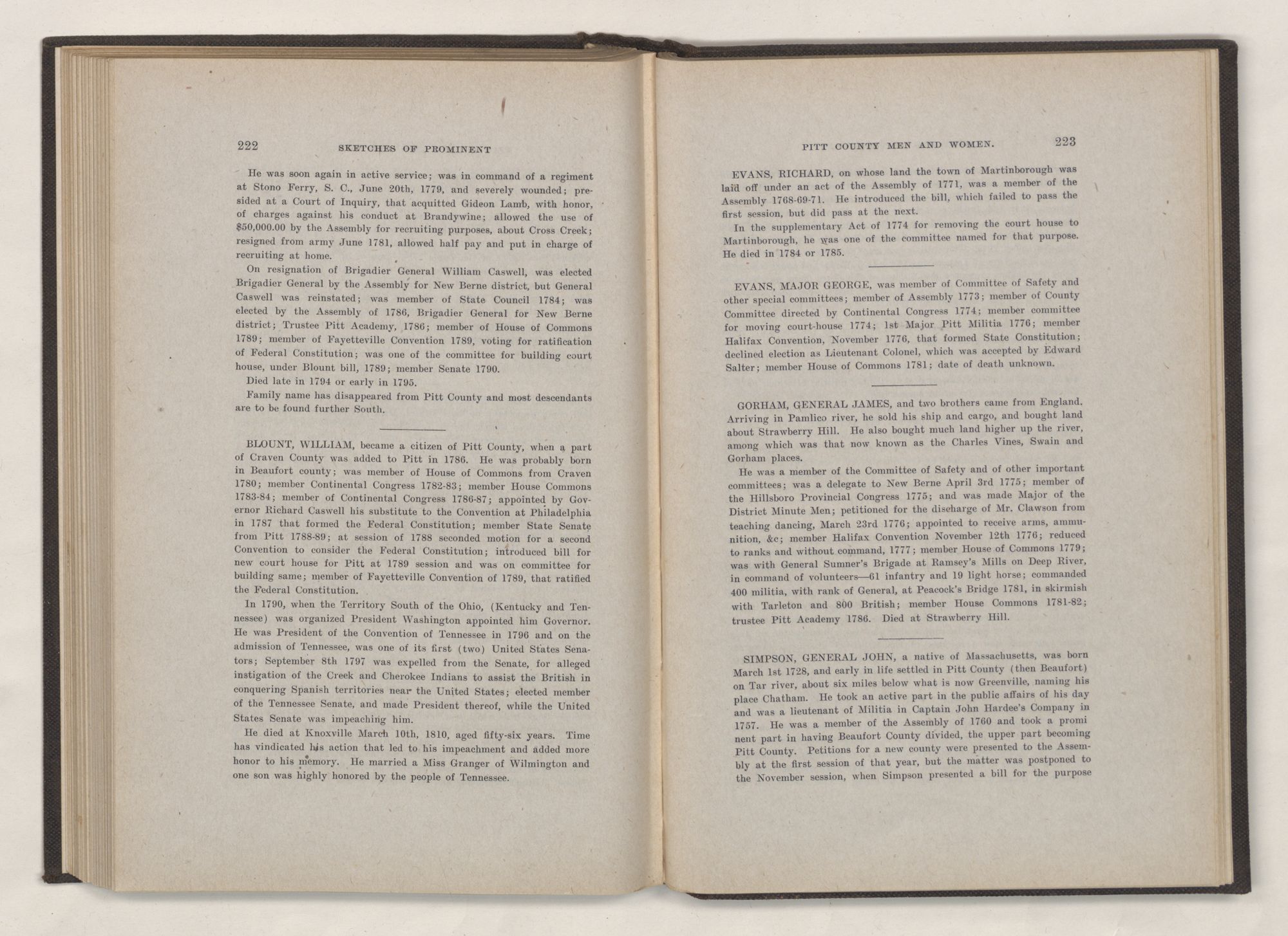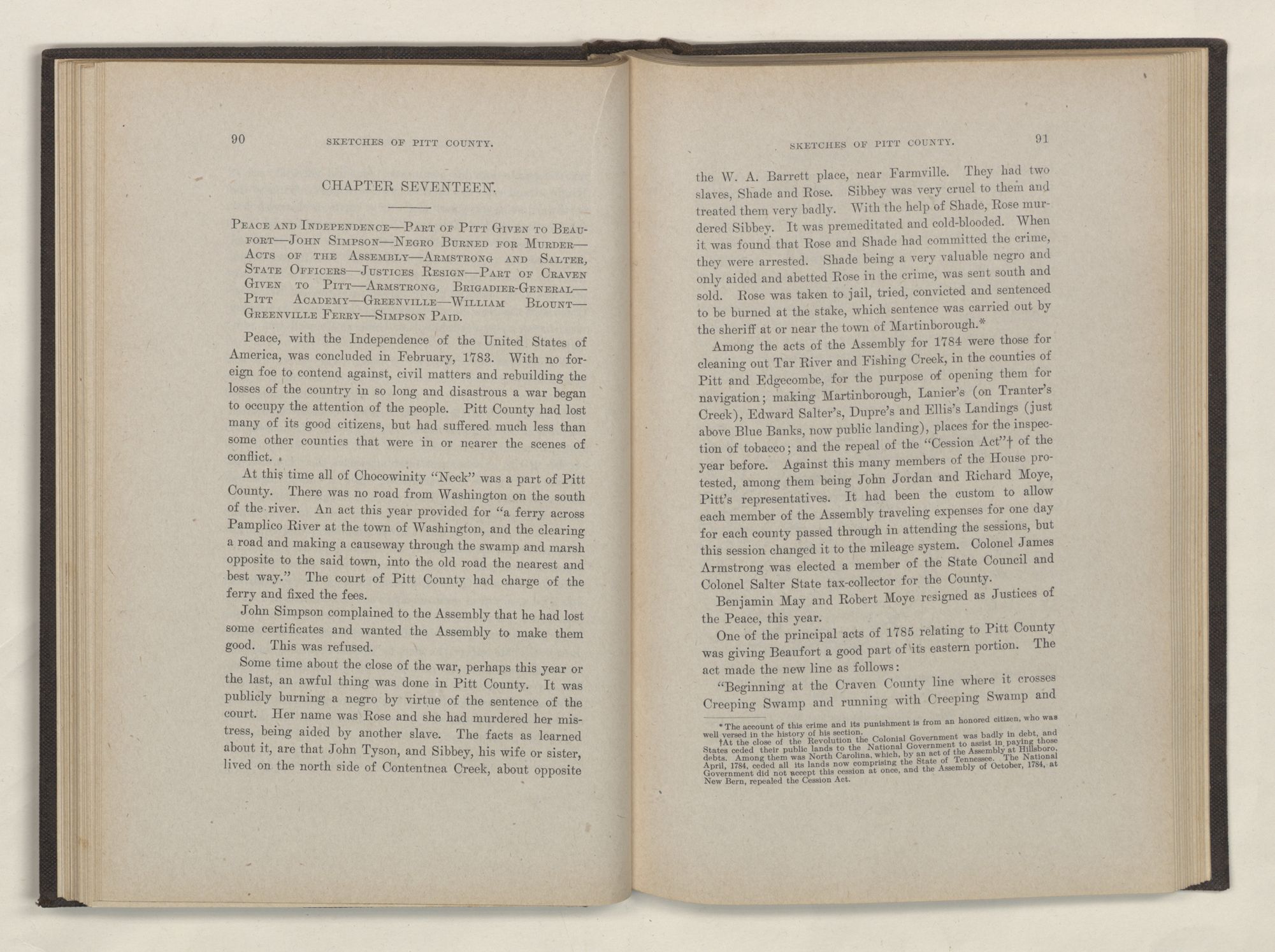 | CHAPTER SEVENTEEN. Peace and Independence—Part of Pitt Given to Beaufort—John Simpson—Negro Burned for Murder—Acts of the Assembly—Armstrong and Salter, State Officers—Justices Resign—Part of Craven Given to Pitt—Armstrong, Brigadier-General—Pitt Academy—Greenville — William Blount — Greenville Ferry—Simpson Paid | 90 |