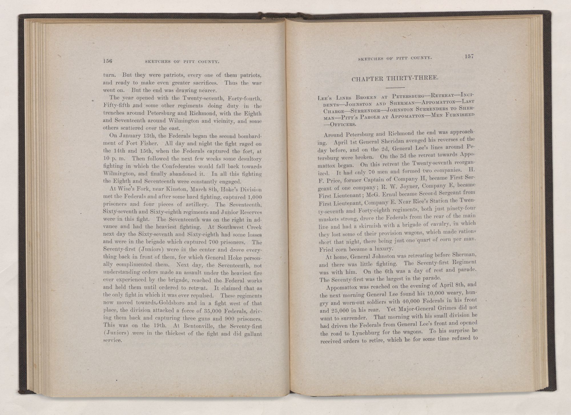 | CHAPTER THIRTY-THREE. Lee's Lines Broken at Petersburg—Retreat—Incidents—Johnston and Sherman—Appomattox—Last Charge—Surrender—Johnston Surrenders to Sherman—Pitt's Parole at Appomattox—Men Furnished—Officers | 157 |