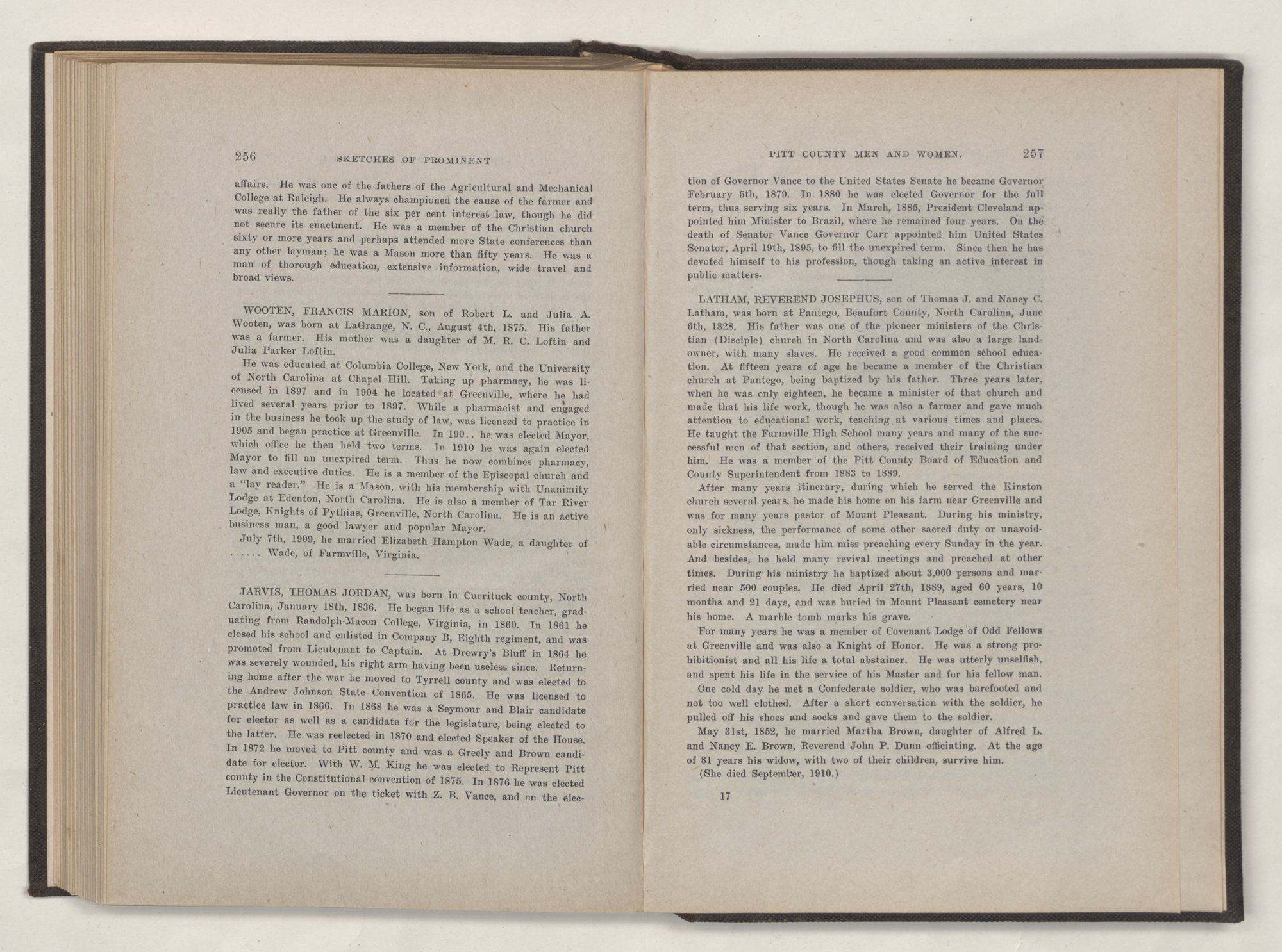 These Sketches are not intended as a biography, genealogy or advertisement, but the demand for sketches of many of Pitt's prominent men, both of the past and the present, has made necessary the addition of a second part, where many such sketches may be found. And from a financial standpoint, it has been found well to allow advertisements or a directory of some of the County and Towns. But all are parts, separate and distinct, and not confusing.
