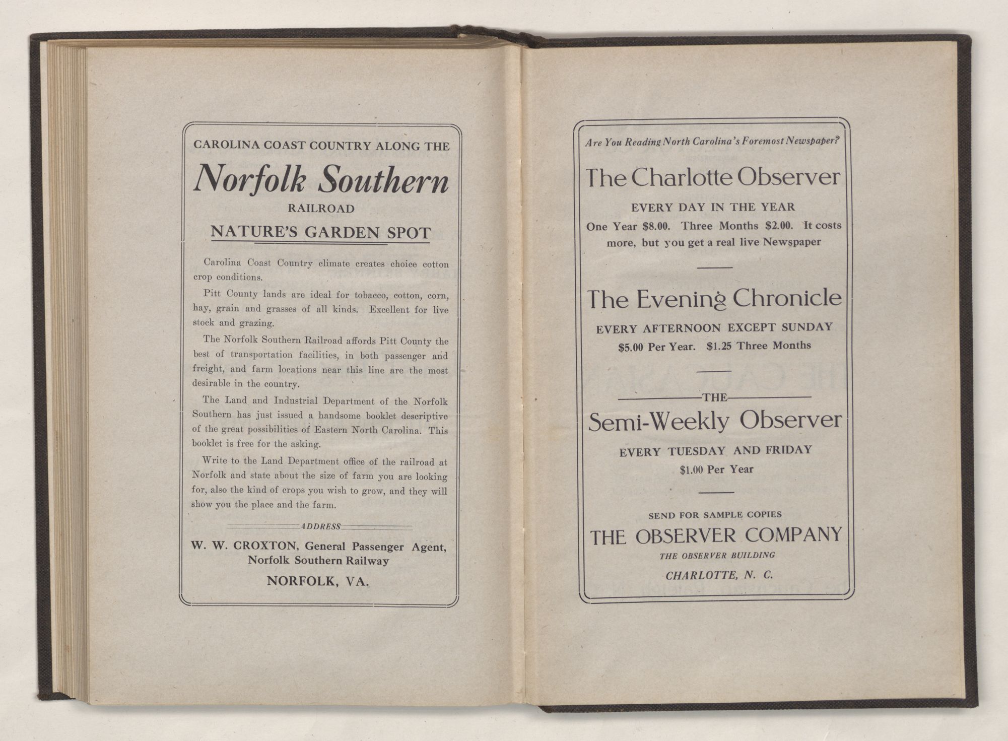 The Norfolk Southern Railroad affords Pitt County the best of transportation facilities, in both passenger and freight, and farm locations near this line are the most desirable in the country.