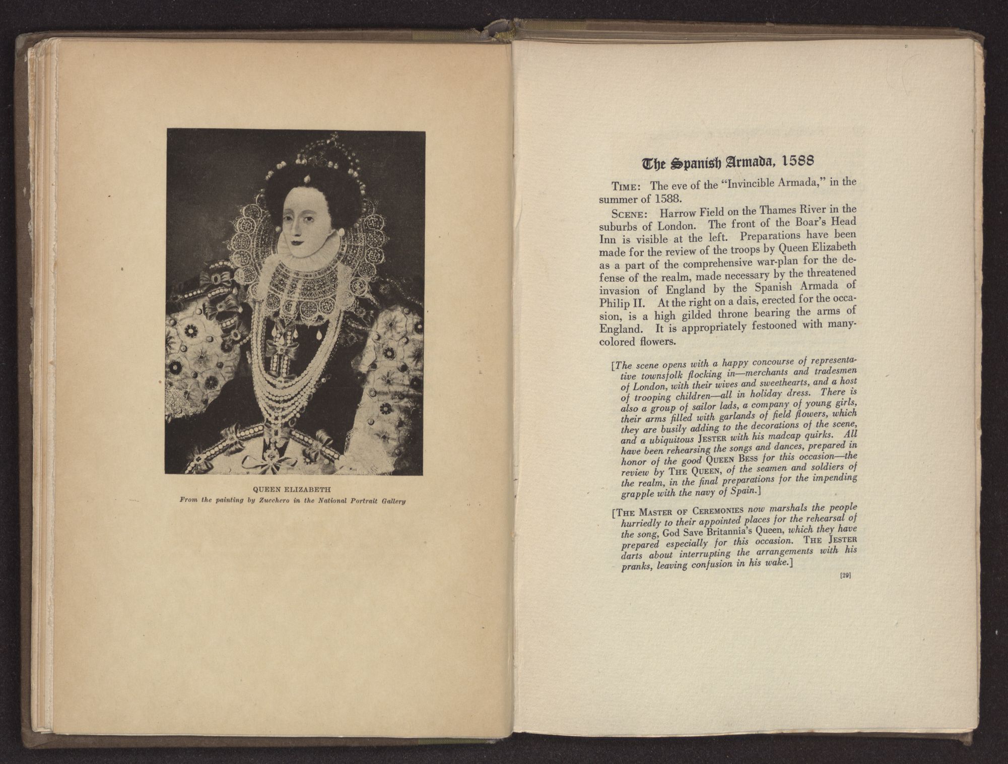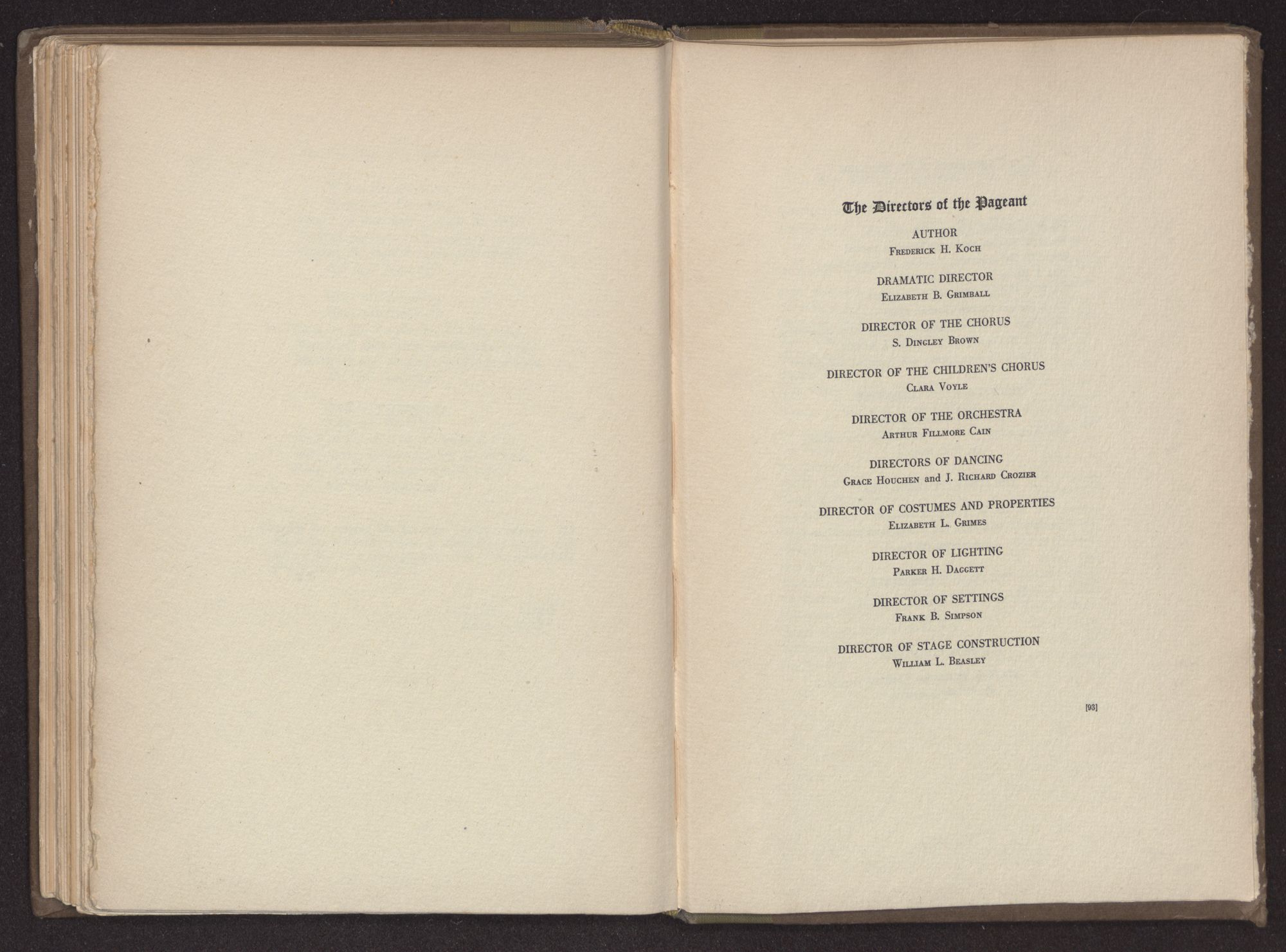 In the preparation of the text of the play I am deeply indebted to two of my former co-workers in community drama: to Dr. Orin Grant Libby, Professor of History in the University of North Dakota, for necessary historical data and for his inspiration in interpreting them; and to Margaret Plank Ganssle, one of the group of writers of our first Dakota communal drama, A Pageant of the North-West, in 1914, for her important collaboration in the lyrics. I beg, also, to acknowledge my indebtedness for the song, God Save Britannia's Queen, to the Shakespeare Tercentenary Masque, Shakespeare, The Playmaker, written likewise in collaboration under my direction by a group of twenty members of The Dakota Playmakers in 1916, and published originally in the Quarterly Journal of the University of North Dakota.