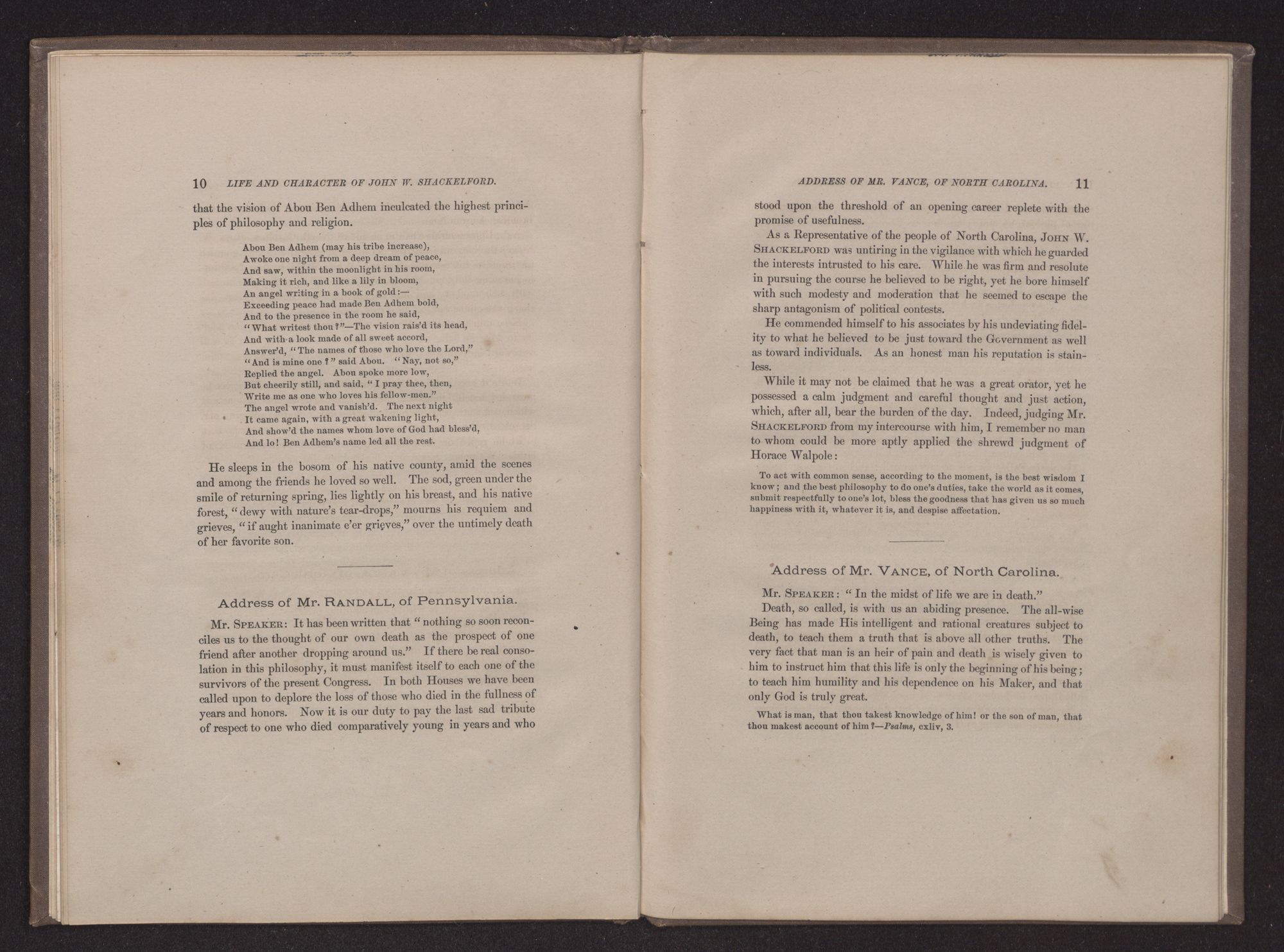 Address of Mr. VANCE, of North Carolina.Mr. SPEAKER: “In the midst of life we are in death.”
