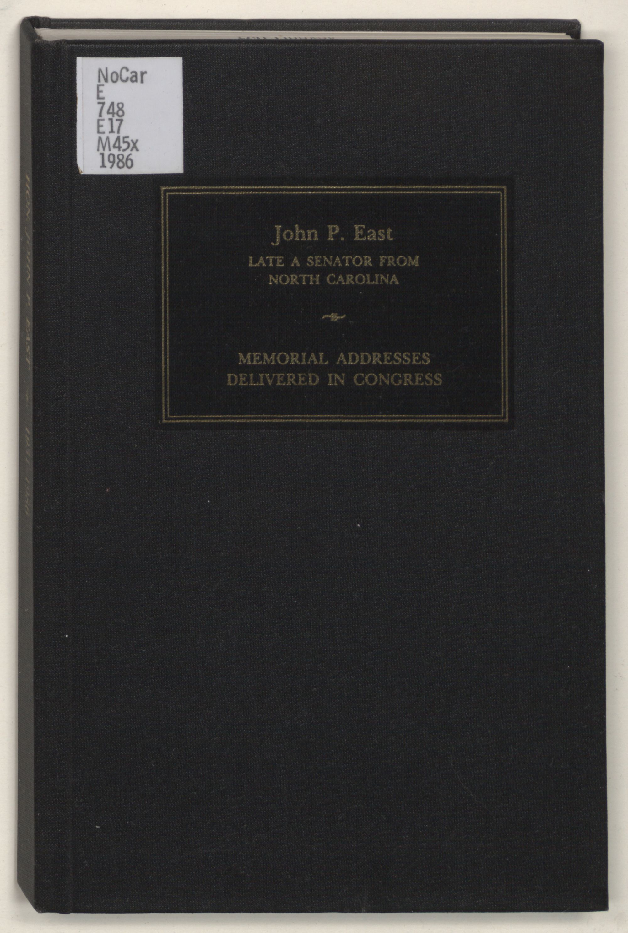 John P. EastLate A Senator From North Carolina Memorial Addresses Delivered In Congress