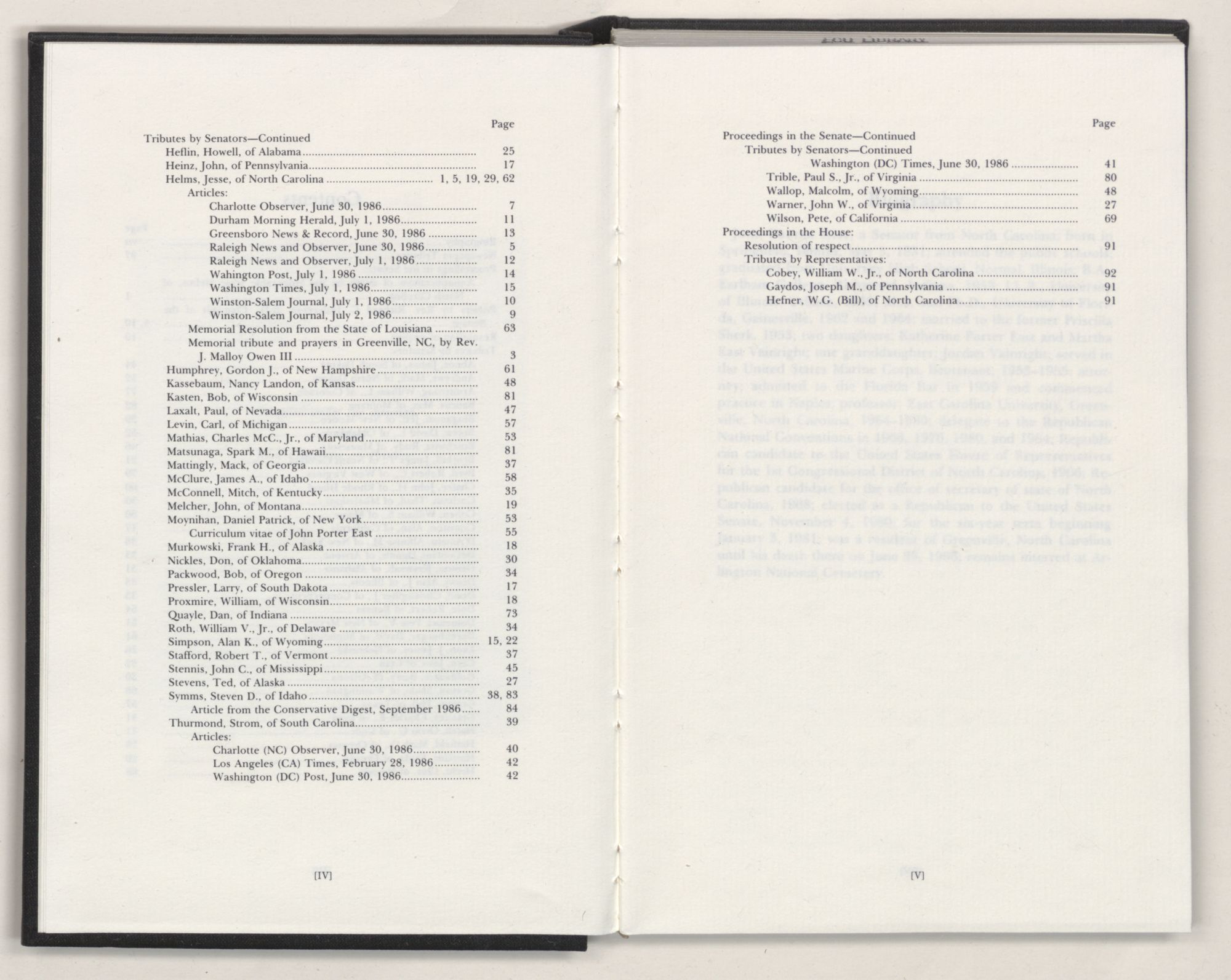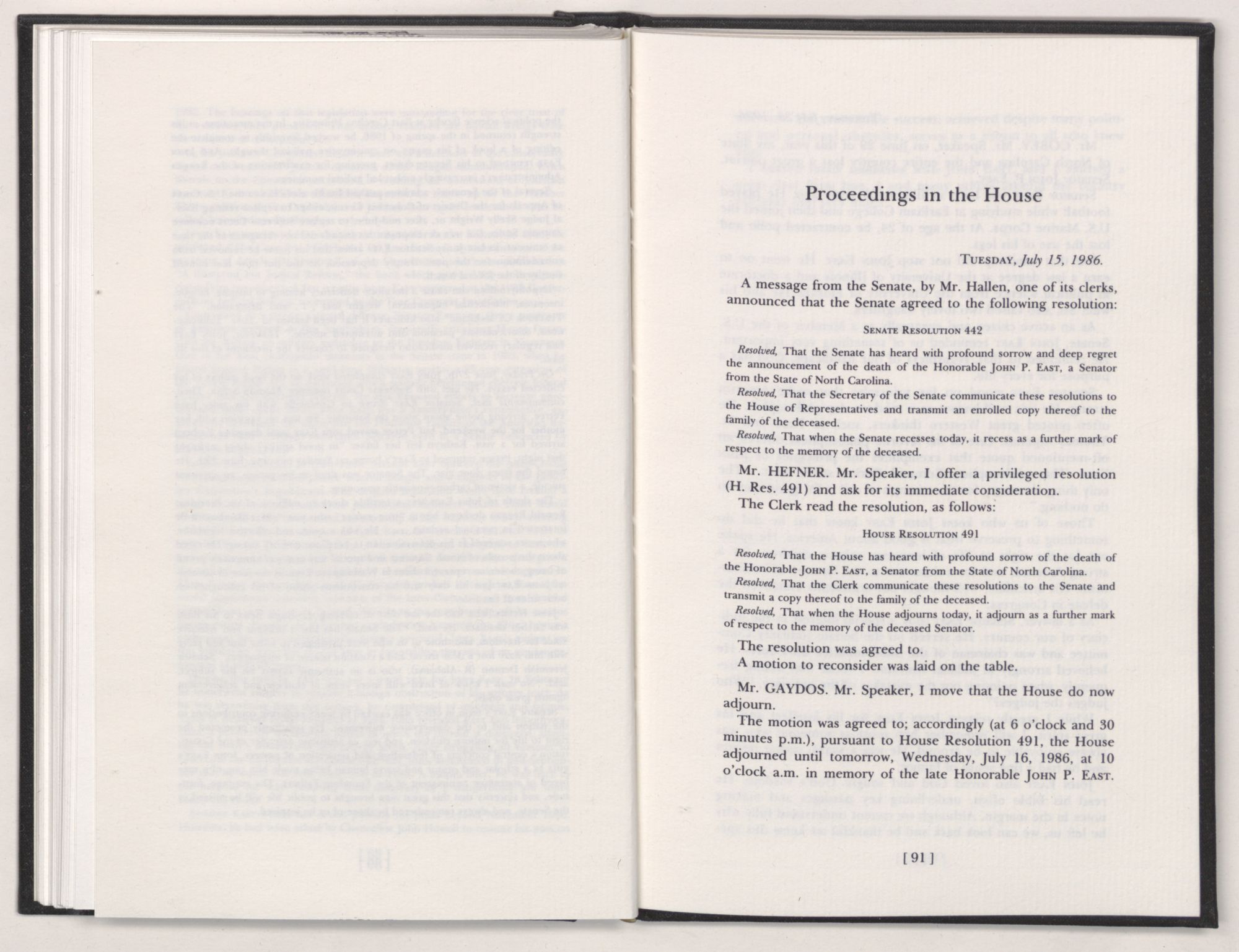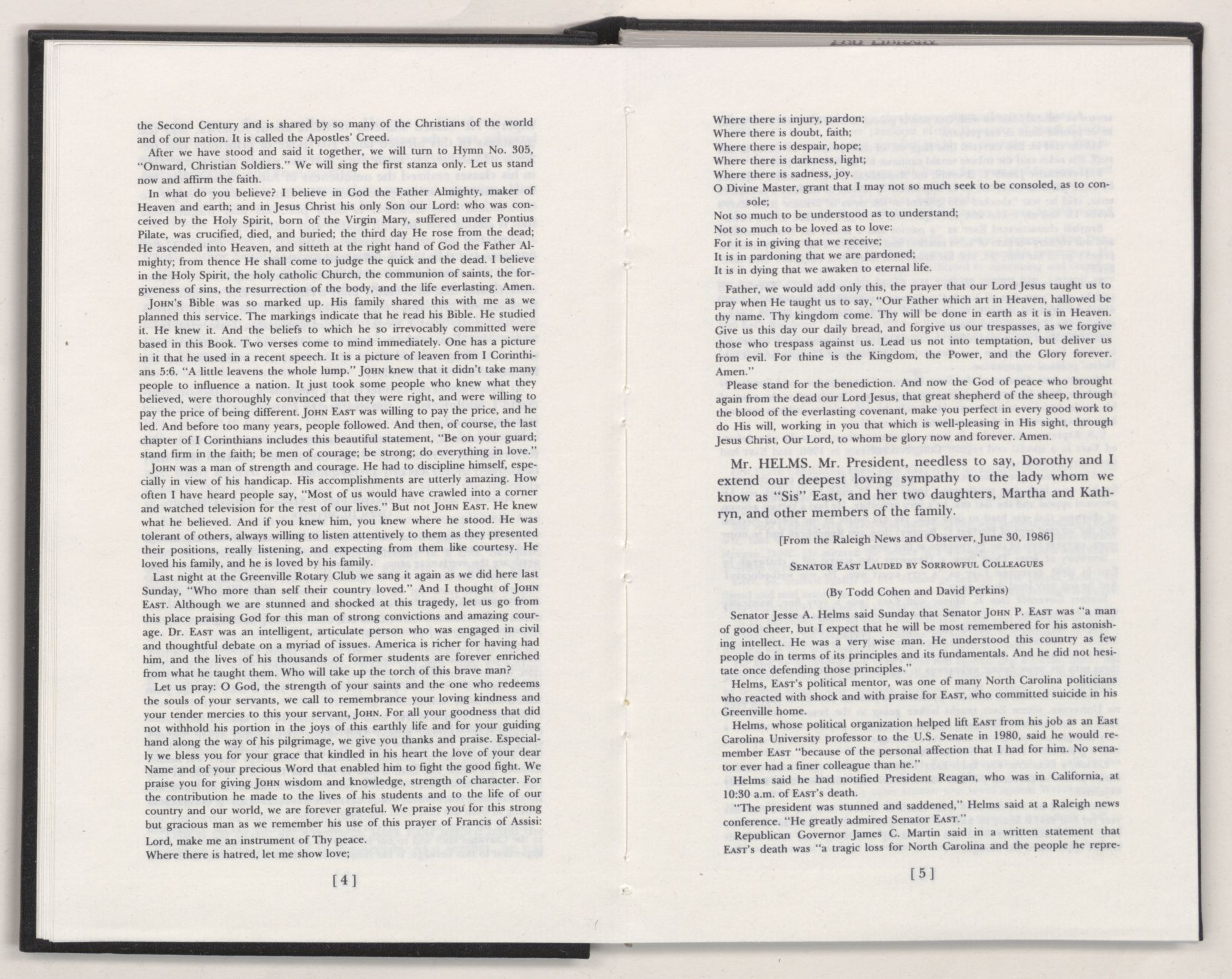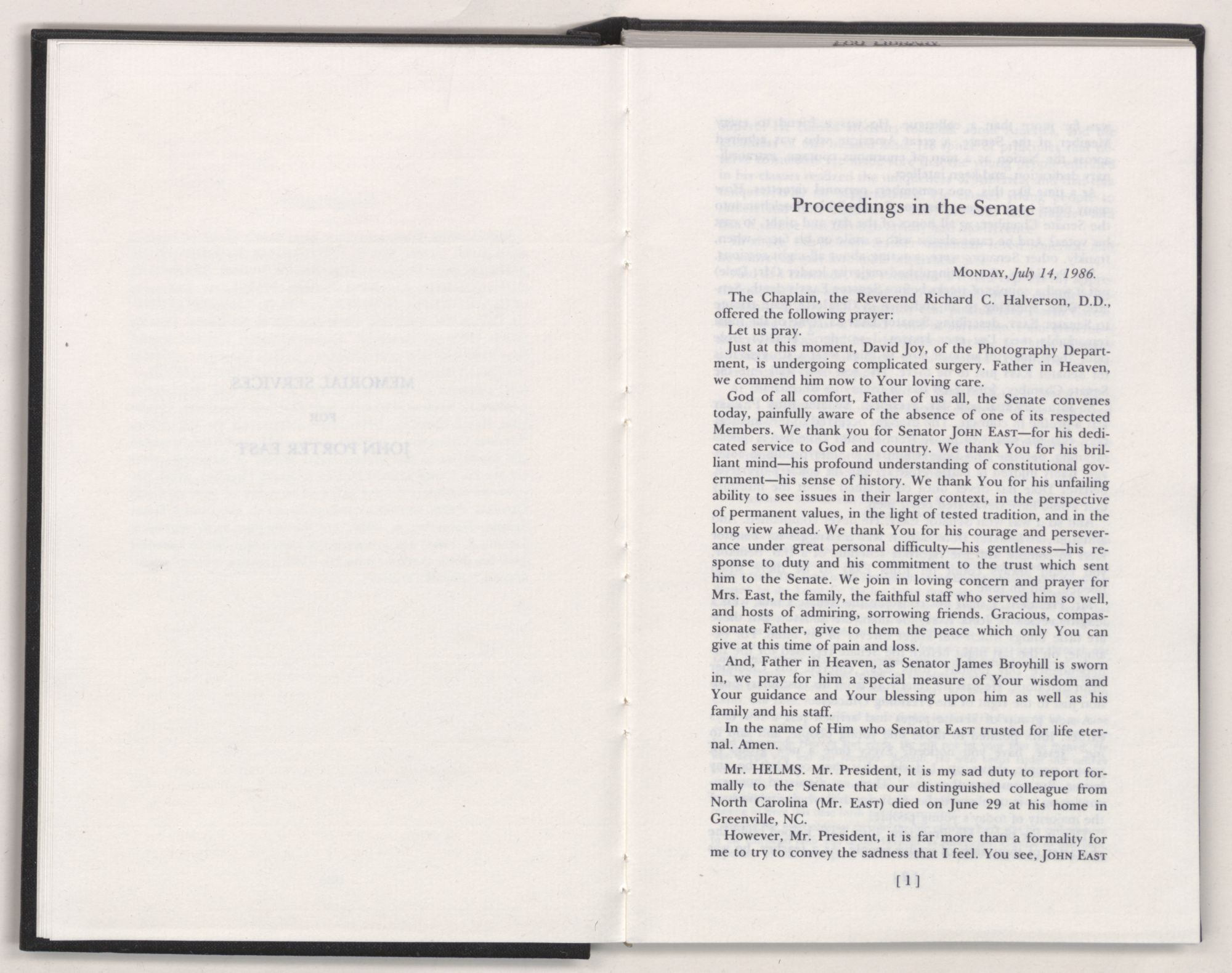 “No senator ever had a finer colleague than JOHN EAST,” Helms said. “I've never known a man with more compassion than Senator EAST.”