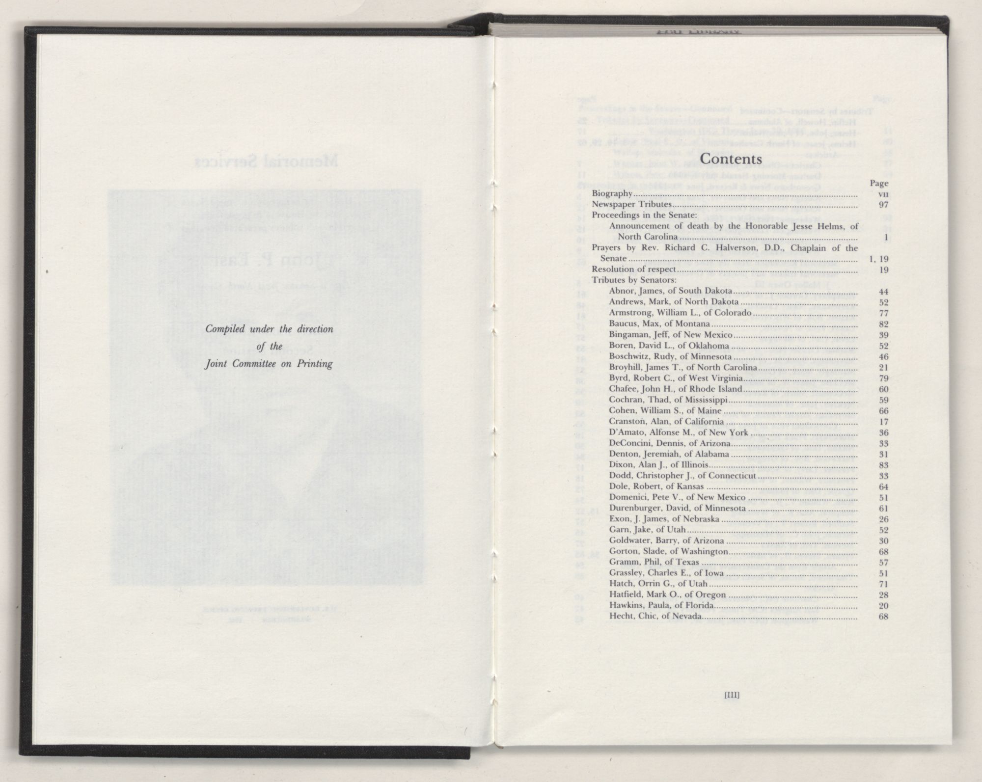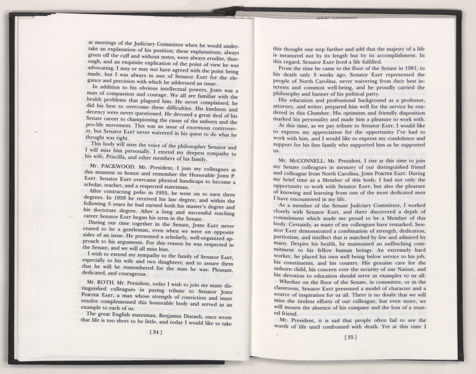 The Senate set aside more than two hours Tuesday morning to offer eulogies to EAST, a political science professor at East Carolina University before being elected to the Senate in 1980.