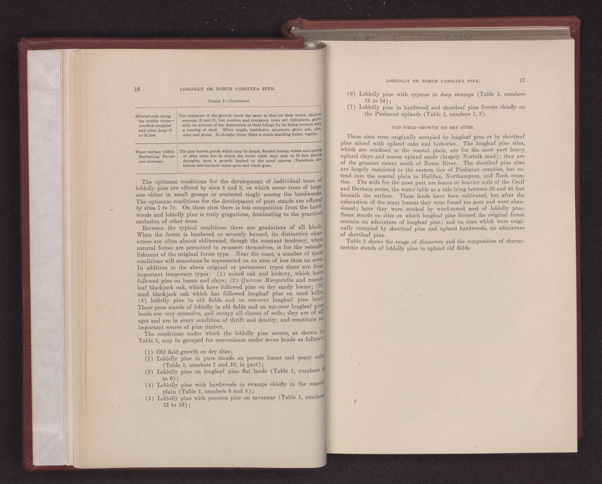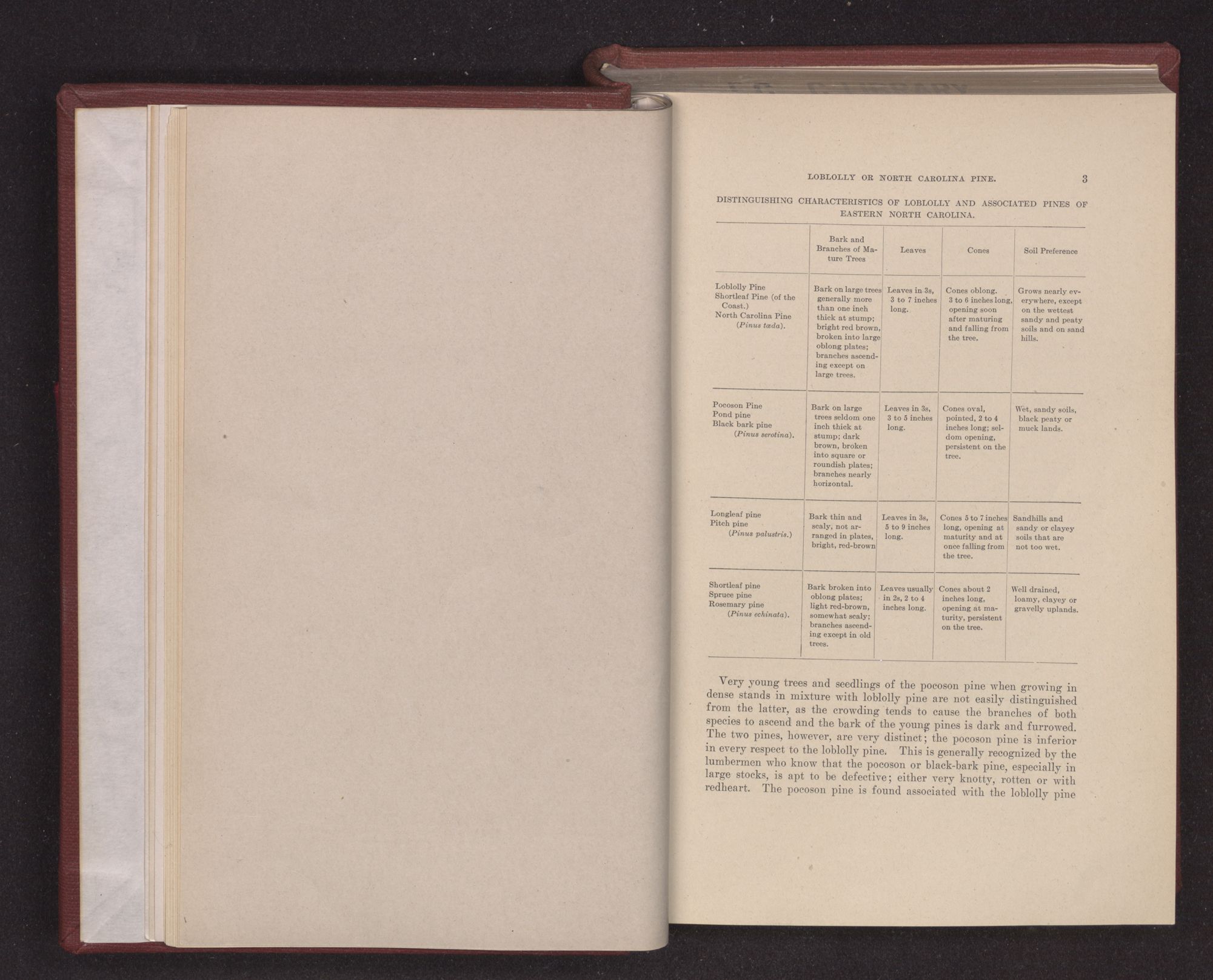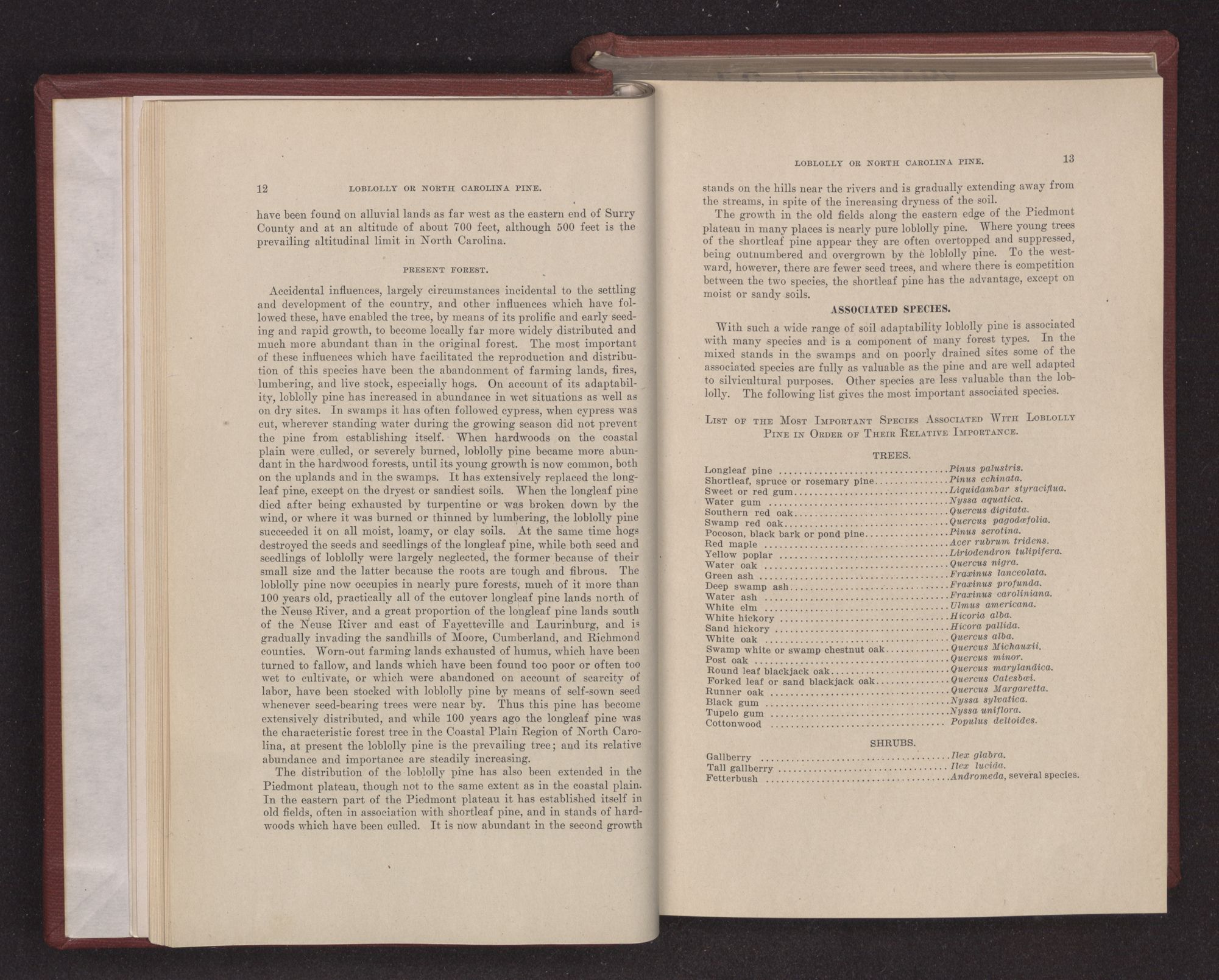 6. The Timber Trees of North Carolina, by Gifford Pinchot and W. W. Ashe, 1897. 8°, 227 pp., 22 pl. Out of print.