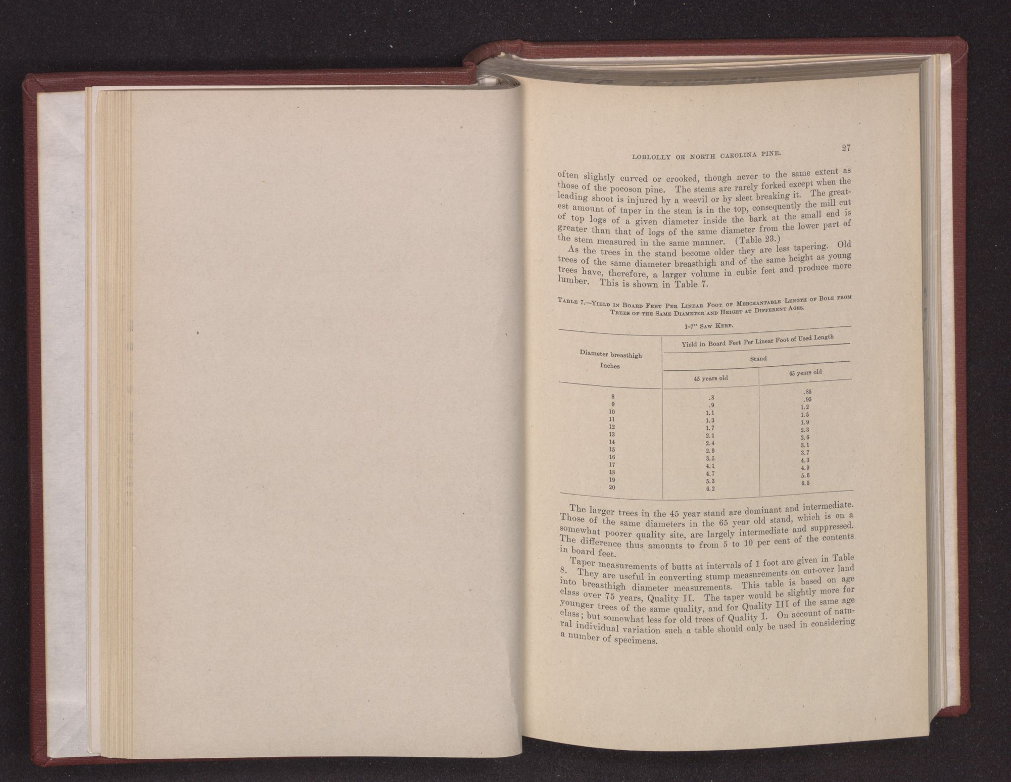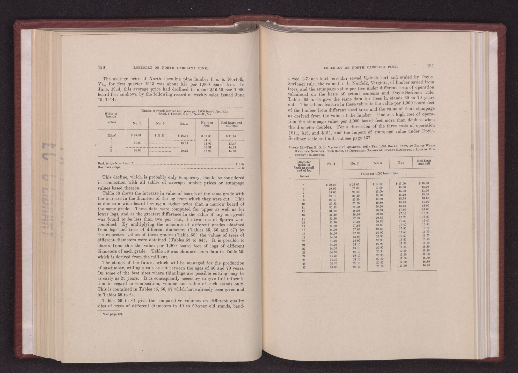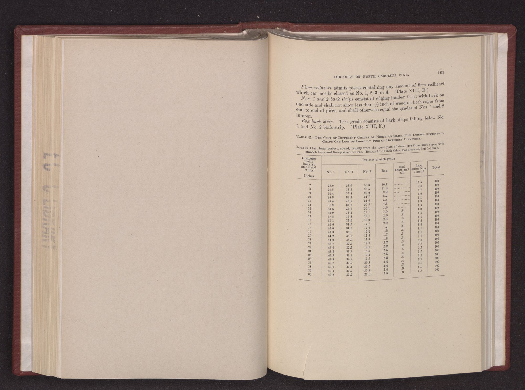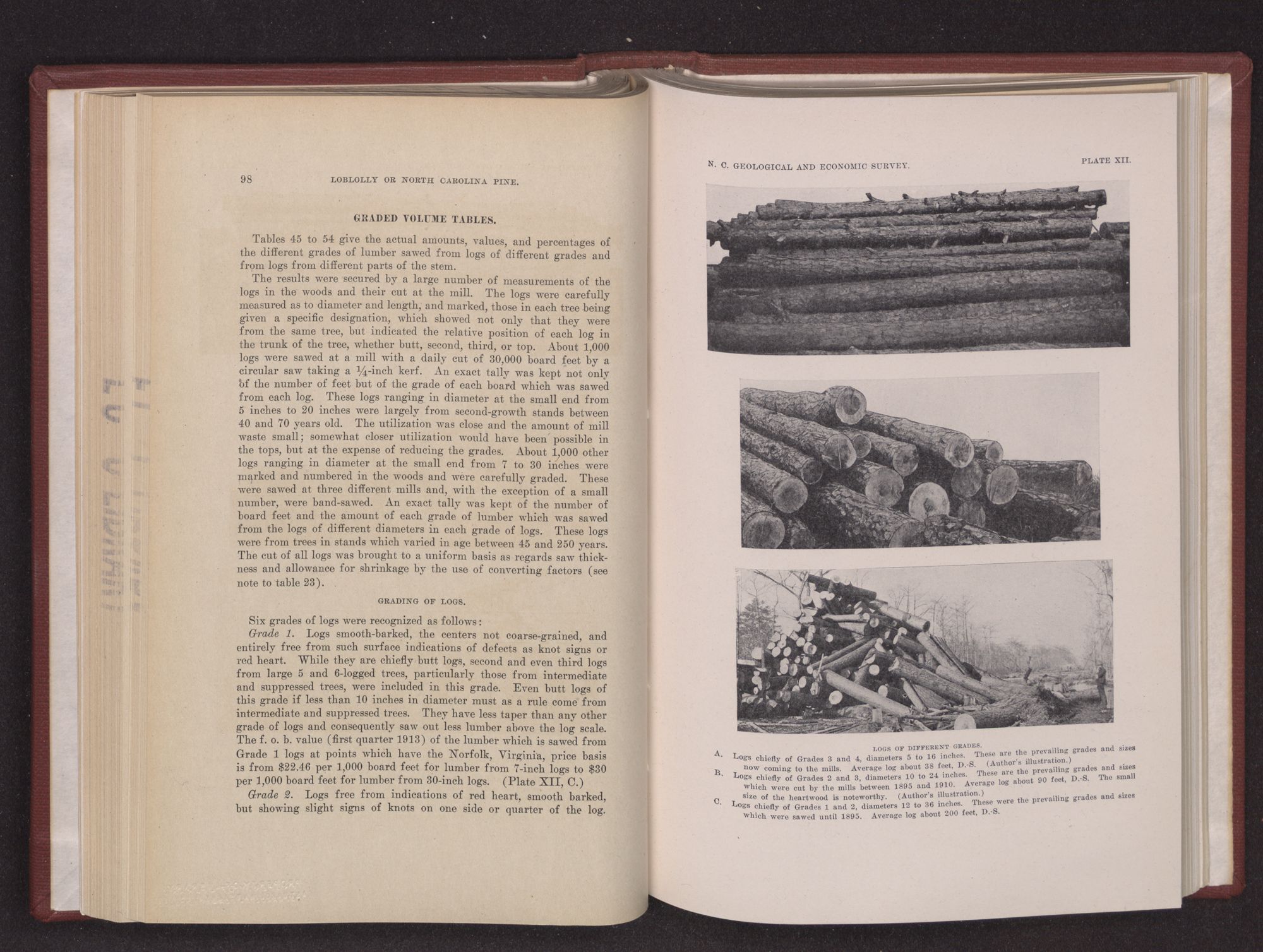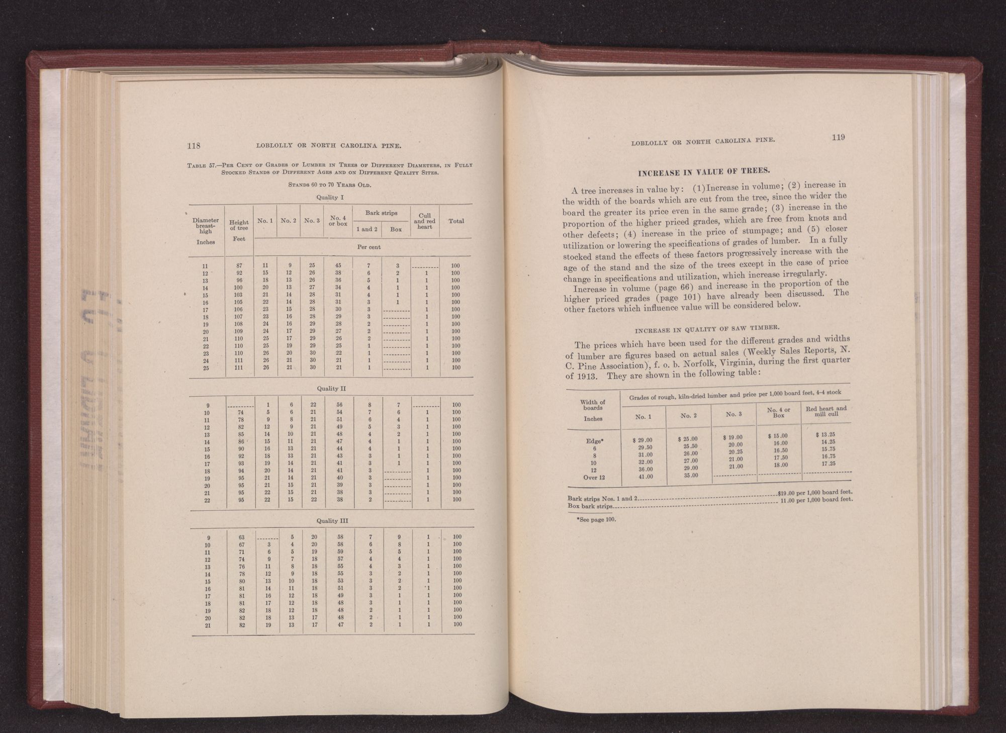 Official State Seal of North CarolinaRALEIGHEDWARDS & BROUGHTON PRINTING COMPANY STATE PRINTERS AND BINDERS1915ERRATA Page 50, line 16, for “more than 35” read “as much as 40.” Page 50, line 18, for “less than the average” read “as little as 26 pounds.” Page 133, paragraph (m), for “total content of tree (l)” read “total content of tree (k).” Page 144, line 14 from bottom, for “scaling 125 board feet” read “scaling 77 board feet.”