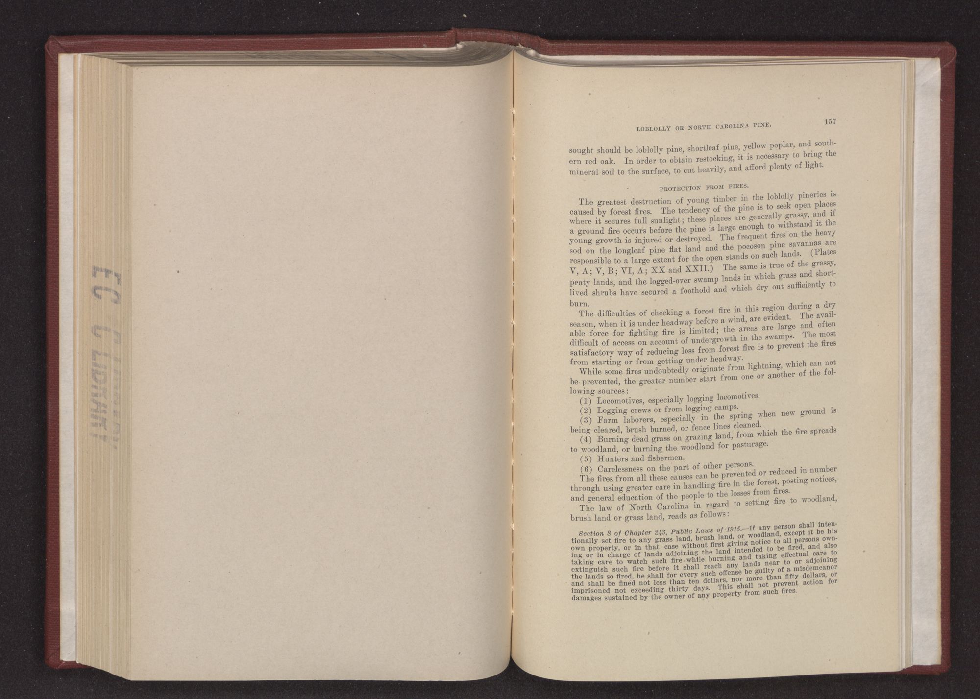 37. Forest Fires in North Carolina During 1913 and a Summary of State Forest Fire Prevention in the United States, by J. S. Holmes, Forester, 1914. 8°, 82 pp. Postage 8 cents.