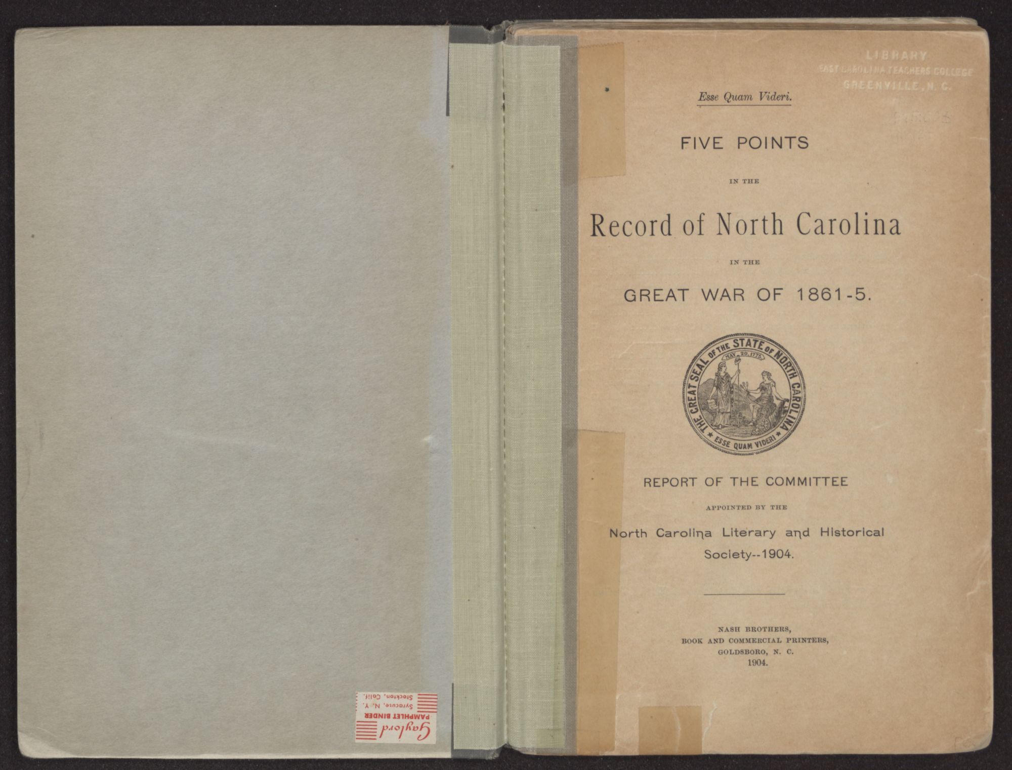 Esse Quam Videri.FIVE POINTSIN THERecord of North CarolinaIN THEGREAT WAR OF 1861-5.THE GREAT SEAL OF THE STATE OF NORTH CAROLINA
