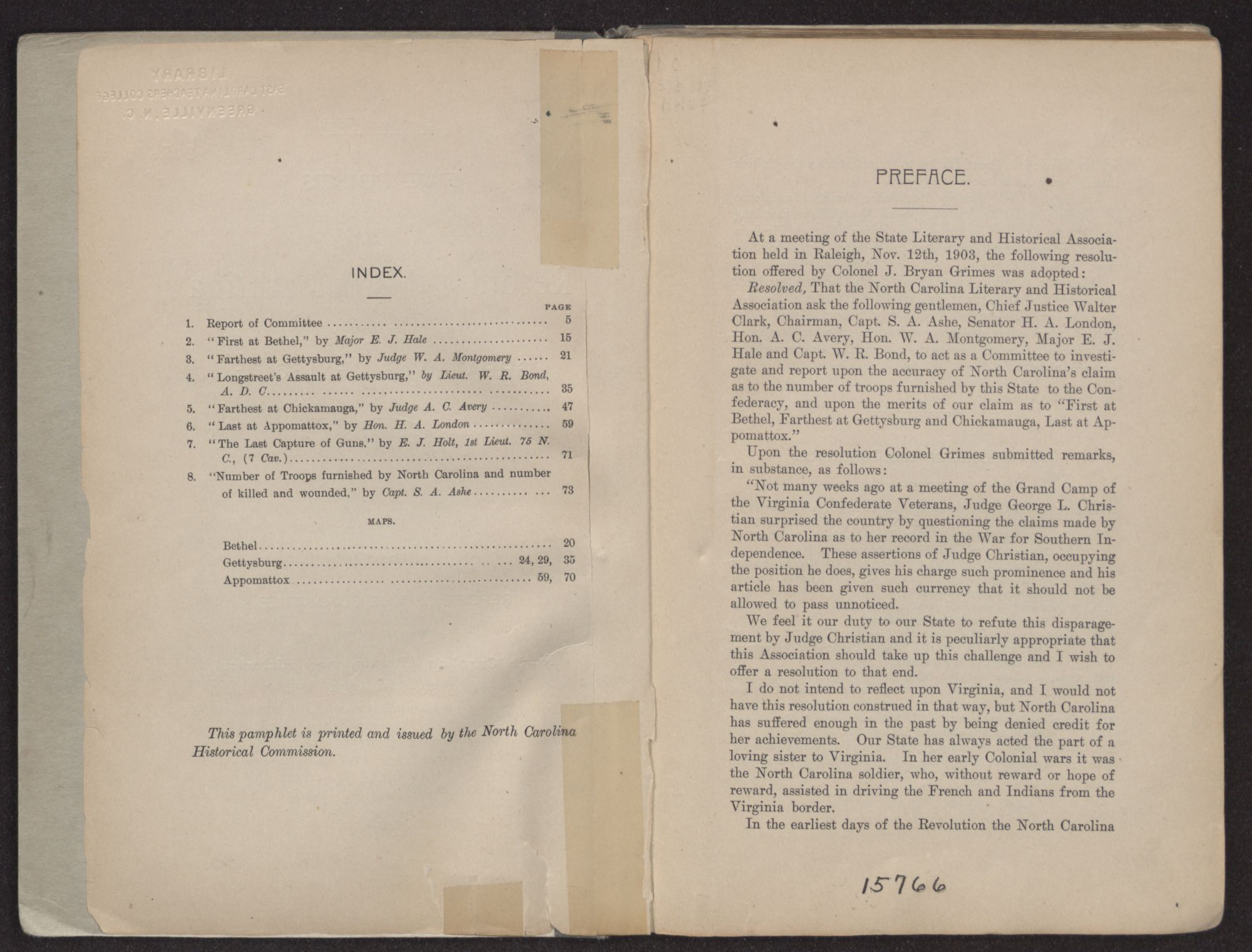 This pamphlet is printed and issued by the North Carolina Historical Commission.