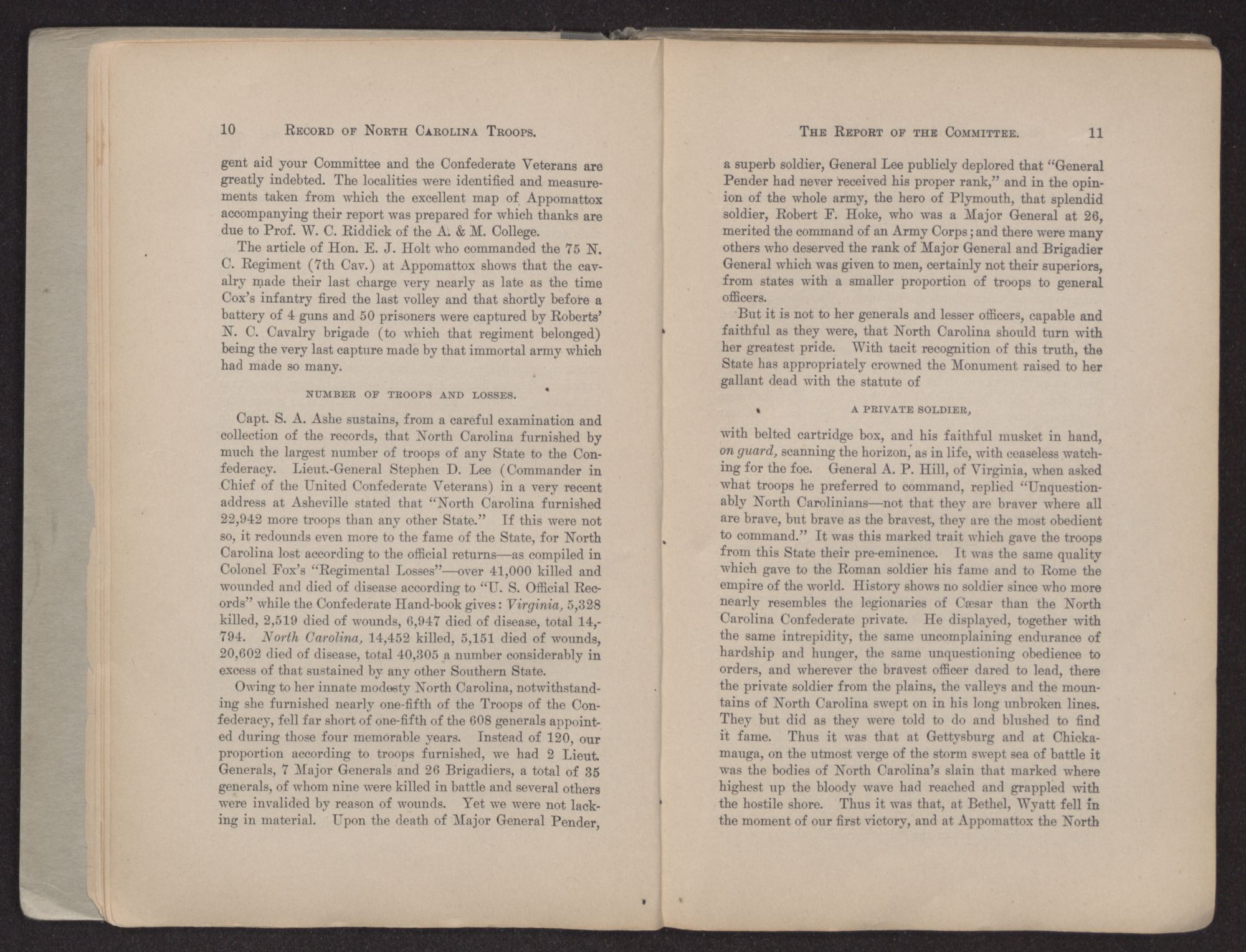 But it is not to her generals and lesser officers, capable and faithful as they were, that North Carolina should turn with her greatest pride. With tacit recognition of this truth, the State has appropriately crowned the Monument raised to her gallant dead with the statute of