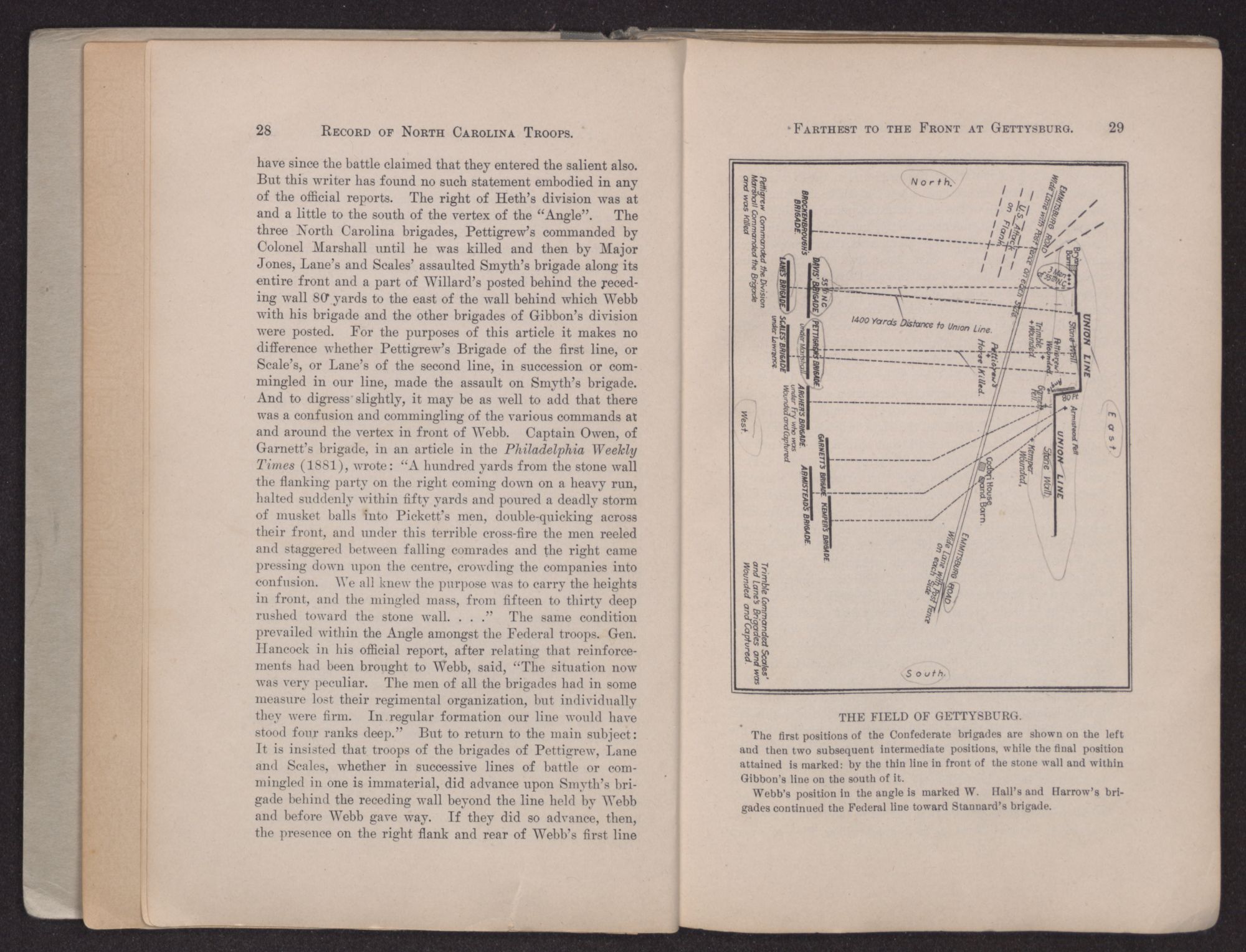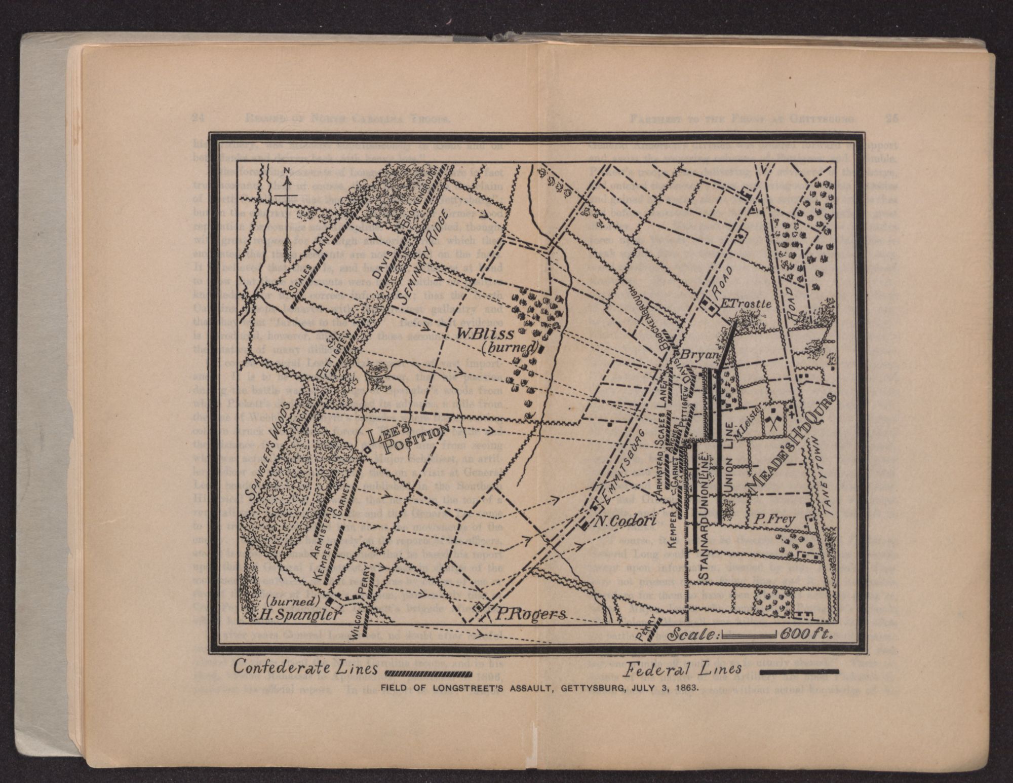 Judge Montgomery and Captain W. R. Bond were both present at Gettysburg and the former has recently revisited the battle-field. Their array of proof as to the North Carolina Troops is further sustained by the map of the battle-field made by the Federal Commissioners, after years of study of the ground and hearing the evidence of participants from both armies and all parts of the country. A copy of that map is published with their articles. Two other maps herein throw further light upon that historic field.