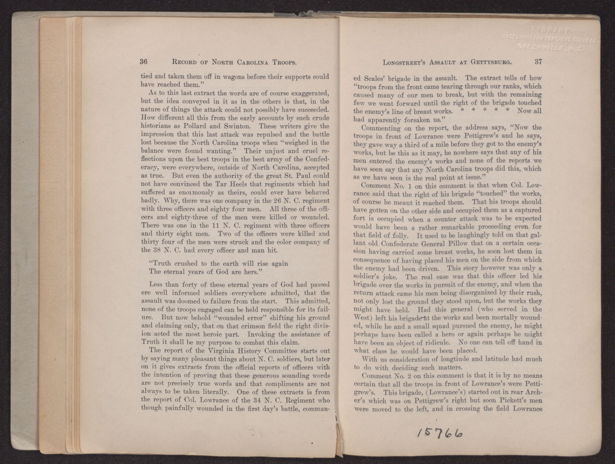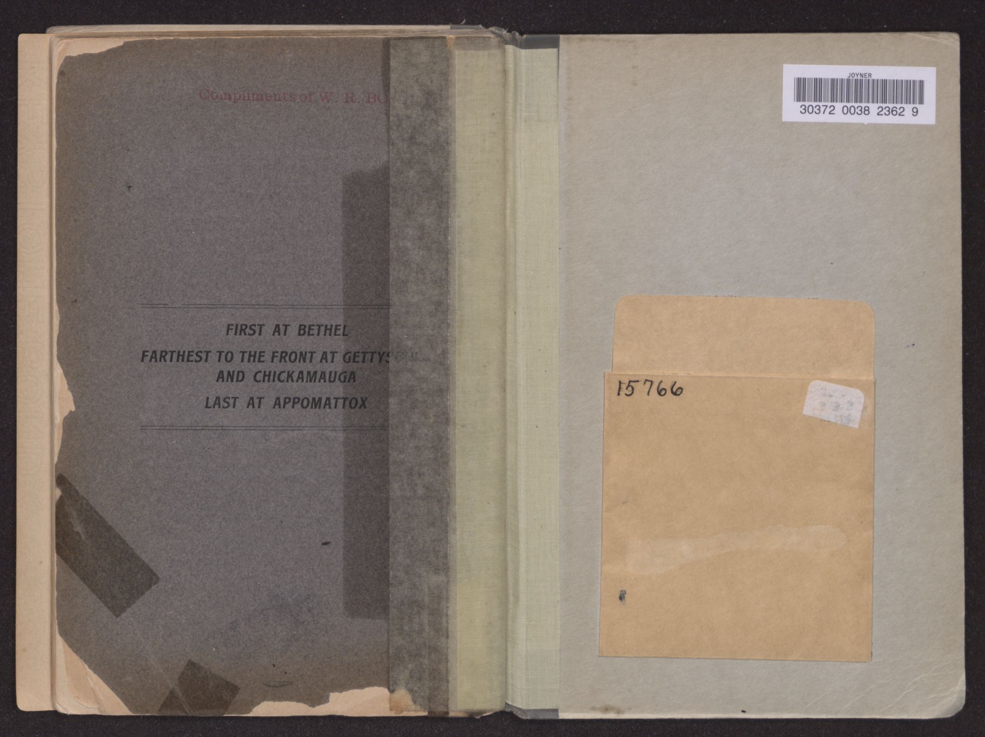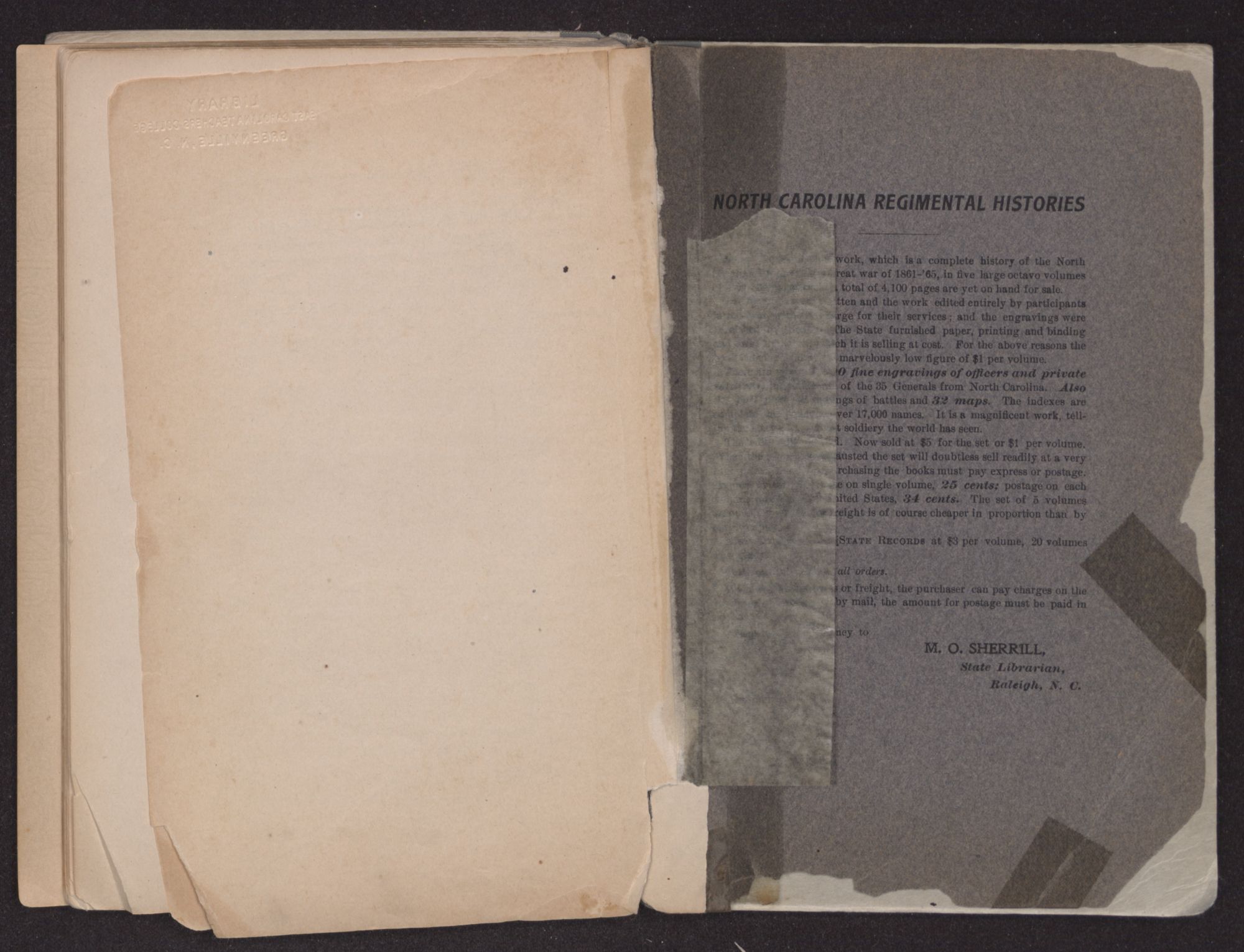 Upon the cover of the five volumes of “North Carolina Regimental Histories 1861-’65” which, compiled by veterans who were actual participants in the events they narrated, have been published and issued by authority of the State, there is stamped the above words with the insertion between the first and last lines of the following: