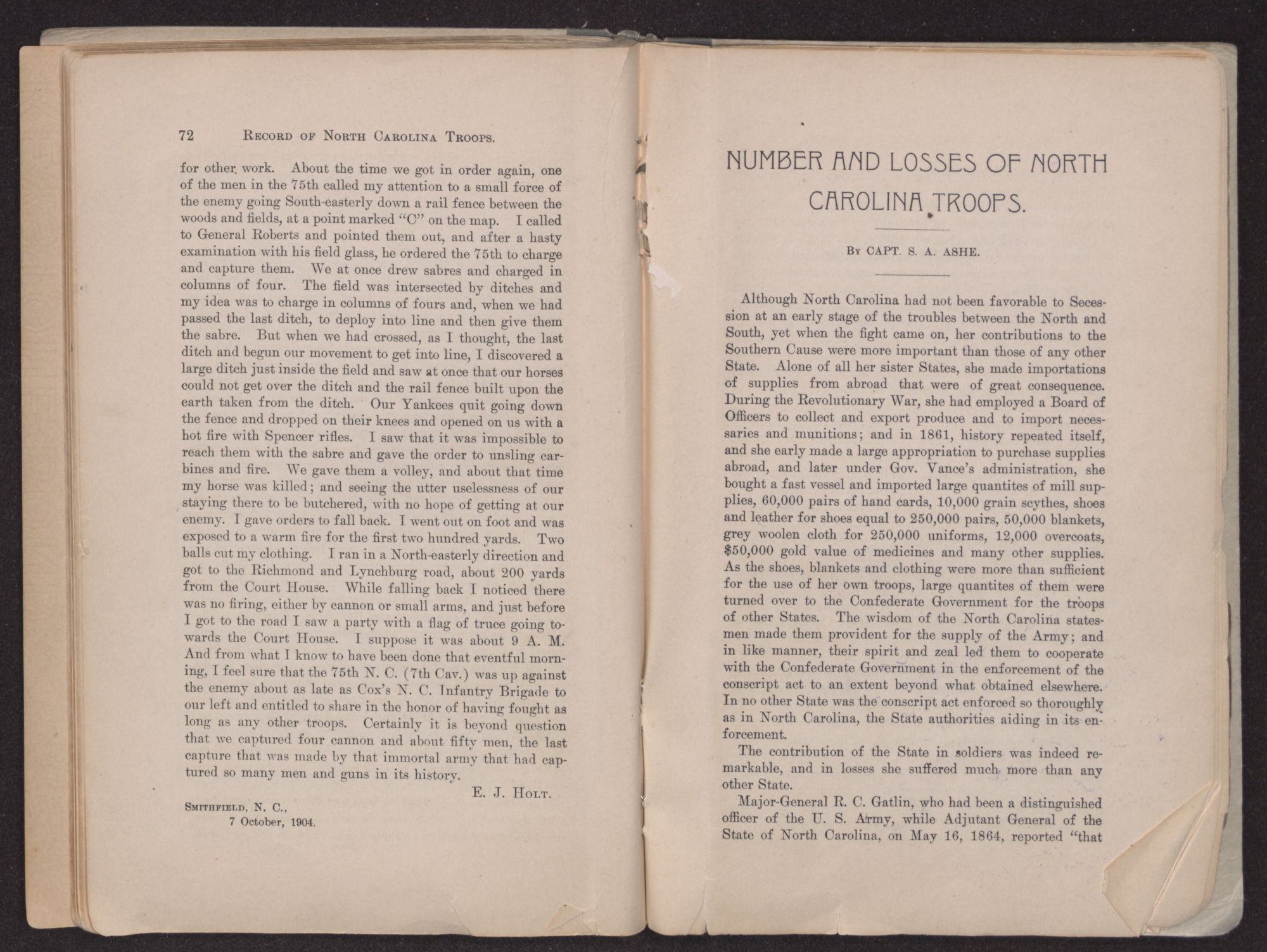 | 8. “Number of Troops furnished by North Carolina and number of killed and wounded,” by Capt. S. A. Ashe | 73 |